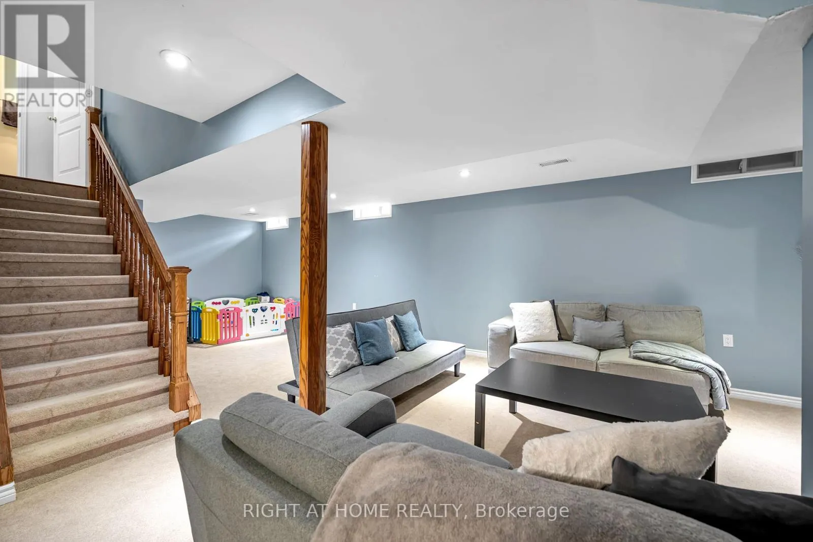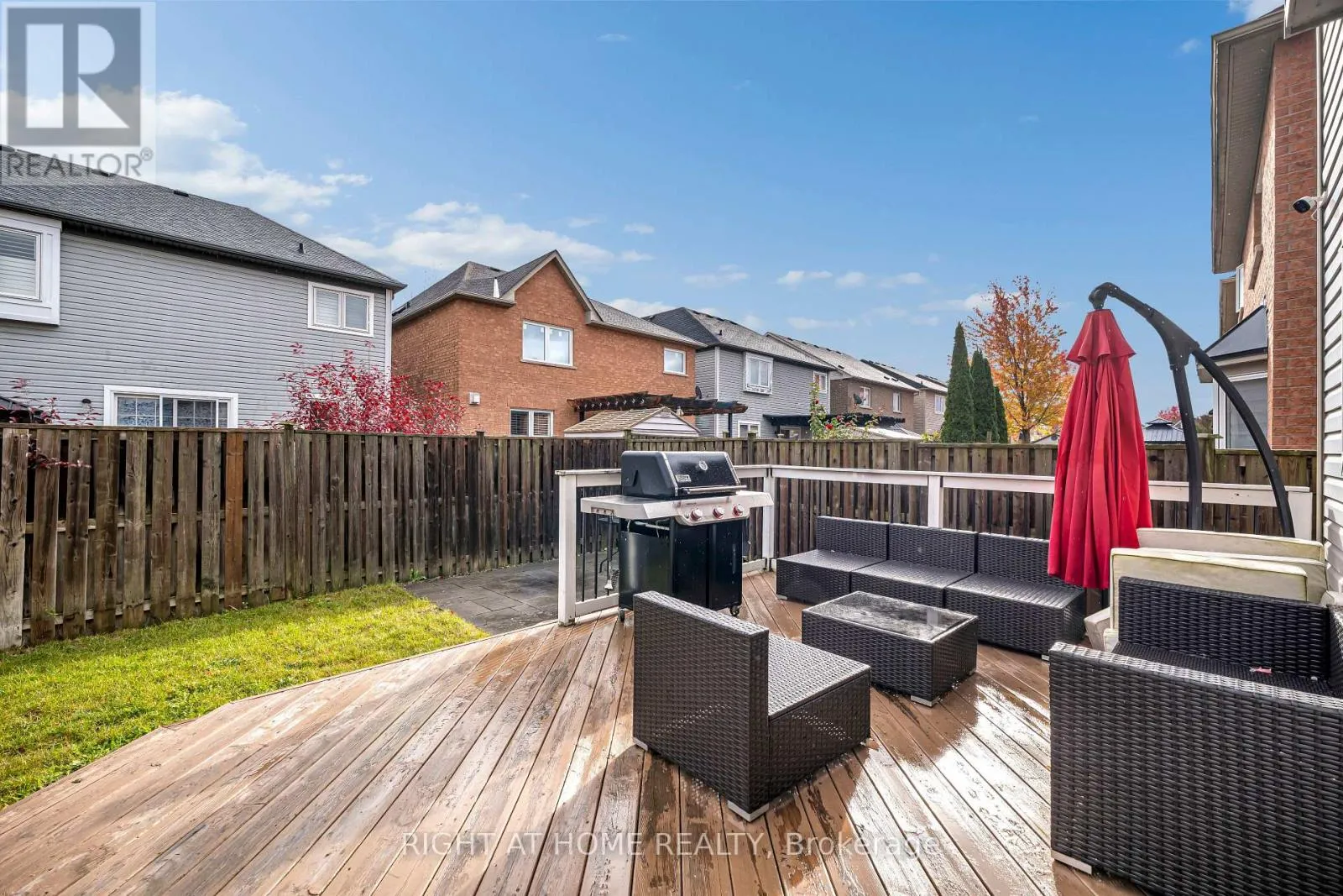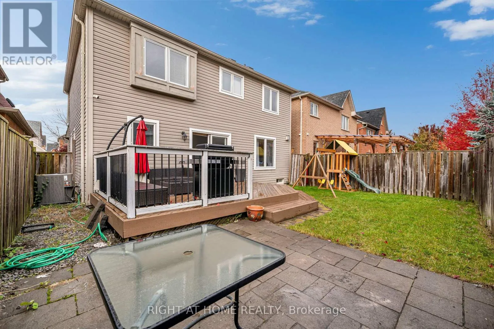 Audley Rd & Taunton Rd E Welcome to this stunning, freshly painted detached home located in the desirable Audley North community of Ajax. Featuring 4 spacious bedrooms, 3 bathrooms, and a beautifully finished basement, this home offers the perfect balance of style, comfort, and functionality.The main and second levels showcase elegant hardwood flooring throughout, creating a warm and inviting flow. The modern kitchen is designed for both beauty and convenience, boasting granite countertops that extend into the backsplash, stainless steel appliances, and a breakfast area with a walkout to the deck-perfect for outdoor dining and entertaining.Upstairs, the primary bedroom offers a relaxing retreat with a 4-piece ensuite and his-and-her closets. The second bedroom is exceptionally spacious with a semi-ensuite, while the third and fourth bedrooms provide plenty of room for family or guests.The finished basement adds valuable living space with a large recreation room-ideal for a home theatre or play area-and an office space added just a few years ago, perfect for working from home.Additional upgrades include interlocking in both the driveway and backyard, offering enhanced curb appeal and low-maintenance outdoor living.Situated in a quiet, family-friendly neighbourhood close to parks, schools, recreation centres, shopping, and transit, this move-in-ready home has everything you're looking for and more.Don't miss the opportunity to make this exceptional property your next home-book your private showing today! (id:27476)
