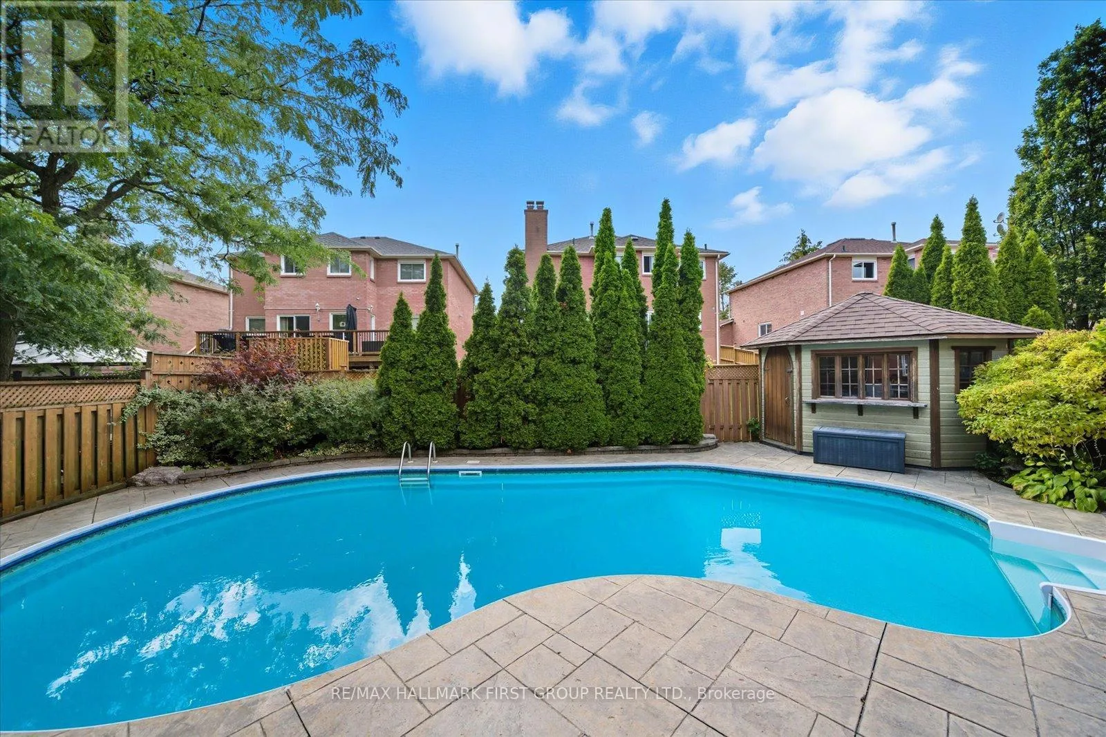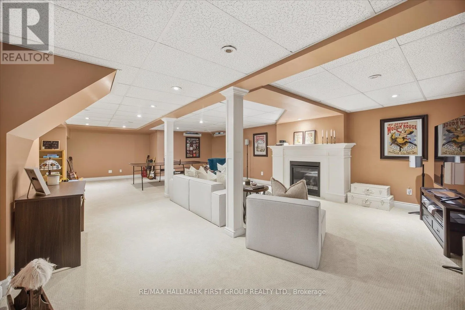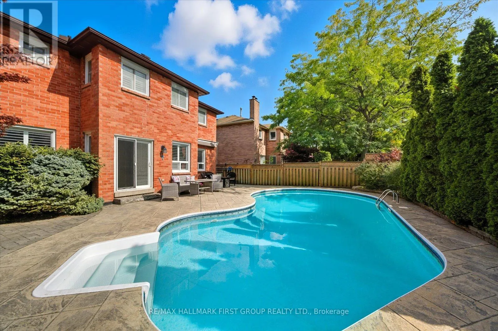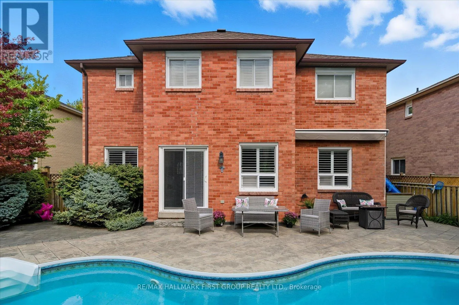 Delany / Griffiths Welcome to this spacious 4-bedroom, 3-bath family home featuring a backyard retreat complete with an in ground pool, stone patio, and pool shed-perfect for entertaining or relaxing. Inside, the inviting two-story foyer leads to a living room with French doors, a dining room overlooking the pool, and a bright kitchen open to the breakfast area with a walk-out to the patio. The family room with fireplace creates a warm gathering space for everyday living.Upstairs, the primary suite offers a walk-in closet and 4-piece ensuite, while three generously sized secondary bedrooms each provide large windows and double closets. The finished basement extends the living space with a spacious recreation room and kitchenette with fridge-ideal for guests or extended family. (id:27476)