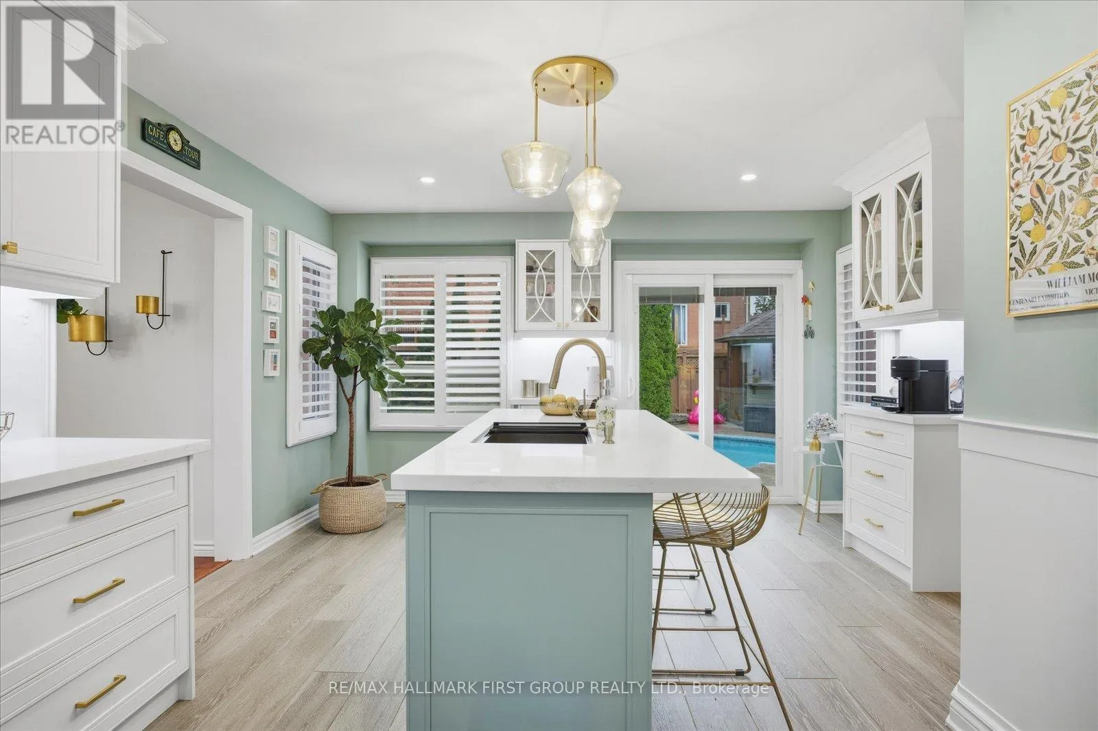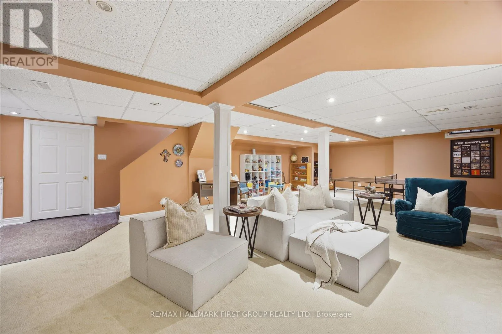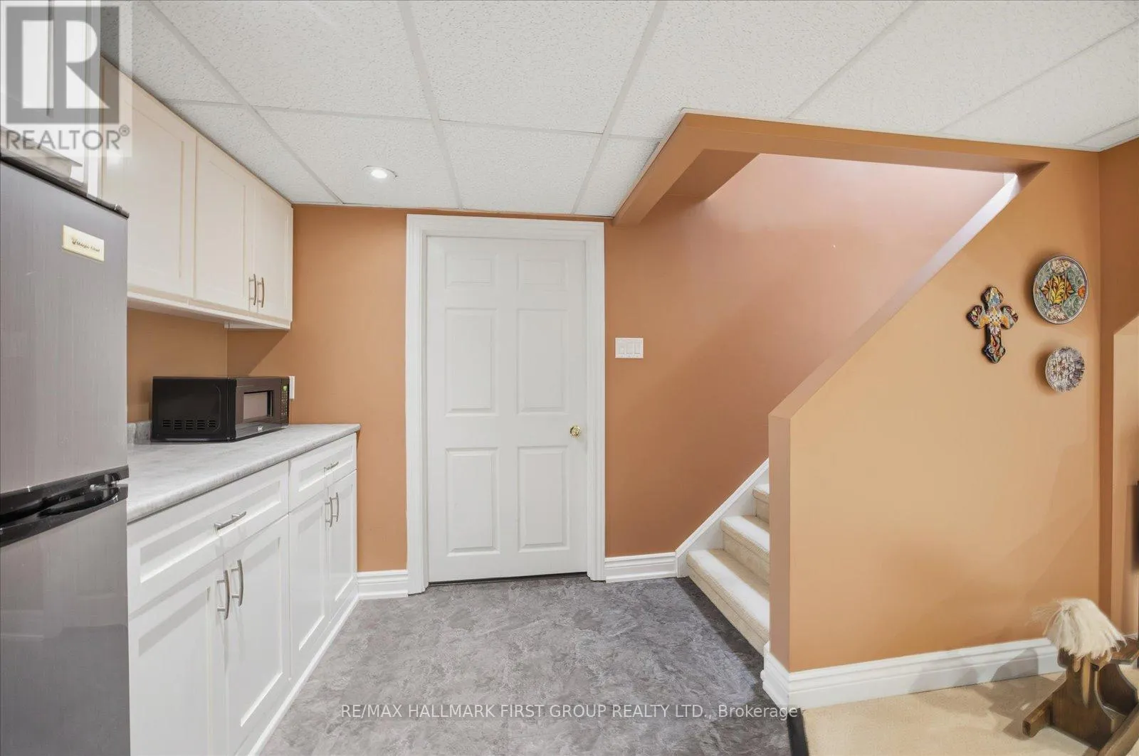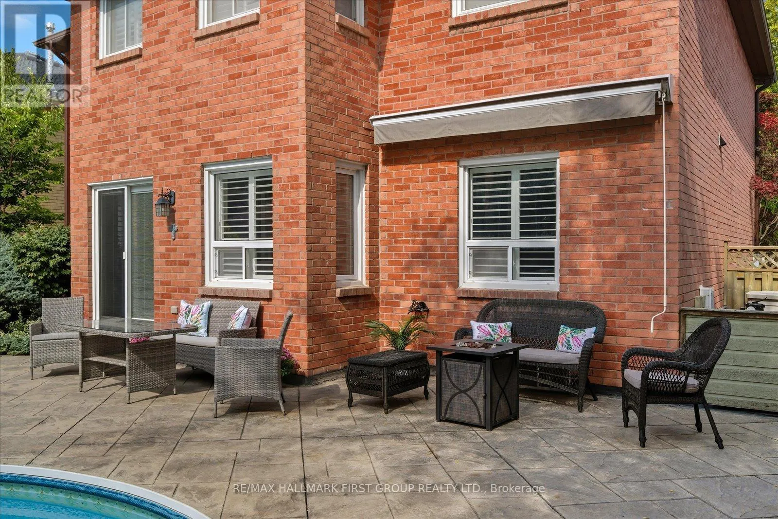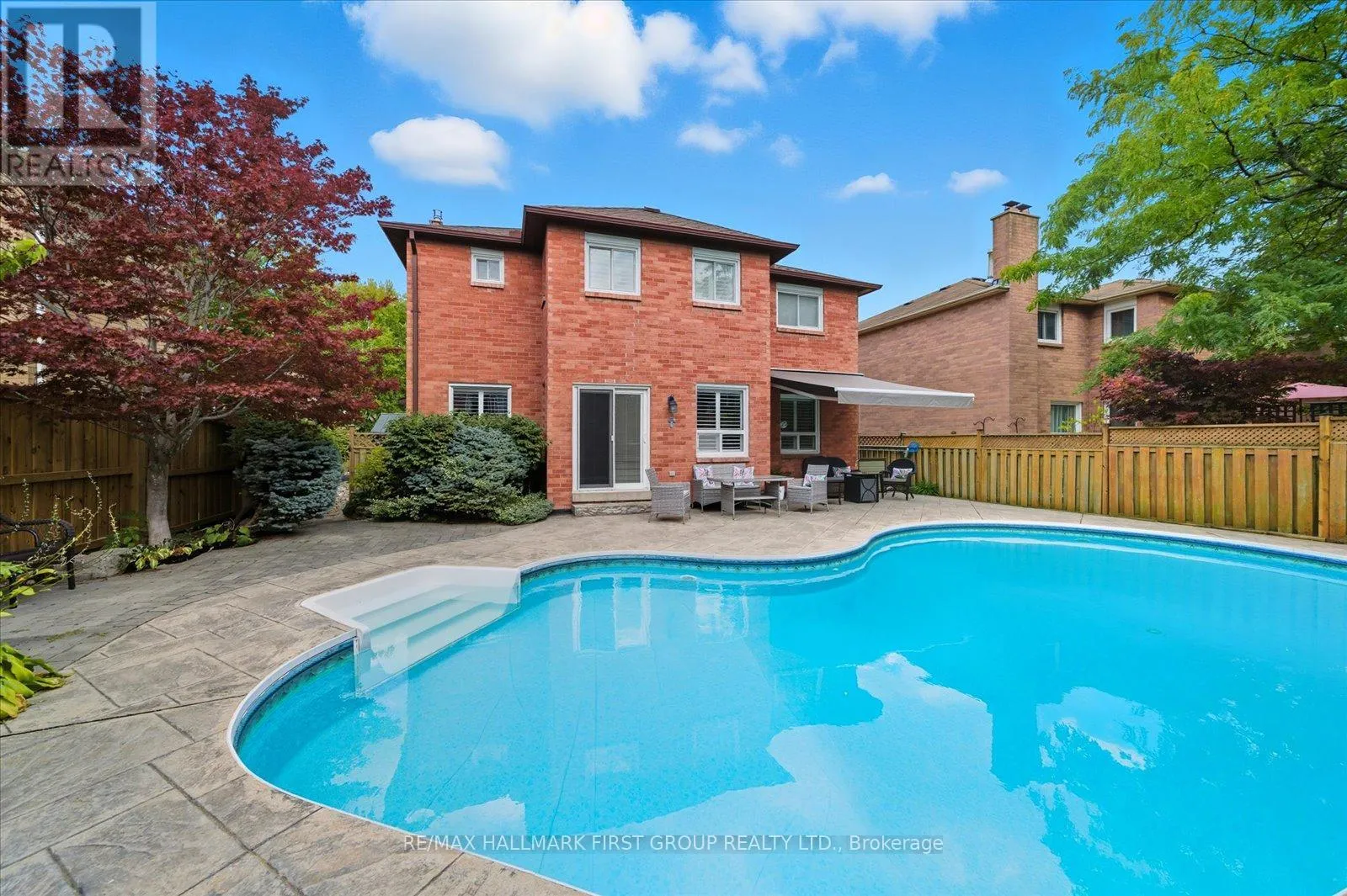 Delany / Griffiths Welcome to this spacious 4-bedroom, 3-bath family home featuring a backyard retreat complete with an in ground pool, stone patio, and pool shed-perfect for entertaining or relaxing. Inside, the inviting two-story foyer leads to a living room with French doors, a dining room overlooking the pool, and a bright kitchen open to the breakfast area with a walk-out to the patio. The family room with fireplace creates a warm gathering space for everyday living.Upstairs, the primary suite offers a walk-in closet and 4-piece ensuite, while three generously sized secondary bedrooms each provide large windows and double closets. The finished basement extends the living space with a spacious recreation room and kitchenette with fridge-ideal for guests or extended family. (id:27476)