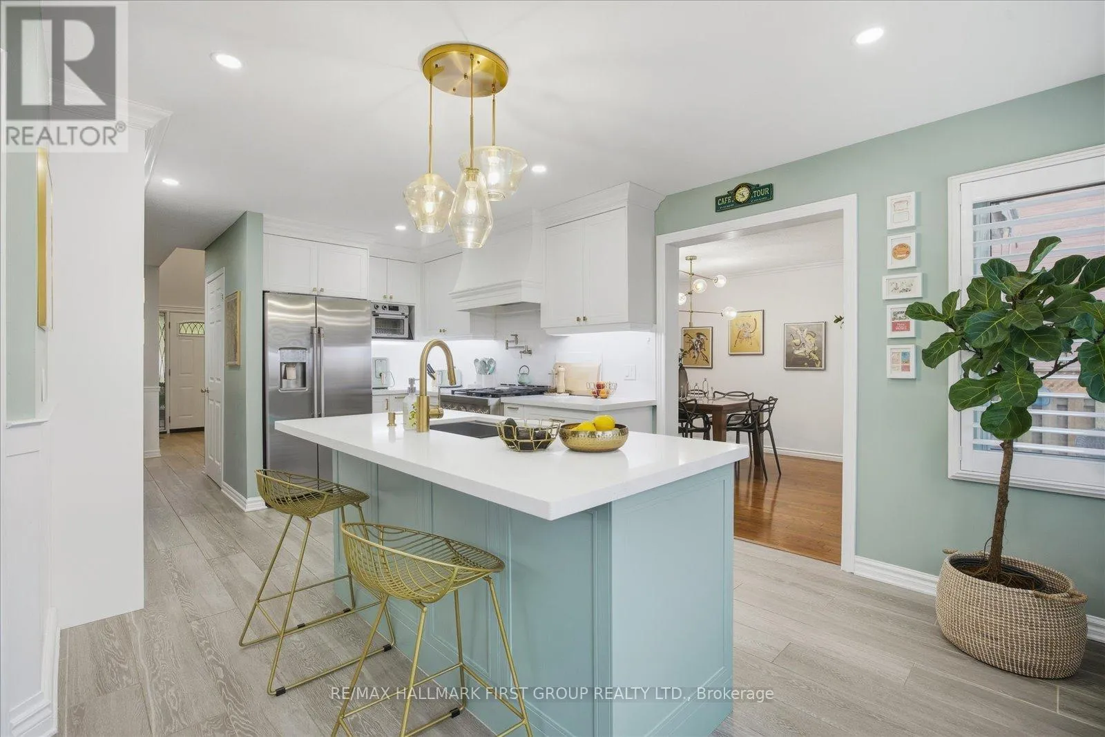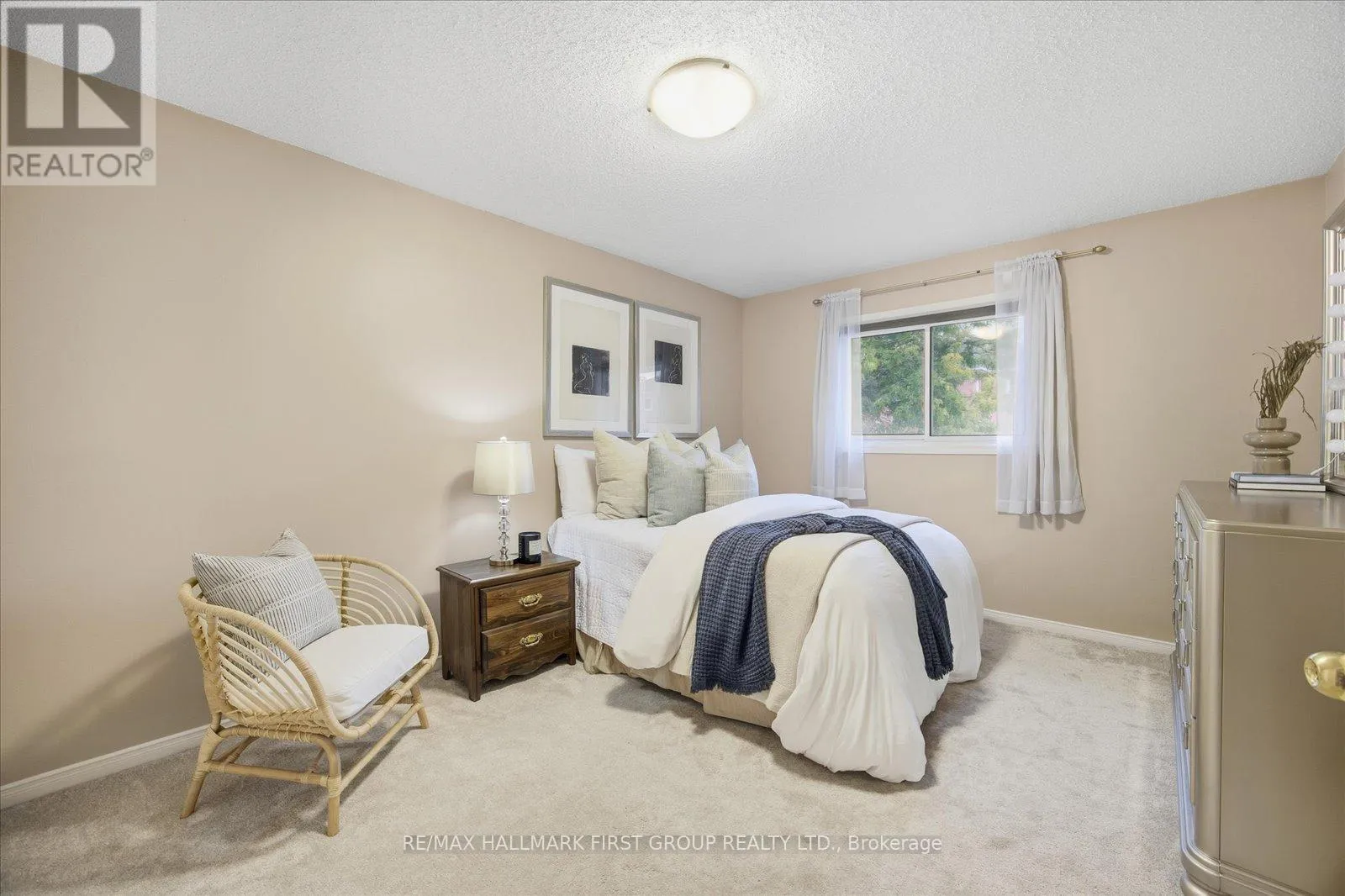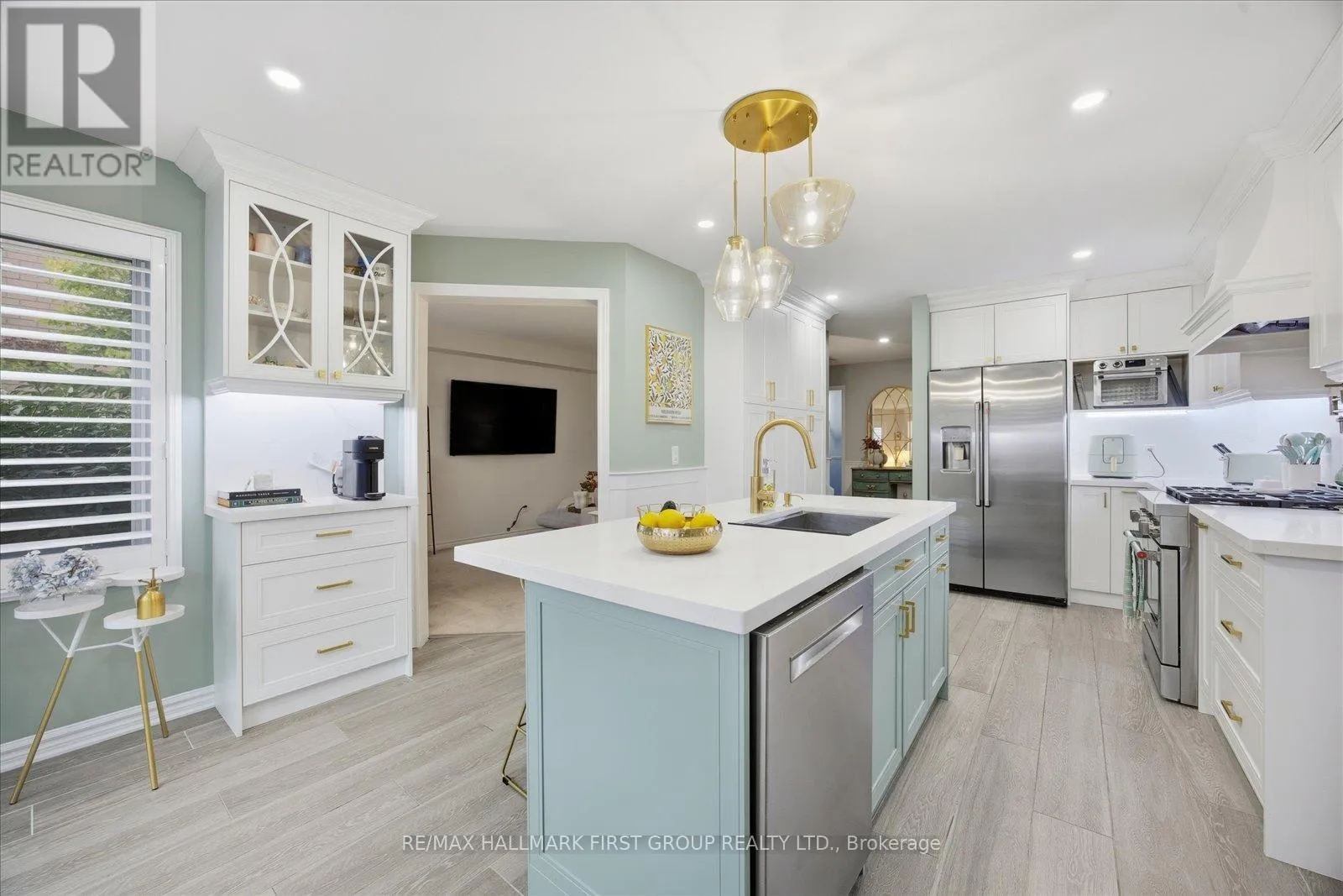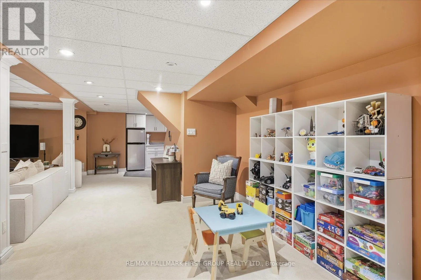 Delany / Griffiths Welcome to this spacious 4-bedroom, 3-bath family home featuring a backyard retreat complete with an in ground pool, stone patio, and pool shed-perfect for entertaining or relaxing. Inside, the inviting two-story foyer leads to a living room with French doors, a dining room overlooking the pool, and a bright kitchen open to the breakfast area with a walk-out to the patio. The family room with fireplace creates a warm gathering space for everyday living.Upstairs, the primary suite offers a walk-in closet and 4-piece ensuite, while three generously sized secondary bedrooms each provide large windows and double closets. The finished basement extends the living space with a spacious recreation room and kitchenette with fridge-ideal for guests or extended family. (id:27476)