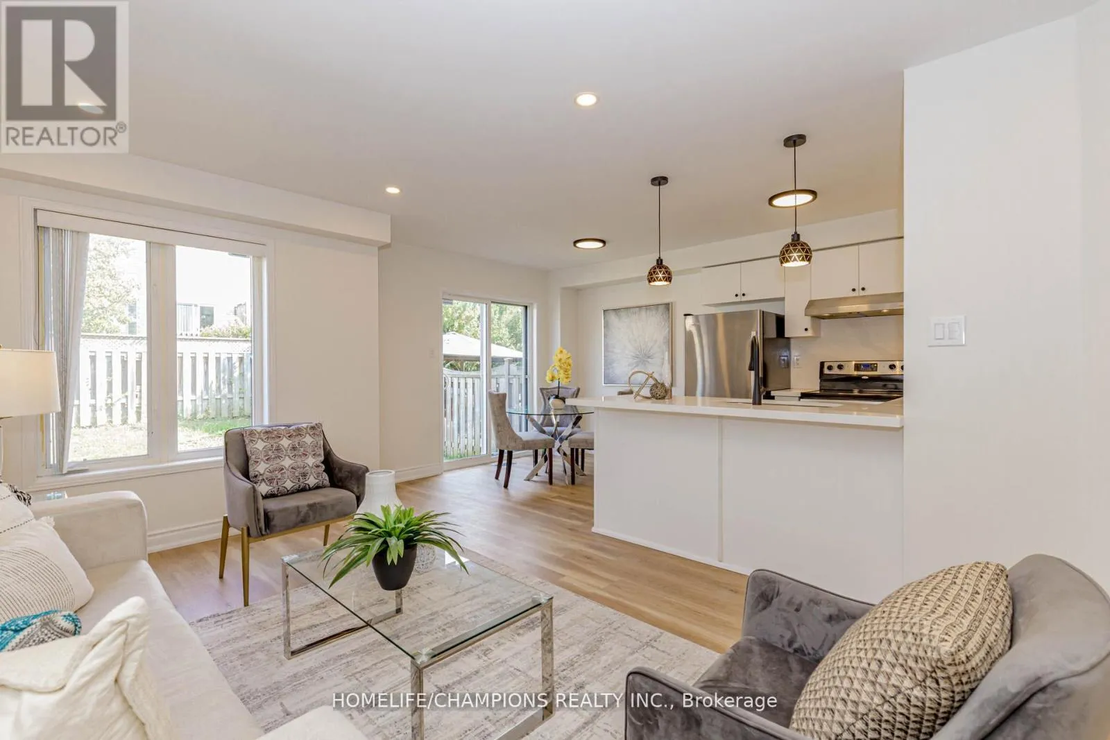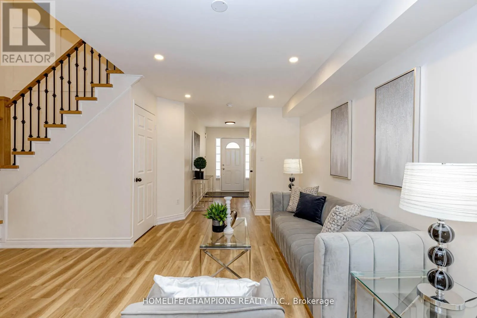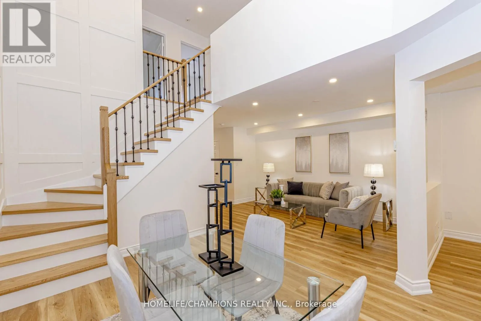 Harwood/Kingston Rd Here's your chance to own an absolutely stunning freehold townhouse - a rare find in one of Ajax's most desirable and convenient locations. Offering the freedom of ownership with no condo fees, this turnkey home combines the ease of low-maintenance living with the privacy and space of a house. Step inside to discover a beautifully updated interior that blends contemporary style with timeless warmth. Soaring 16.5-foot ceilings surrounded by floor to ceiling wainscotting walls on the main level creates a dramatic, gallery-like feel - perfect for entertaining or simply enjoying the open space. This well-designed home features: a functional spacious layout with generously sized rooms throughout; a second-floor open balcony ideal for a morning coffee or evening relaxation; a carpet-free interior professionally painted with modern upgrades throughout; updated kitchen and bathroom finishes, stylish pot lights, fresh decor; and located on a quiet, family-friendly crescent with no through traffic, yet minutes to everything - shopping, transit, community centres, Highway 401, and top-rated schools. This home truly checks all the boxes. Just move in and enjoy! (id:27476)