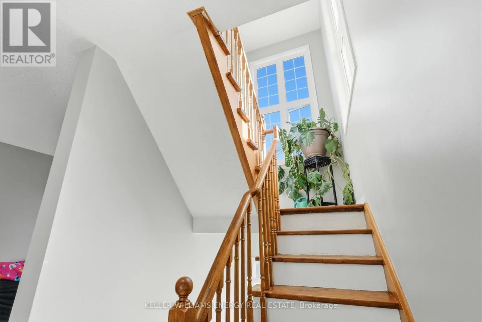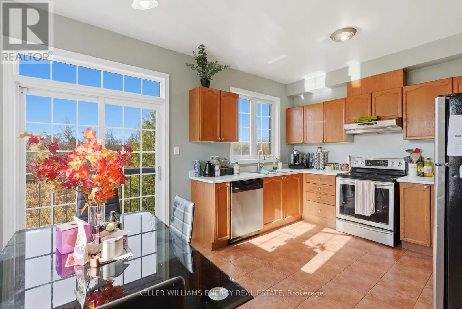 Bayly & Salem This exquisite end-unit townhouse offers the perfect combination of space, light, and privacy. Featuring 9-foot ceilings and an abundance of windows, every room feels bright and welcoming. The open-concept main level showcases a large eat-in kitchen with stainless steel appliances and a Juliette balcony overlooking lush green space. Upstairs, the primary bedroom includes a large closet and private 2-piece ensuite, complemented by two additional bedrooms and a 4-piece main bath. The ground level features a finished den that can serve as a fourth bedroom or home office, with a walkout to the backyard. Enjoy direct access from the garage for added convenience. Located in a prime, family-friendly neighbourhood, this home is just minutes from Highway 401, Ajax GO Station, schools, hospital, shopping, restaurants, parks, and Lake Ontario-offering the perfect balance of comfort and accessibility. *water included*! (id:27476)