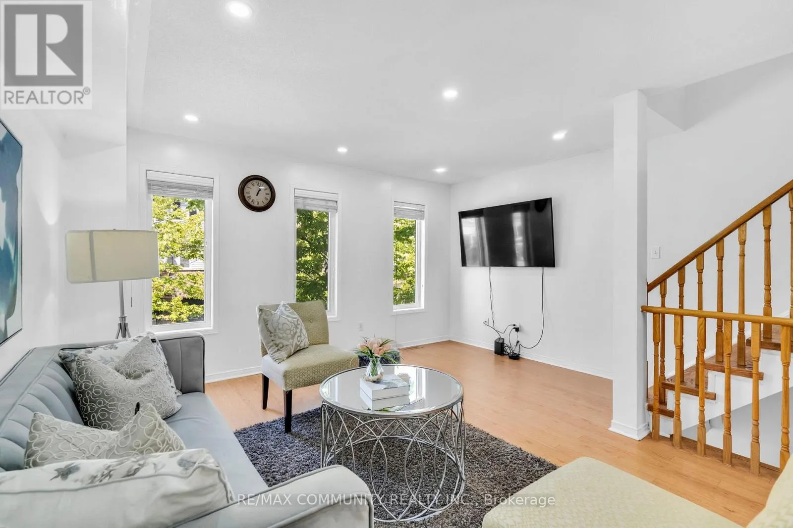 Westney & Rossland Awesome Bright And Spacious 3 Bedroom & @ Washroom Home Located In Central Ajax. Features Of This Amazing Home Include: Open Concept Living Rm And Dining Rm**Quality Laminate Flooring On Main Floor T**Bright Eat-In Kitchen** Good Sized Rooms** Finished W/O Bsmnt/Entertainment Room** Close To All Amenities. 401+ Go, Plaza, Parks, Schools, Newer A/C & Furnace 06 years old. Carpet free town house , Brans new stairs and new flooring in the basement. (id:27476)