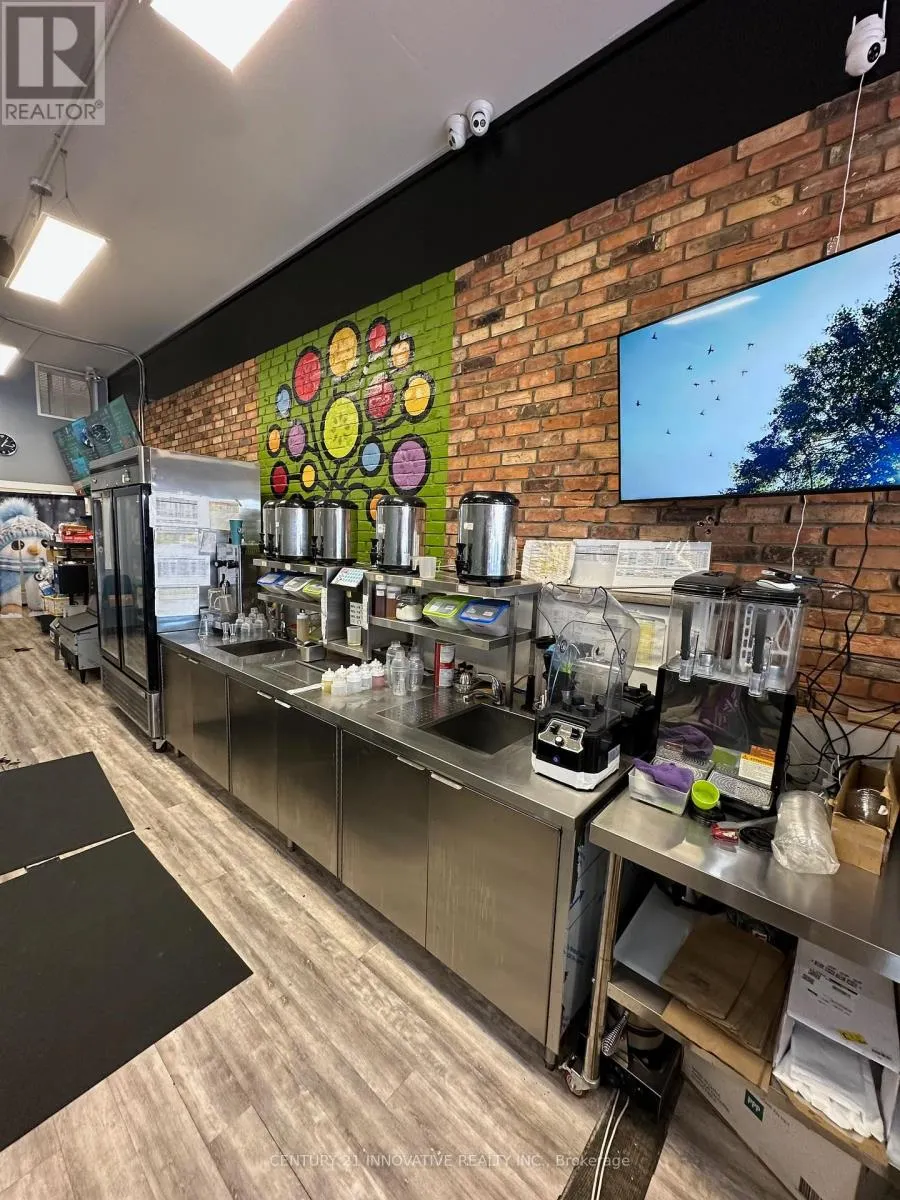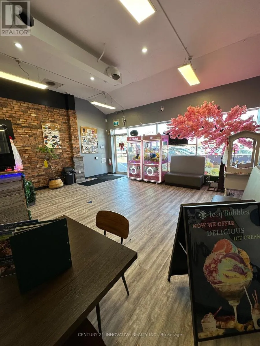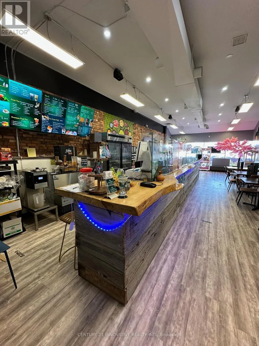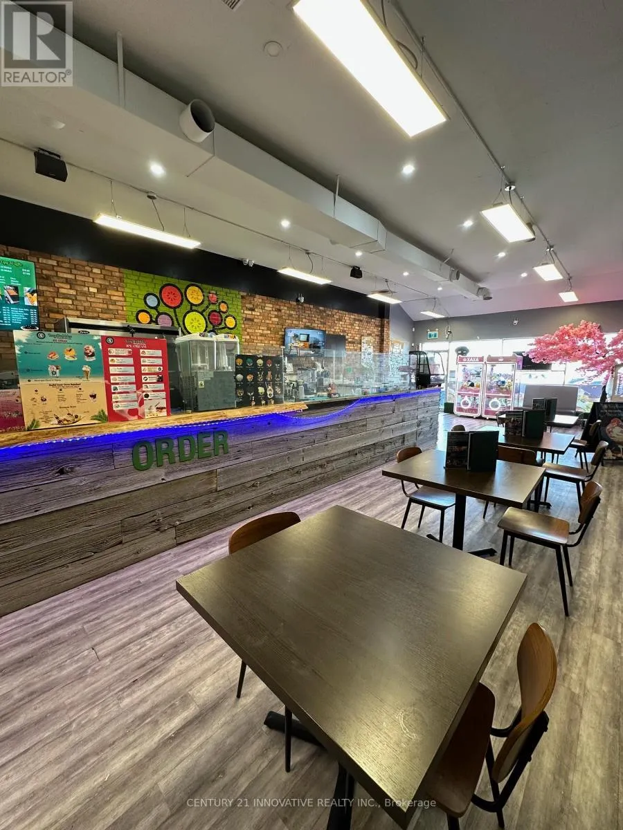 Bayly / Westney ***Opportunity Knocks*** Turn-key Bubble Tea/Desert Cafe Business ready for immediate ownership in a Vibrant Ajax Plaza with Exposure from Bayly Street and ample parking features chic décor, cozy seating, and a fresh welcoming aesthetic. Approximately 1280sf unit has convenient rear entrance, includes 2 Washrooms, storage space and Equipped with professional tea brewing/kitchen equipment, sealing machine, refrigeration, POS + More!Currently anchored by F45, Portly Piper Pub, Domino's Pizza, Freedom Mobile among others. (id:27476)