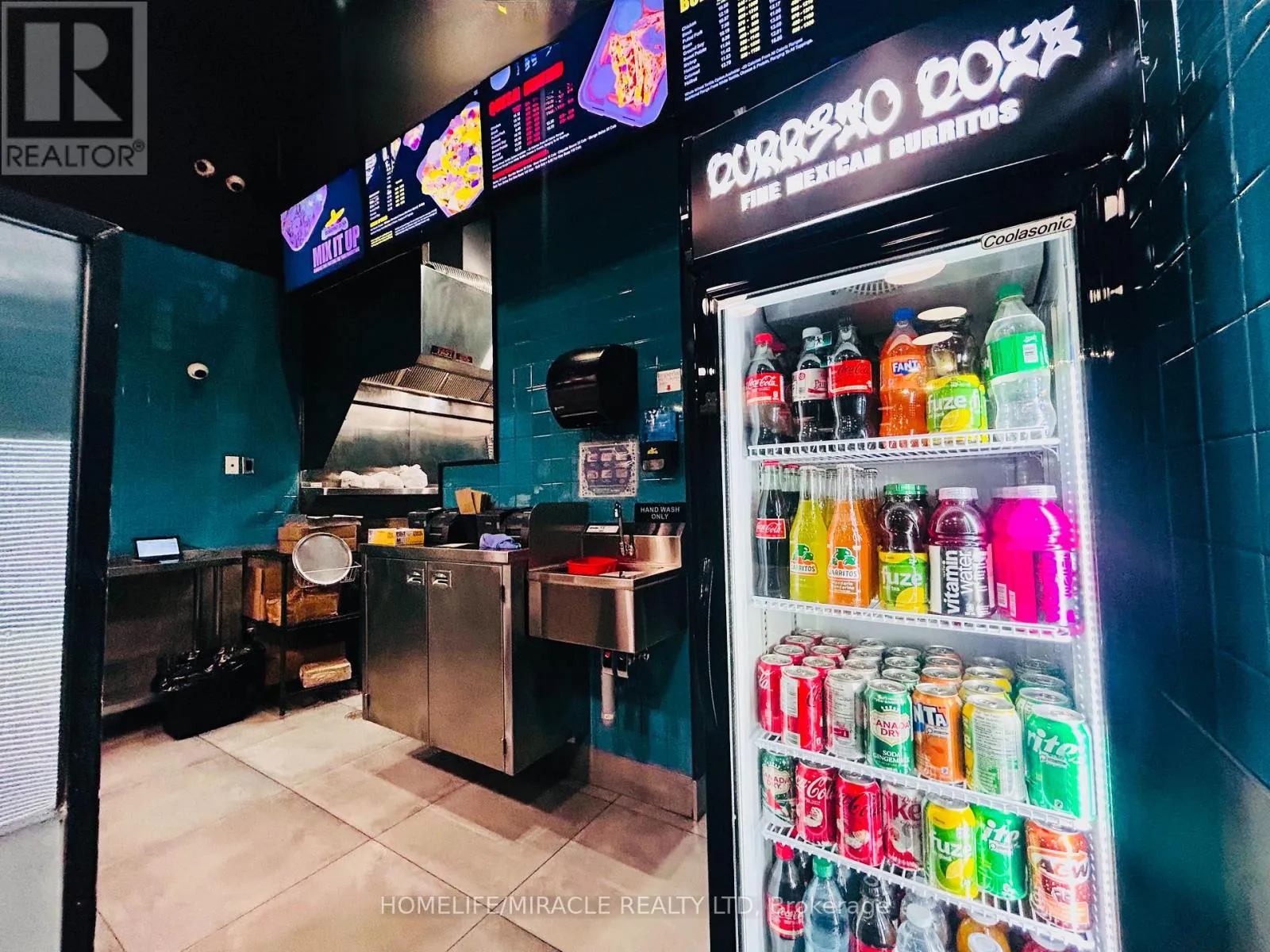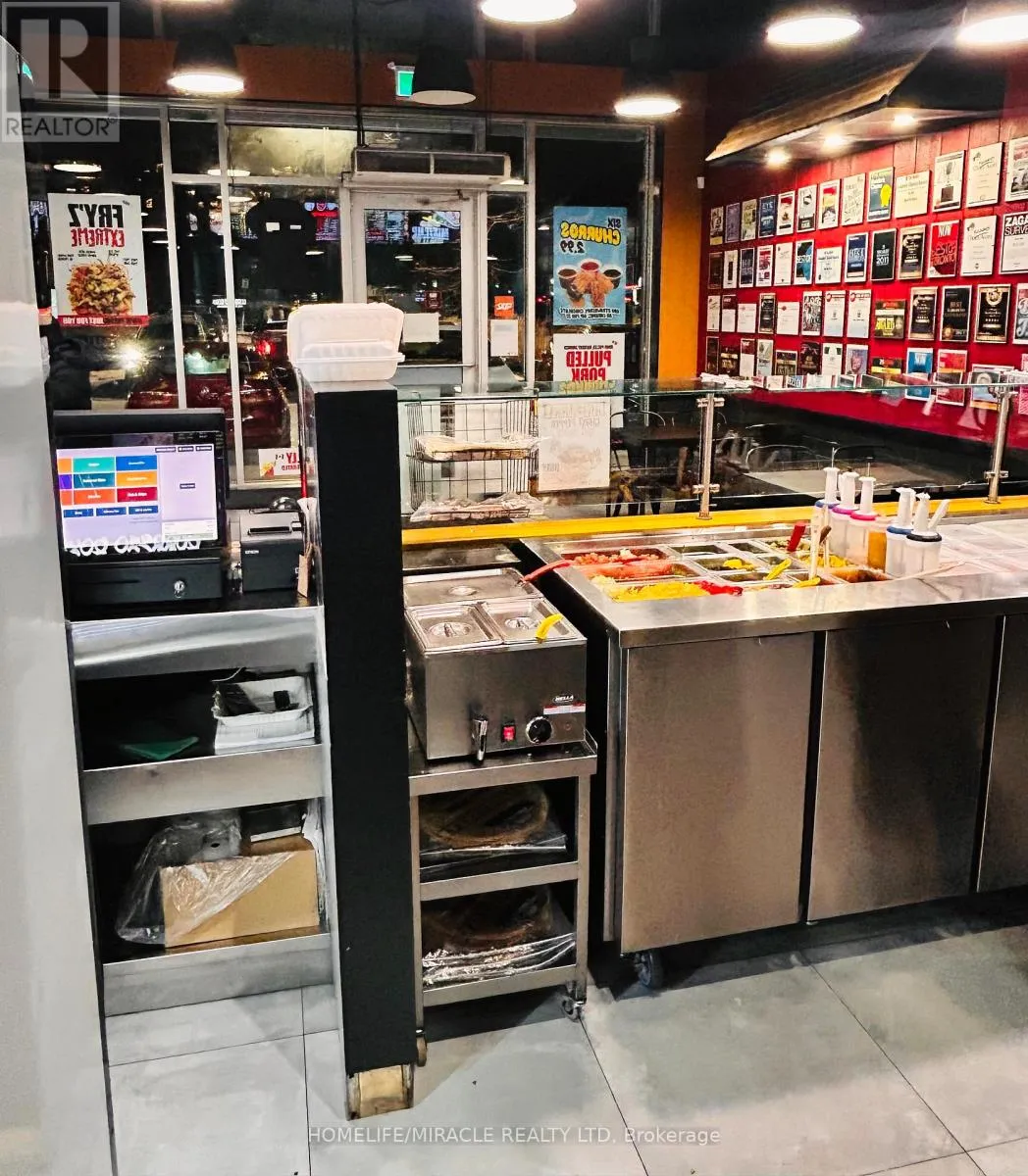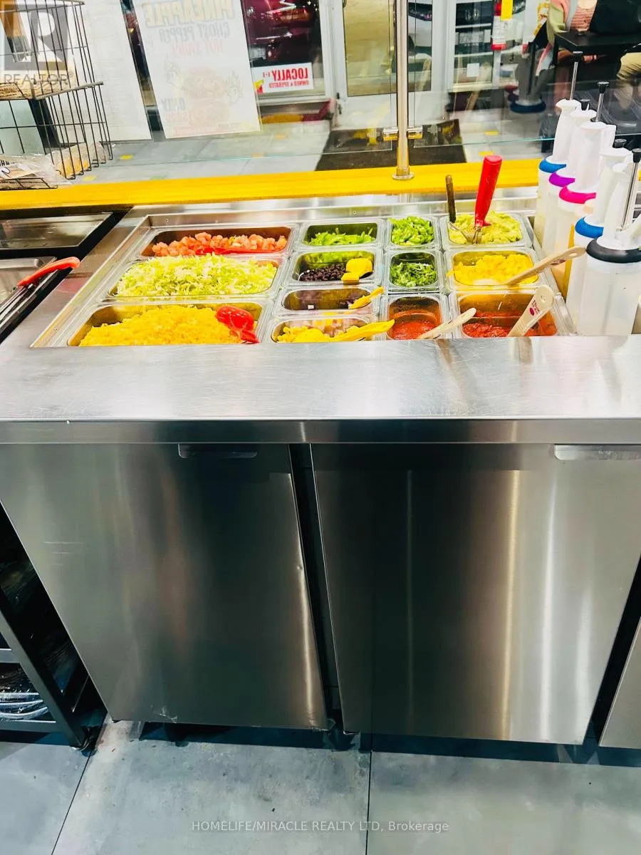 Rossland Rd E & Hardwood Ave N Discover an exceptional opportunity to own a high-traffic Burrito Boyz franchise in one of Ajax's most active commercial pockets. Perfectly placed at Rossland Rd E & Salem Rd N, this location is surrounded by nonstop activity from nearby childcare centres, corporate offices, Amazon Fulfillment Centre staff, the Ajax Fire Department, schools, and dense residential communities. The beautifully updated 1,279 sq. ft. unit offers strong curb appeal, excellent visibility, and consistent daily foot traffic-ideal for a thriving quick-service restaurant. With affordable rent ($3,943.58 + $2,250.48 TMI, including pylon signage and water), this setup delivers strong value in a premium corridor. A steady flow of loyal customers, strong online presence, and established delivery partnerships make operations smooth and profitable from day one. Surrounded by major brands and a growing population, this location is perfectly positioned for continued growth-plus additional upside from catering, local marketing, and community outreach. A modern, well-run franchise in a booming area... buyers looking for a ready-to-operate, income-producing business will love this one. (id:27476)