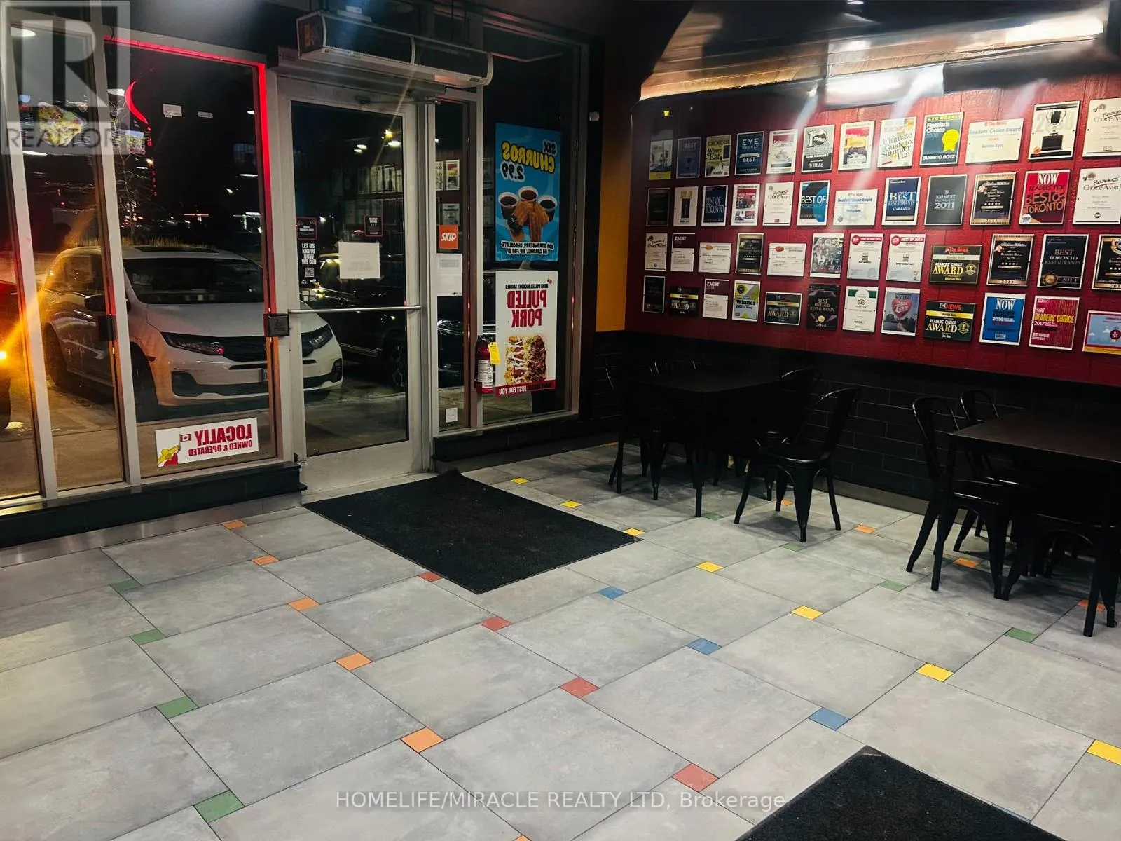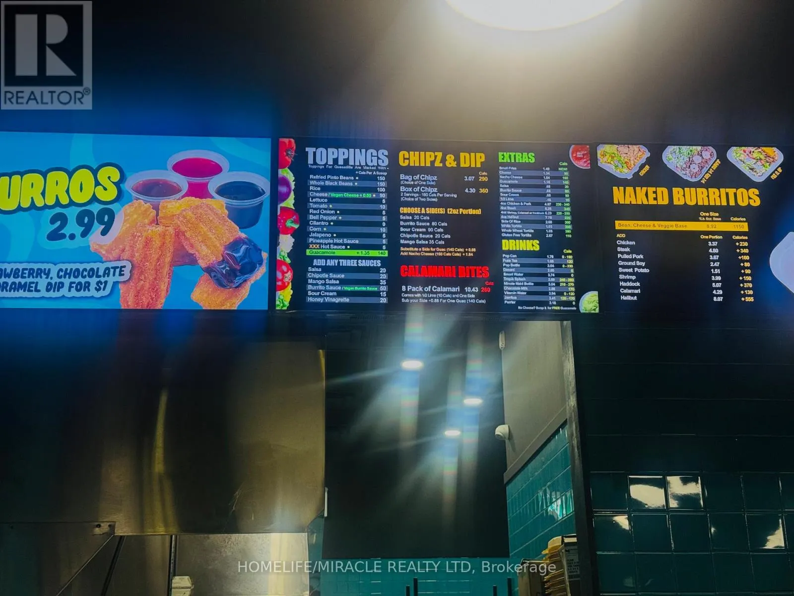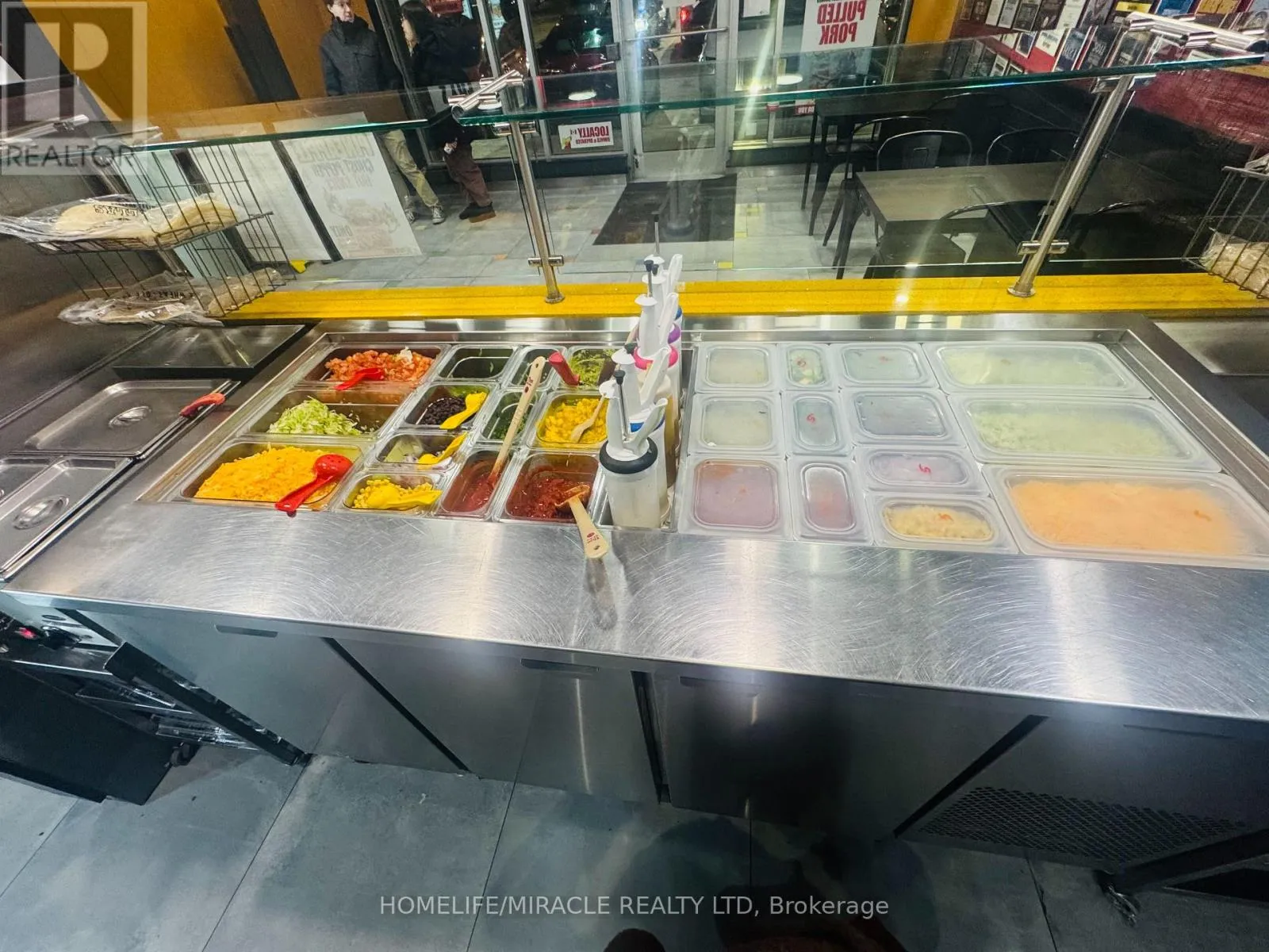 Rossland Rd E & Hardwood Ave N Discover an exceptional opportunity to own a high-traffic Burrito Boyz franchise in one of Ajax's most active commercial pockets. Perfectly placed at Rossland Rd E & Salem Rd N, this location is surrounded by nonstop activity from nearby childcare centres, corporate offices, Amazon Fulfillment Centre staff, the Ajax Fire Department, schools, and dense residential communities. The beautifully updated 1,279 sq. ft. unit offers strong curb appeal, excellent visibility, and consistent daily foot traffic-ideal for a thriving quick-service restaurant. With affordable rent ($3,943.58 + $2,250.48 TMI, including pylon signage and water), this setup delivers strong value in a premium corridor. A steady flow of loyal customers, strong online presence, and established delivery partnerships make operations smooth and profitable from day one. Surrounded by major brands and a growing population, this location is perfectly positioned for continued growth-plus additional upside from catering, local marketing, and community outreach. A modern, well-run franchise in a booming area... buyers looking for a ready-to-operate, income-producing business will love this one. (id:27476)