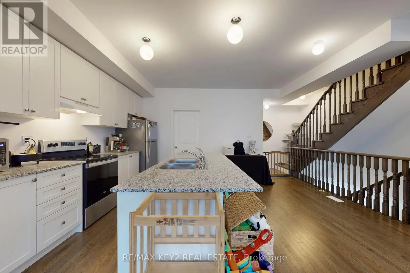 Cross Streets: Bayly St E& Salem. ** Directions: Bayly St E & Salem. Welcome to the Urban Chic Kingsley Model, ideally situated in a highly sought-after Ajax location just minutes to Hwy 401, Ajax GO Station, shopping centres, parks, and the scenic Ajax Waterfront. This beautifully maintained 3-bedroom, 3-bathroom townhome offers spacious, open-concept living with modern finishes throughout. The stylish kitchen features granite countertops, stainless steel appliances, a centre island, and a breakfast area, seamlessly flowing into the combined living and dining space. Large windows flood the home with natural light, complemented by hardwood flooring and 9-foot ceilings on the main and third floors. A sunken foyer adds architectural interest and a welcoming entry. Located in a family-friendly community, close to public transit, schools, Lakeridge Health Hospital, Lifetime Fitness, grocery stores, and restaurants. Enjoy the convenience of a covered front porch and additional storage with a cold cellar in the basement. (id:27476)