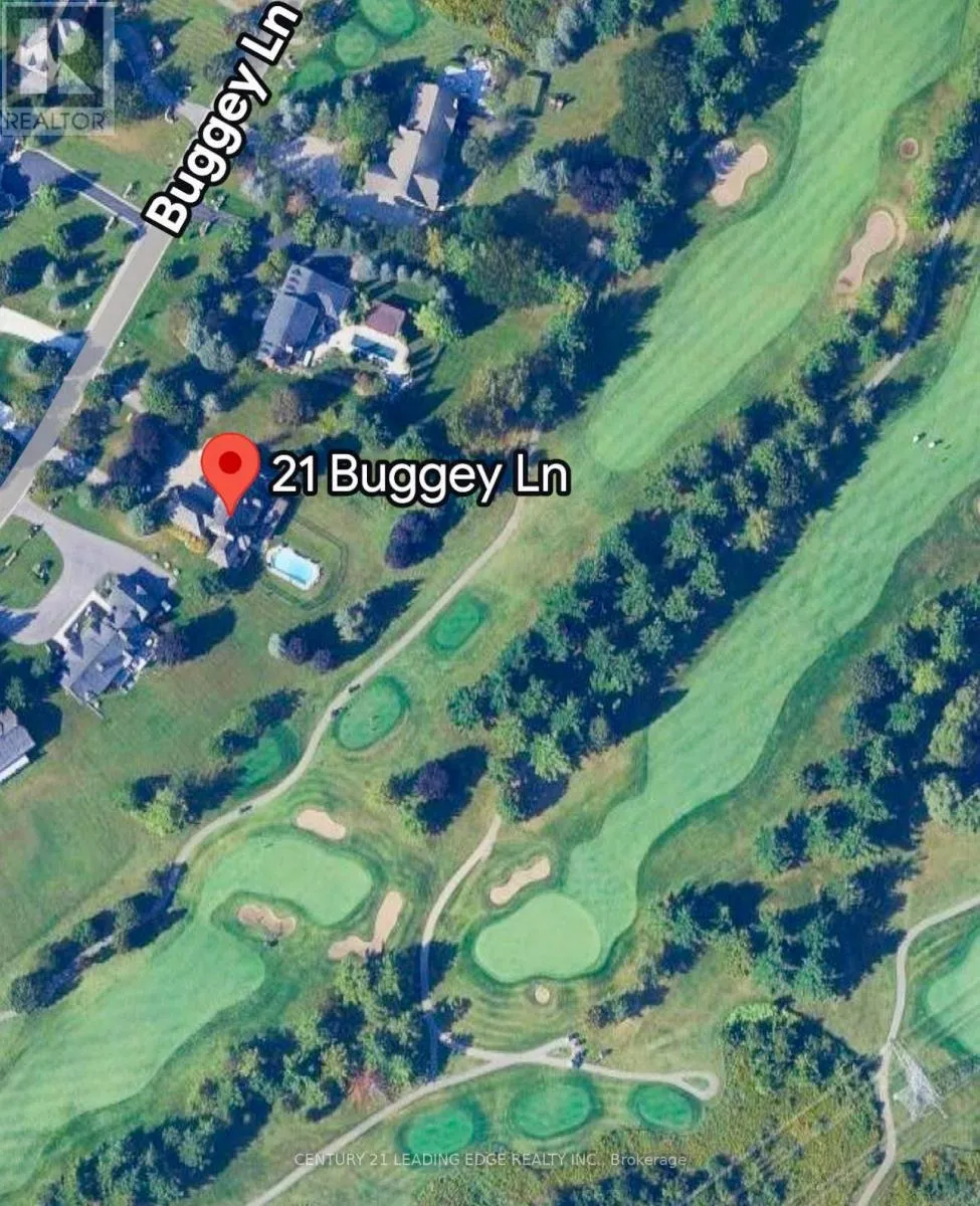 Salem and Buggey Lane Welcome to 21 Buggey Lane, Ajax.A truly exceptional, one-of-a-kind estate located in one of Ajax's most prestigious enclaves, overlooking the 9th tee of the renowned Deer Creek Golf Course.This stunning home offers over 7,000 sq ft of custom-finished living space designed for both elegant entertaining and comfortable family living. Featuring 4 spacious bedrooms, including a main-floor primary suite with walk-in closet, spa-like ensuite, and private alcove ideal for office, yoga, or reading, all with golf course views.The main level includes a refined library, family room with fireplace, entertainment-sized chef's kitchen, and formal living and dining rooms-each with fireplaces.The upper level boasts a guest suite with ensuite, two additional bedrooms, full bath, versatile nook area, and a custom media room.The fully finished walkout lower level offers a billiards/bar room, large recreation space with bar, two generous office/bedrooms, bathroom, ample storage, and a rare indoor dry hockey rink room.Set on over 1 acres, the professionally landscaped grounds provide a true four-season retreat with a heated saltwater pool and space for a winter skating rink.An extraordinary property offering lifestyle, luxury, and location. (id:27476)