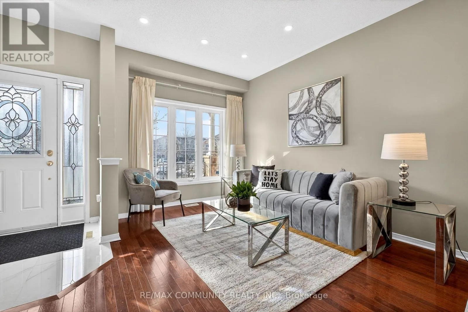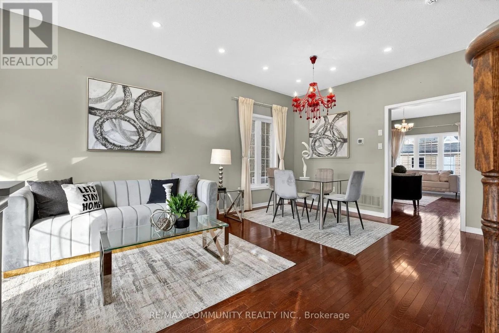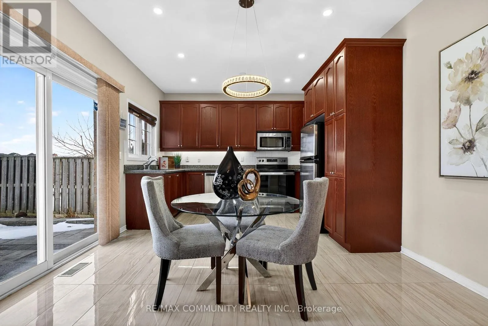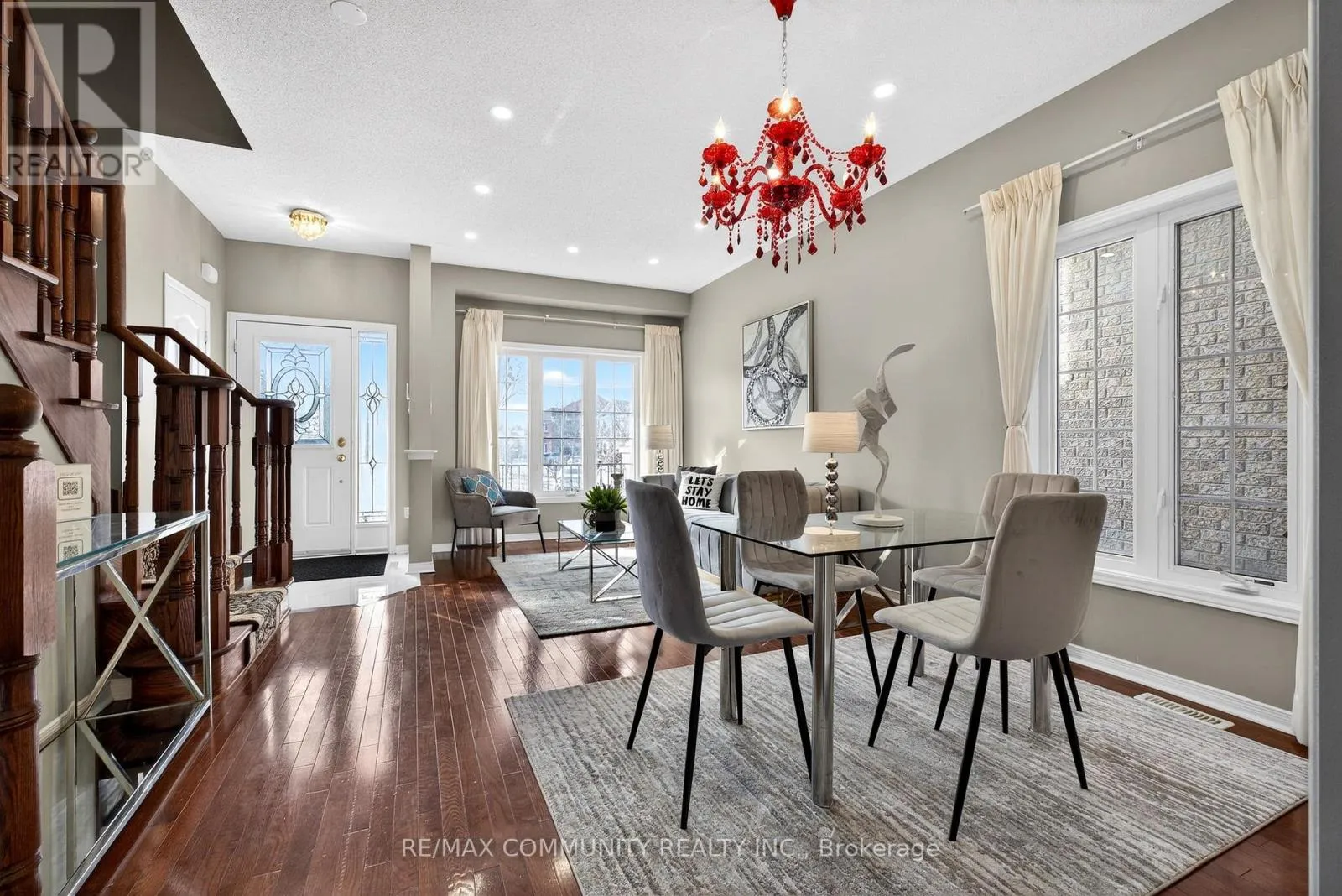 Salem & Rossland Welcome to this stunning, bright, and spacious 4-bedroom home located on a family-friendly cul-de-sac! Flooded with natural light, this home features hardwood flooring throughout and 9-ft ceilings on the main floor. The modern kitchen features stainless steel appliances, granite countertops, and extended 9-ft cabinets, complemented by a sunlit breakfast area with a walkout to a professionally landscaped, interlocked backyard-perfect for outdoor dining or entertaining.Enjoy elegant cherry-stained hardwood floors and a beautifully crafted stained oak staircase. The fully finished basement offers a large recreation room, an additional gathering space, a full bathroom, and a versatile fifth room or gym-ideal for guests, or a home fitness setup. Outside, the property backs onto open land with no immediate rear neighbors, providing ultimate privacy. The front offers plenty of parking and space for children to play. Additional highlights include an interlocked front driveway, fenced and landscaped backyard with a stylish metal picket fence.Conveniently located close to all amenities-minutes from schools, public transit, Highway 401, shopping centers, parks, and more. (id:27476)