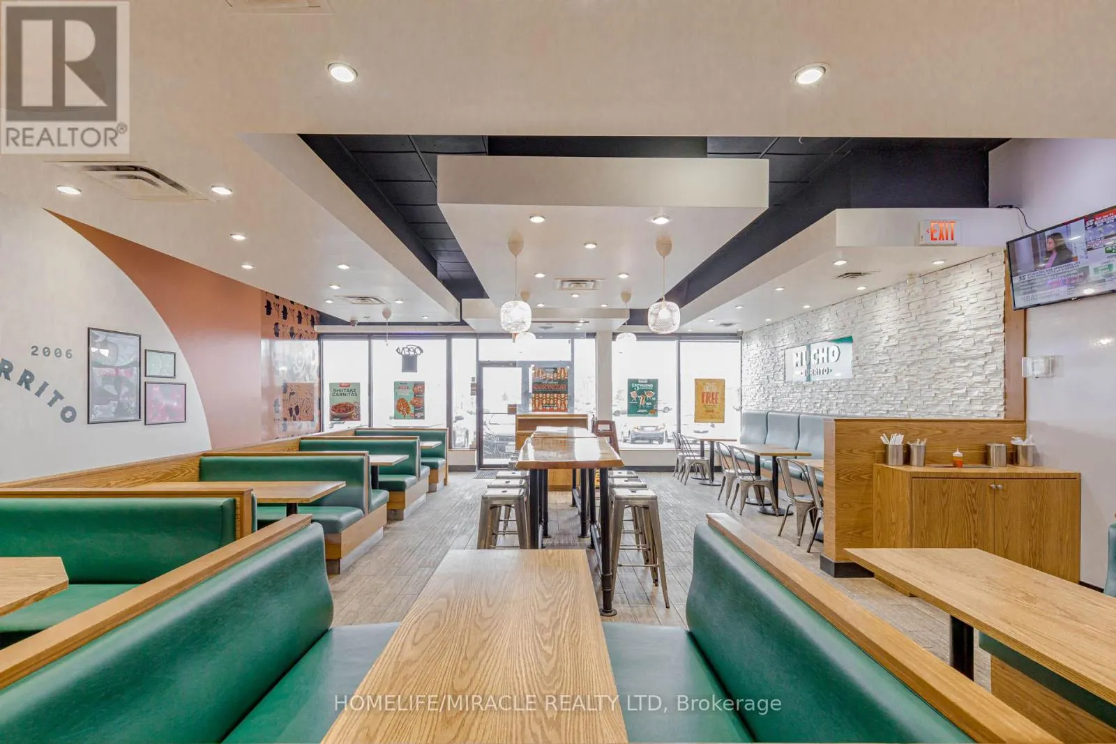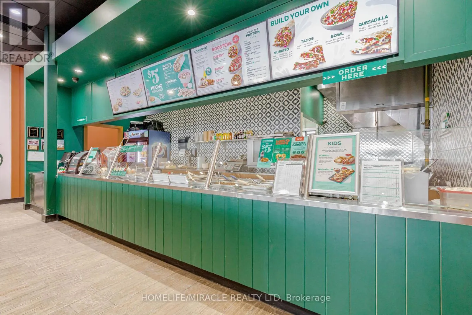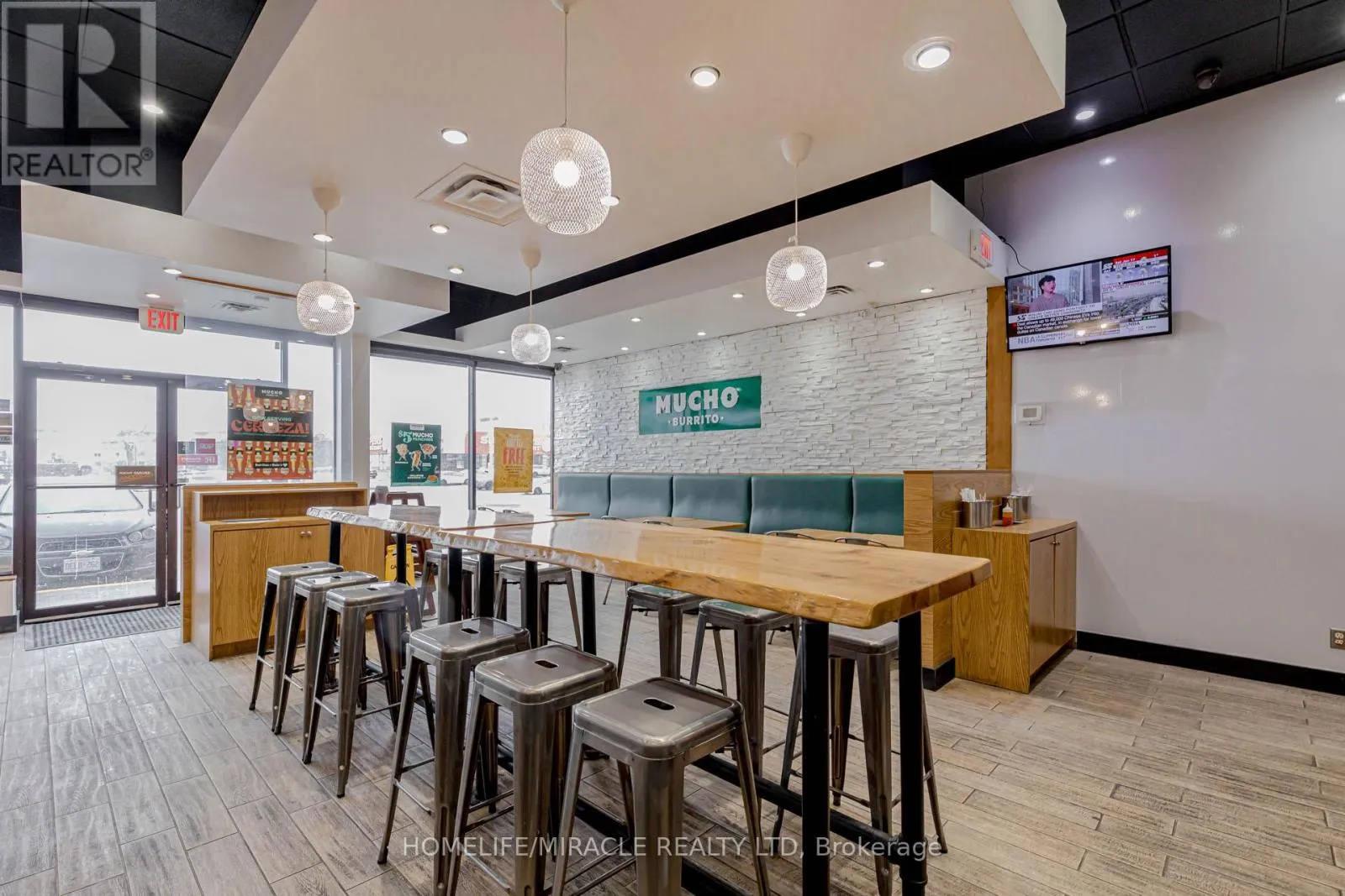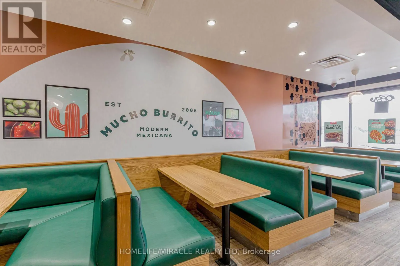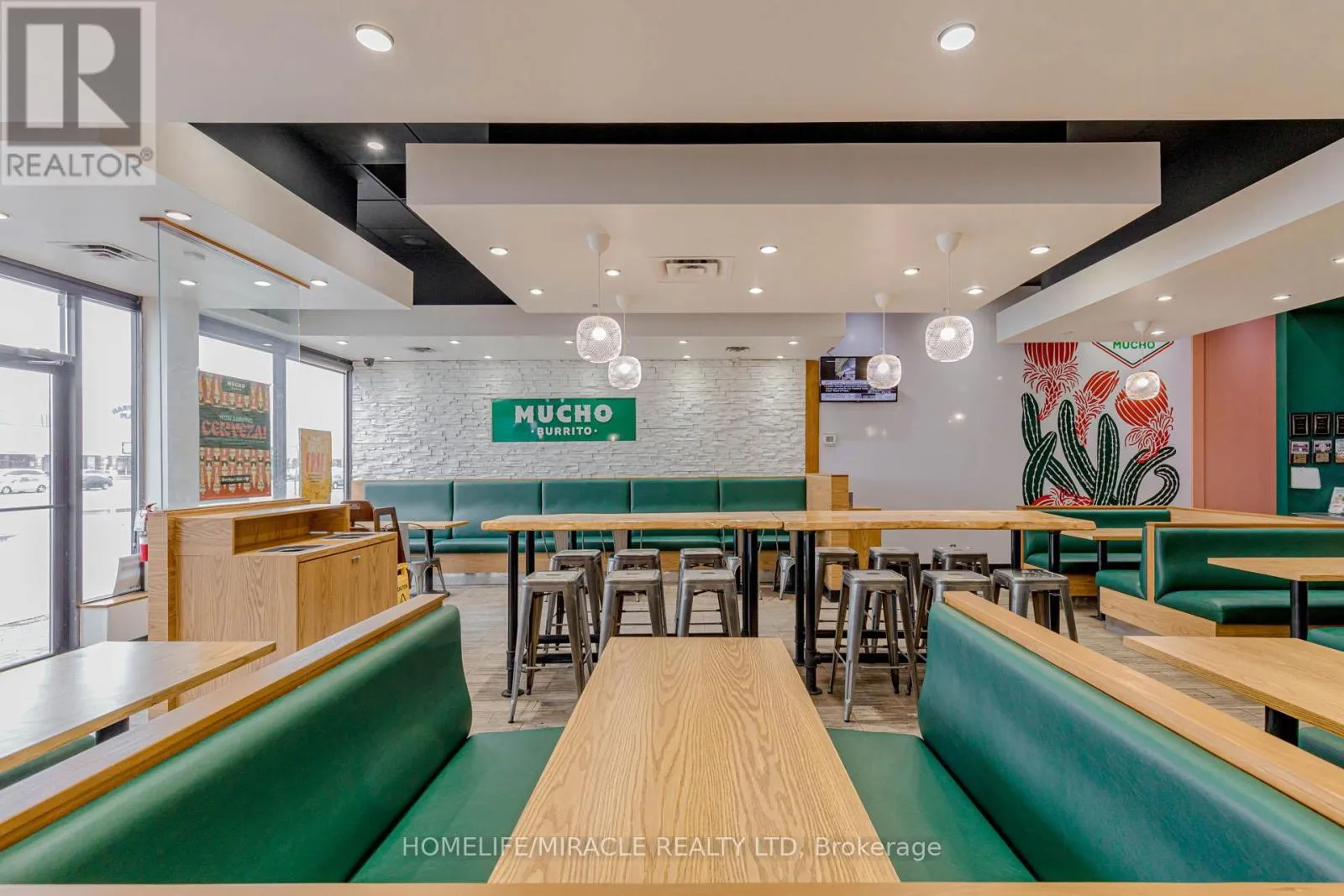 Cross Streets: Harwood Ave / Bayly St. ** Directions: Take Right From Harwood Ave. MUCHO BURRITO Business in Ajax, ON is For Sale. Located at the busy intersection of Bayly St W / Harwood Ave S, Surrounded by fully residential neighbourhoods. Close to schools, highways, offices, banks, and major big-box stores. Operating since 2014 with strong sales and growth potential. Avg. Monthly Sales: $53,650, Rent: $8721.71/m incl. TMI. Lease Term: Existing till May 2026 + 5 + 5 years option to renew, Royalty: 6%, Advertising: 4%, 68 seating with Turnkey operation. This store has been FULLY Renovated as per Franchisor requirements in Sept 2024 (id:27476)