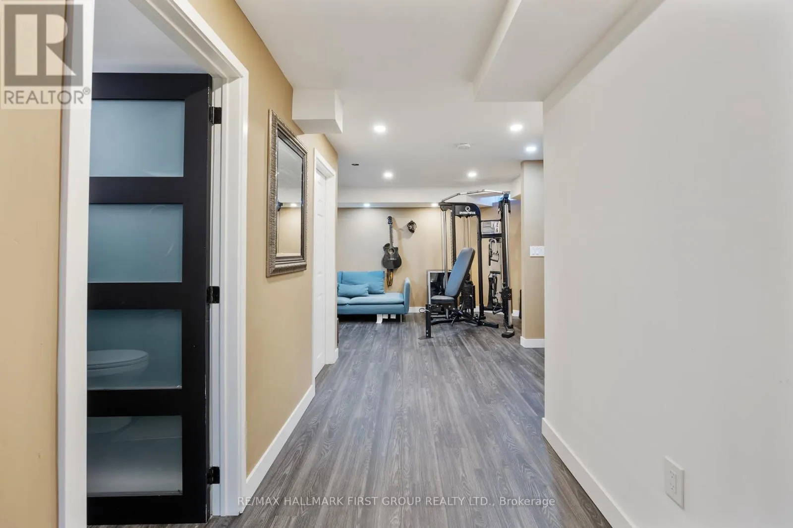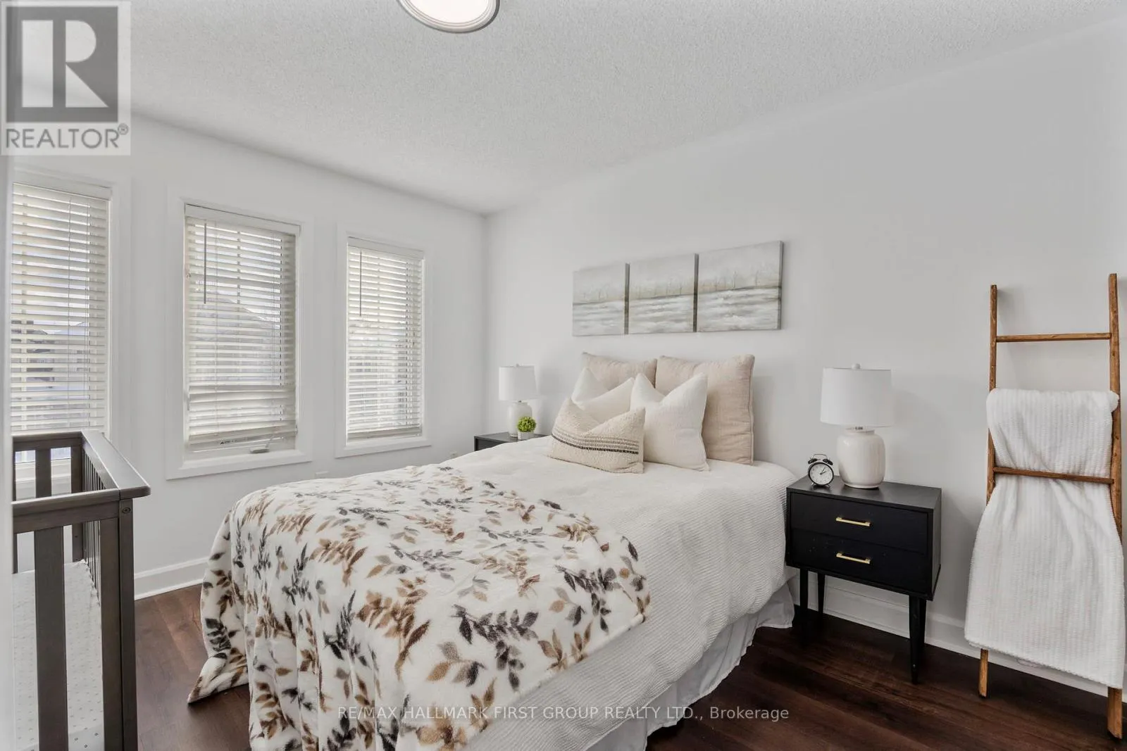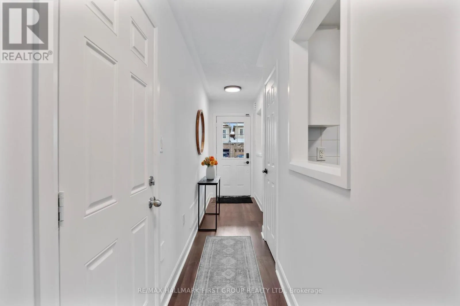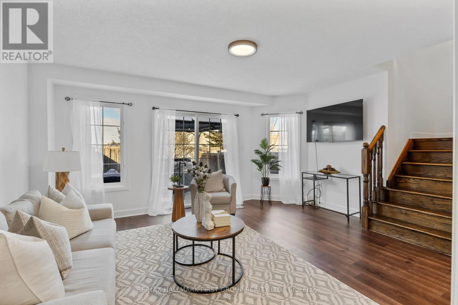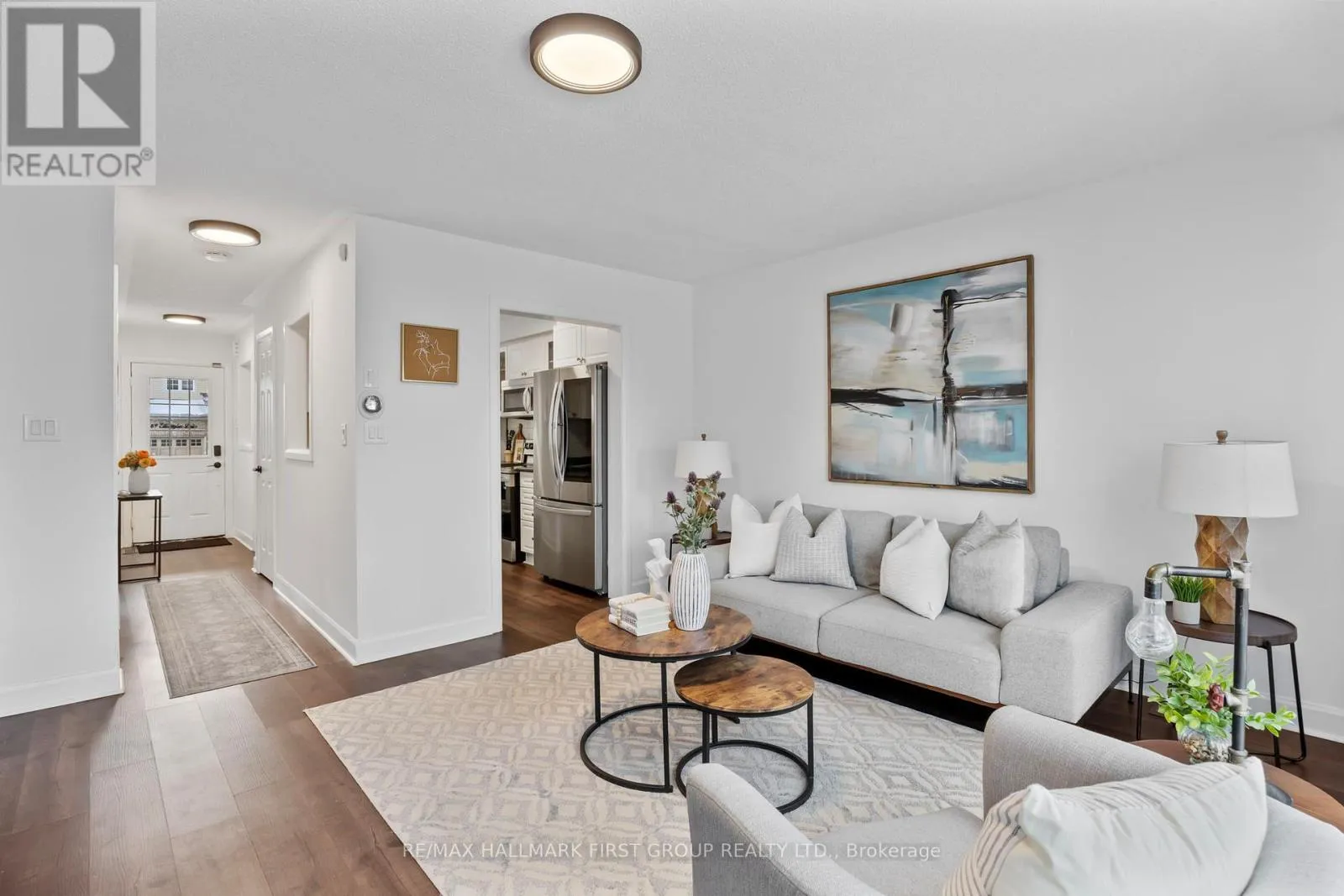 Cross Streets: Salem Rd & Williamson Dr. ** Directions: See Map. Nestled in a sought-after neighbourhood, this beautiful 3-bedroom townhome is meticulously maintained and move-in ready. The main floor features a spacious combined living and dining area, ideal for both everyday living and entertaining. Rich hardwood flooring throughout adds warmth and timeless elegance and creates that extra inviting ambiance. The finished recreation room in the basement includes pot lights, offering flexible space for a family room, office, or gym. Oak staircases lead to the second floor, combining style with durability. Upstairs, three generously sized bedrooms provide comfort and functionality. The oversized primary bedroom features a large closet and a private 4-piece ensuite. Each bedroom is filled with natural light and thoughtfully laid out. Step outside to enjoy a cozy backyard, perfect for relaxing or hosting guests. This home offers a perfect balance of luxury and practicality. Ideally located near schools, community centres, public transit, parks, Highway 412, and all essential amenities. (id:27476)