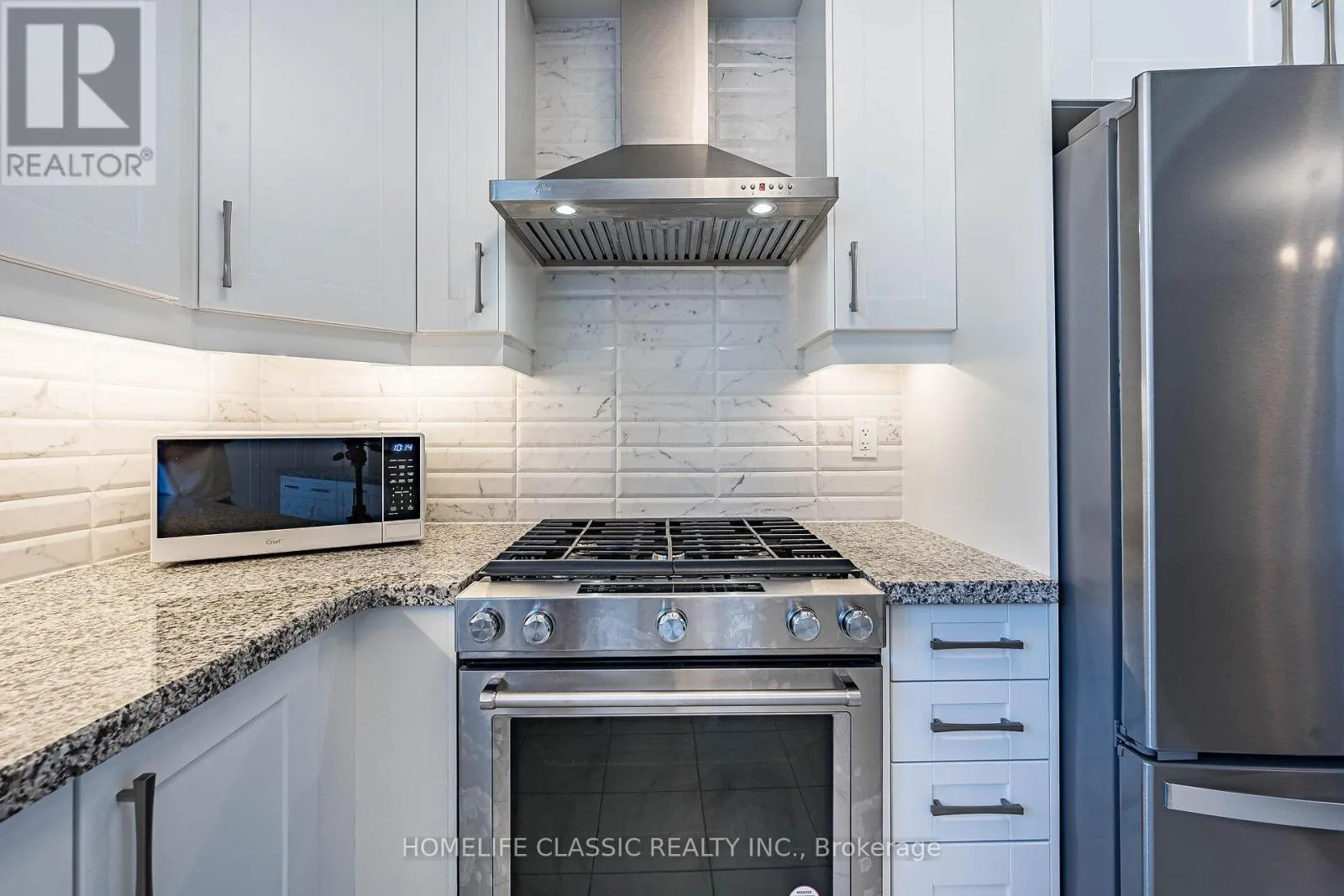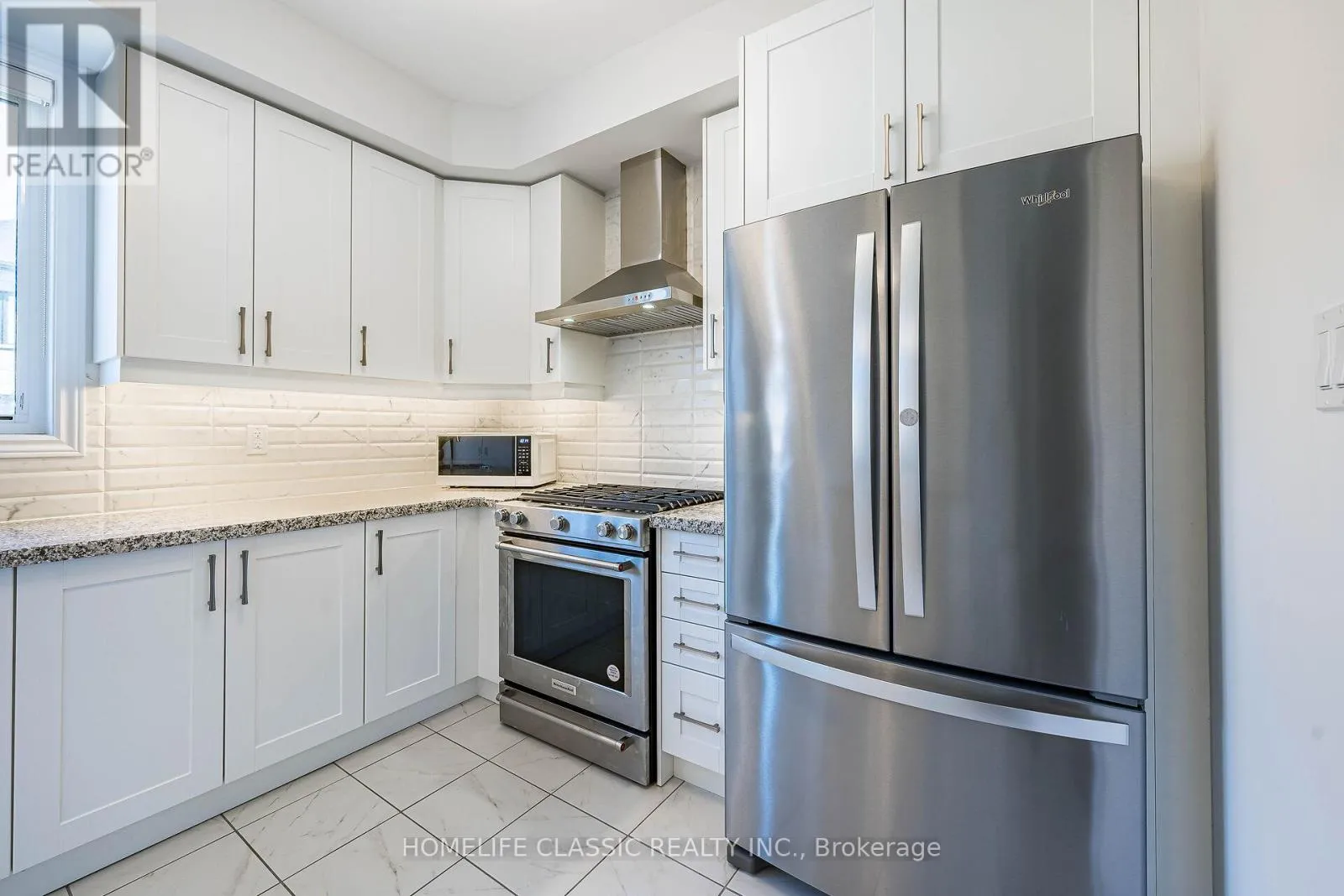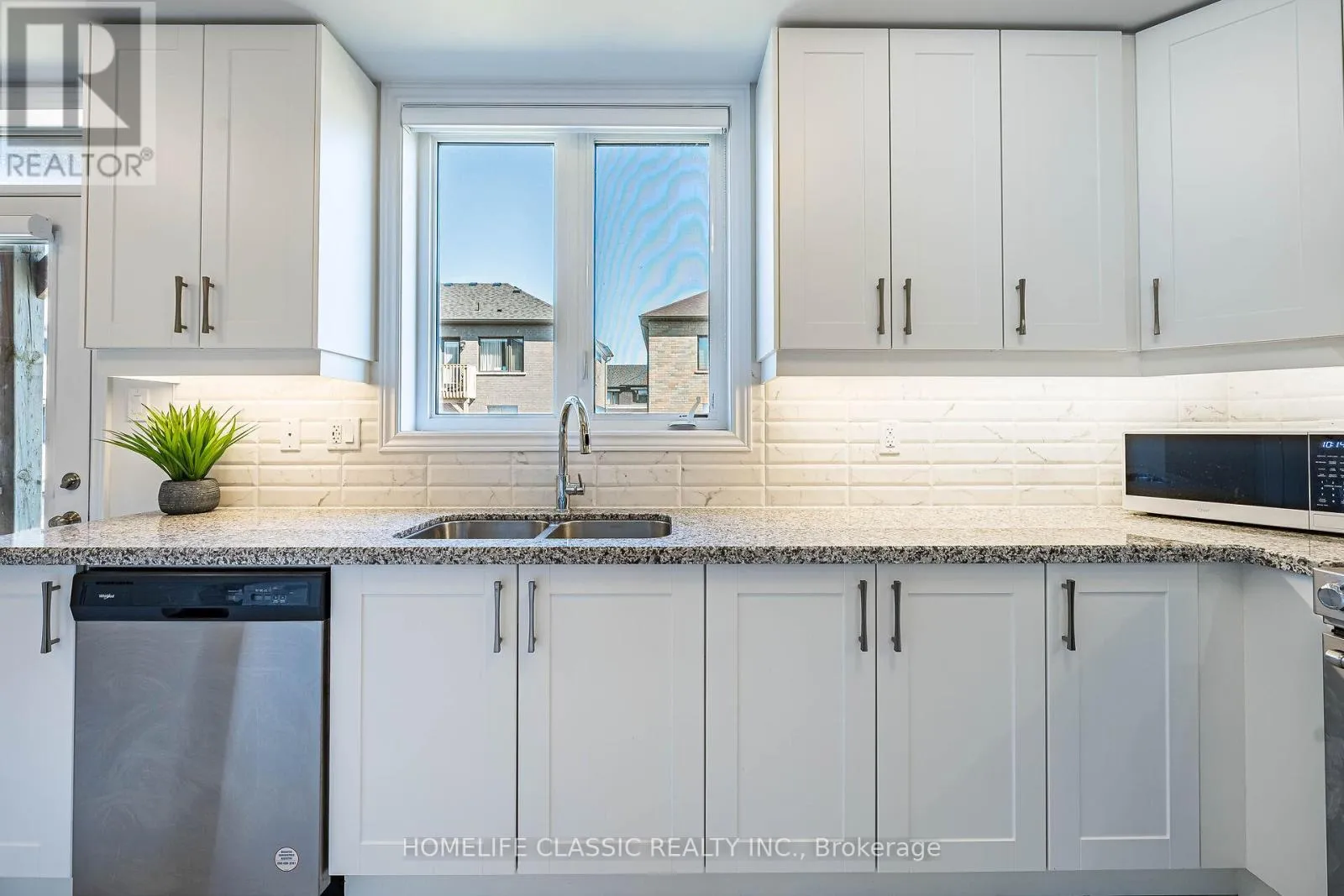 Cross Streets: Bayly St E/Clayton Rd. ** Directions: . Welcome to your dream home! This 4 Bedroom + 4 Washroom, Corner/End Unit property boasts a plethora of high-end upgrades. The kitchen is a chef's paradise, featuring a 30" Stainless Steel Gas Range with an upgraded hood fan, elegant granite countertops (Grigio Sardo), and stylish backsplash tiles (Snowhite series and Carrara 3x12 Metro Mate). The cabinetry is upgraded with deep pantry and pot & pan drawers, all finished with brushed nickel hardware. Recessed lighting with dimmer switches illuminates the great room, while a capped ceiling outlet above the kitchen island offers an opportunity for a stylish lighting fixture. The bathroom upgrades include Arctic White vanity cabinets, Weave White wall tiles, and a Delta Vero Shower Kit, providing a spa-like experience.This home is designed for modern living, with Cat6 data outlets in Bedrooms 2 and 3, a 2" conduit from the basement to the attic, and additional duplex outlets for convenience. Hardwood flooring (Gryphon 5" Red Oak Character Smooth Pearl) extends through key areas, complemented by stained oak railings and spindles. The property also includes a capped ceiling outlet above the fireplace for a wall-mounted TV, and the HVAC system is prepped for easy range hood hook-up. Central Vacuum included. Steps away from Park. This exceptional property combines luxury and functionality, making it the perfect sanctuary for discerning buyers. Schedule a viewing today and experience unparalleled comfort and style. (id:27476)
