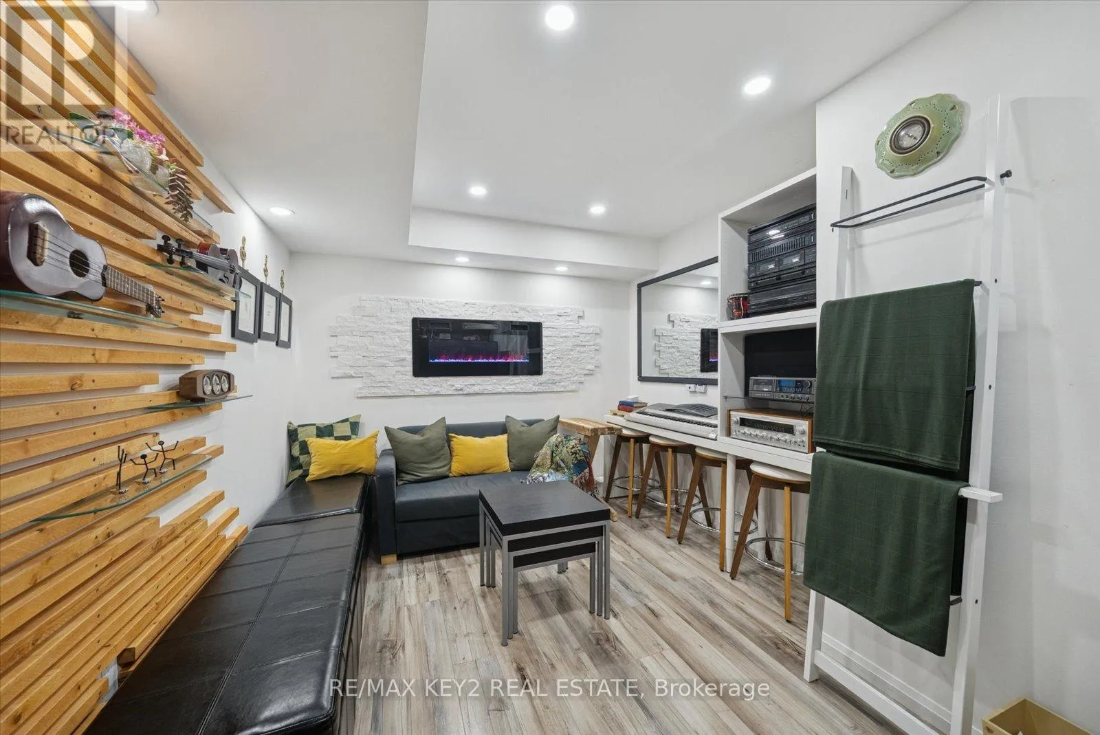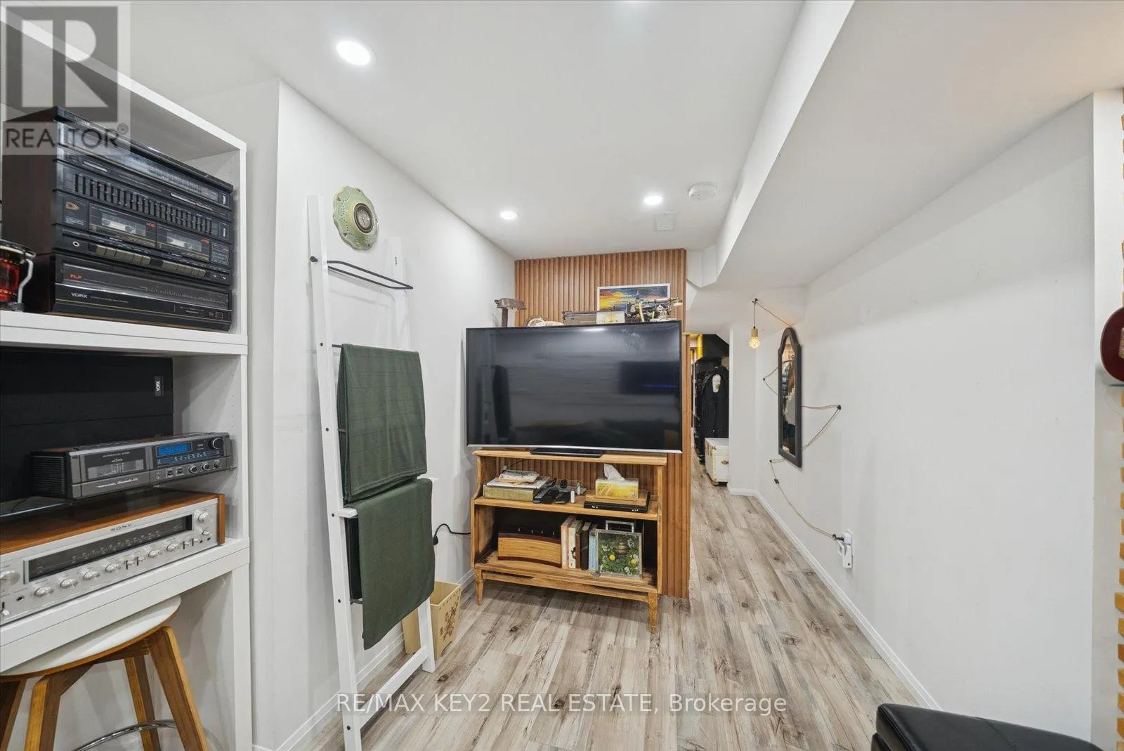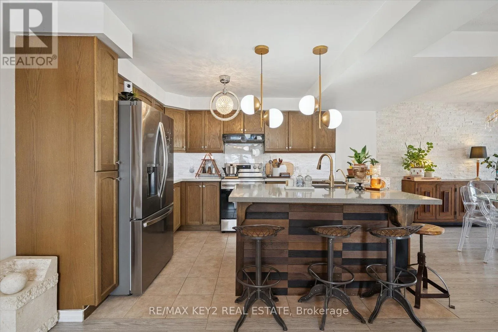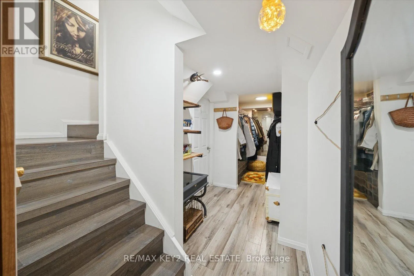 Rossland/Audley Welcome to this 4-bedroom, 3-bathroom freehold end-unit townhouse offering the space and privacy of a semi, and COMPLETELY FREEHOLD! Thoughtfully maintained and move-in ready, this all-brick home delivers practical layout, natural light, and everyday functionality in a well-established, family-friendly neighbourhood. The main level features direct garage access, a sitting area and laundry plus extra storage. The 2nd level offers a spacious and bright, open-concept living area anchored by an upgraded kitchen. A bedroom on this floor offers versatility of space for a growing family or one with aging parents. The top floor surprises with 3 very spacious bedrooms and lots of closet space. There is more!! The basement is finished and is ideal for entertainment or hobby enthusiasts ! Multiple walk-outs - to both a front porch and private balcony - create flexible indoor-outdoor living, ideal for day-to-day life and entertaining alike. This home has so much character and multi purpose options that it won't last! Conveniently located within walking distance to parks, playgrounds, trails, Audley Recreation Centre, and schools, with quick access to Costco, Shopping, restaurants, transit, and major highways 401, 407, and 412. The area is served by highly regarded schools including Viola Desmond PS, Notre Dame CSS, and J. Clarke Richardson Collegiate. A strong option for buyers seeking space, location, and long-term value. (id:27476)