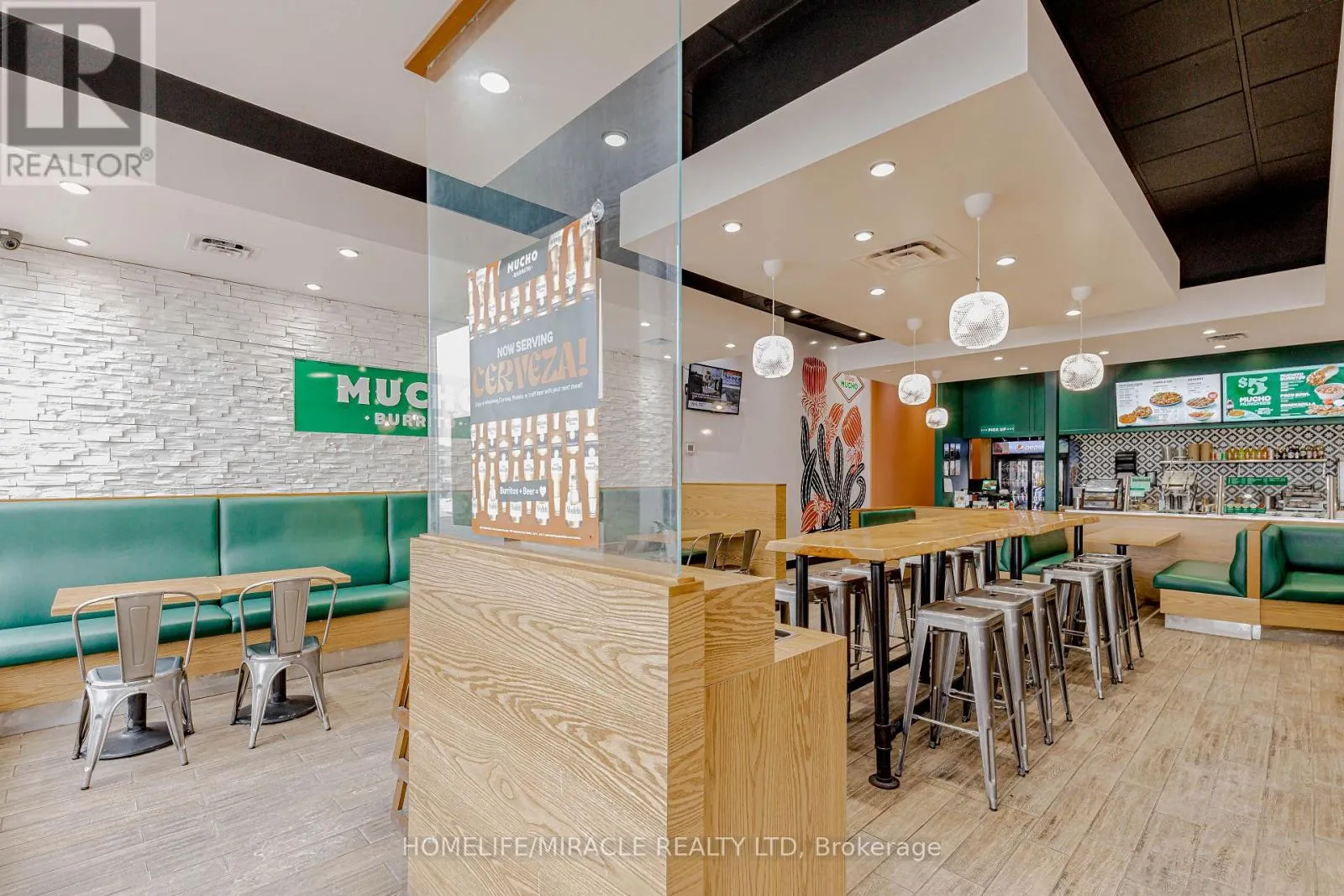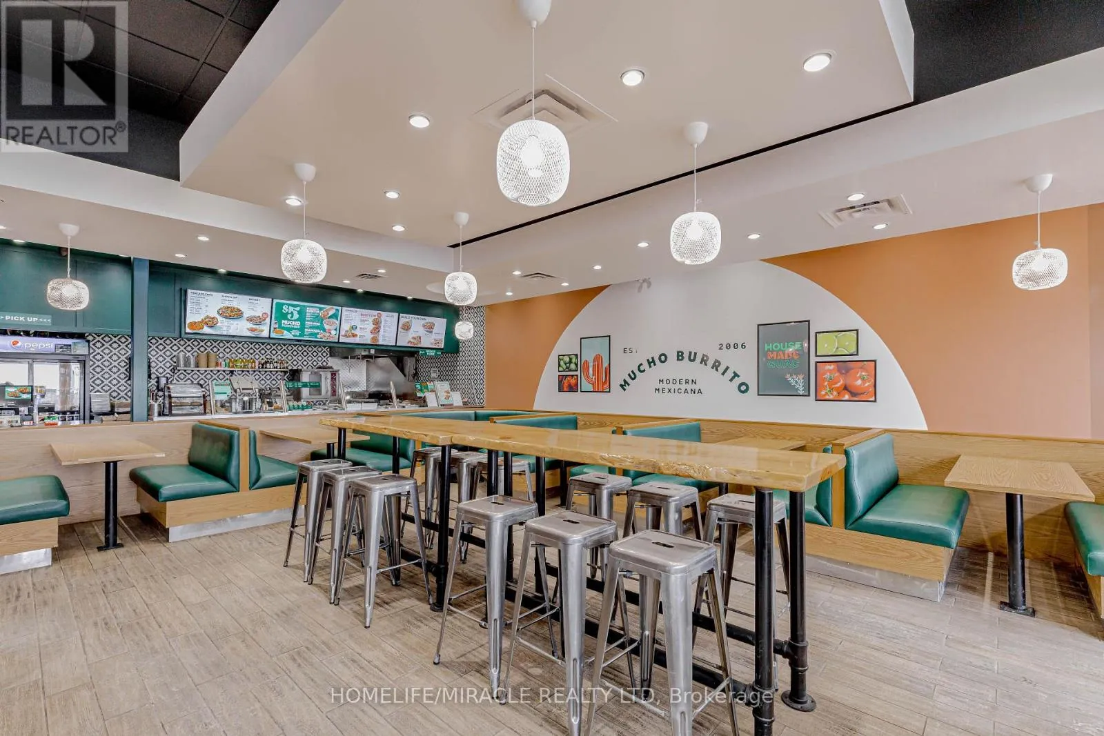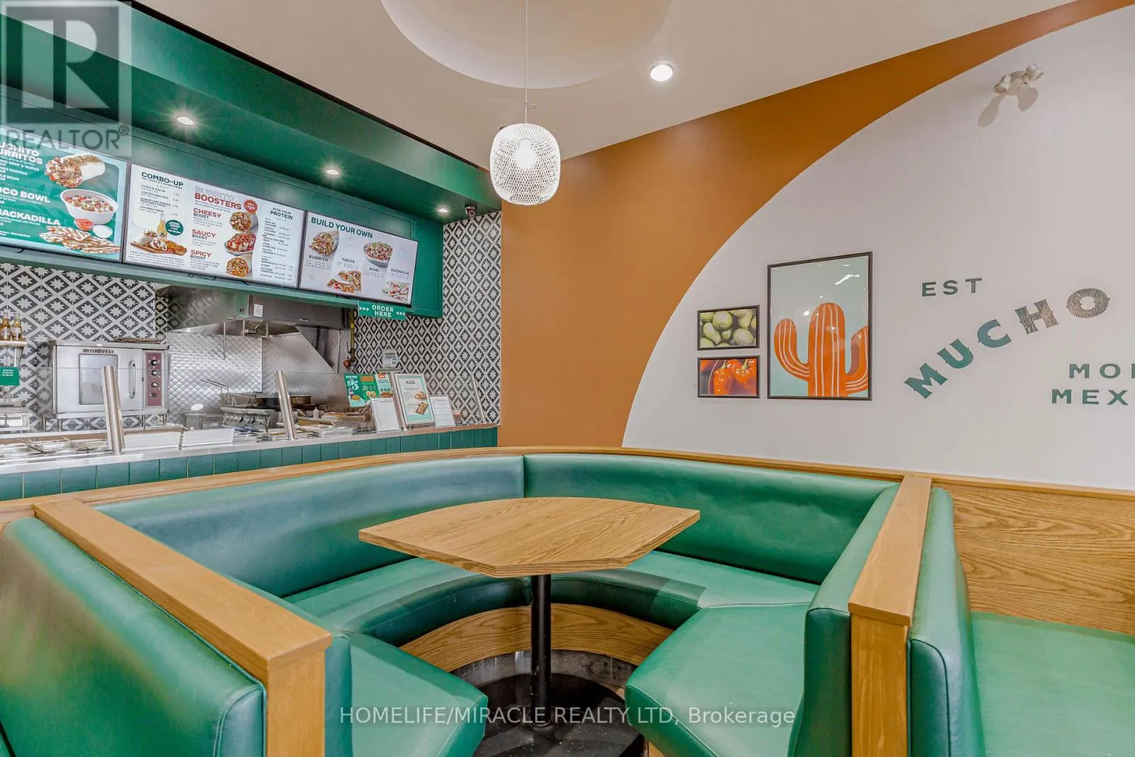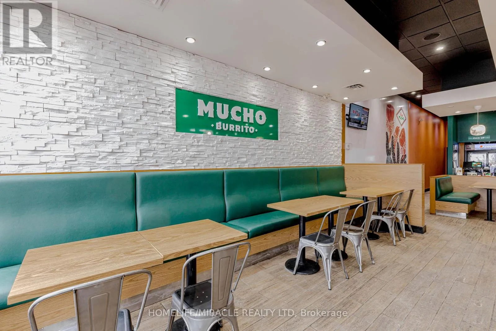 Cross Streets: Bayly St W/Harwood Ave S. ** Directions: Turn Right ON Harwood Ave S. Mucho Burrito for Sale in Ajax, ON. Located at the busy intersection of Bayly St W / Harwood Ave S, surrounded by fully residential neighbourhoods. Close to schools, highways, offices, banks, and major big-box stores. Operating since 2014 with strong sales and growth potential. Avg. Monthly Sales: $53,650, Rent: $8721.71/m incl. TMI. Lease Term: Existing till May 2026 + 5 + 5 years option to renew, Royalty: 6%, Advertising: 4%, 68 seating with Turnkey operation. (id:27476)