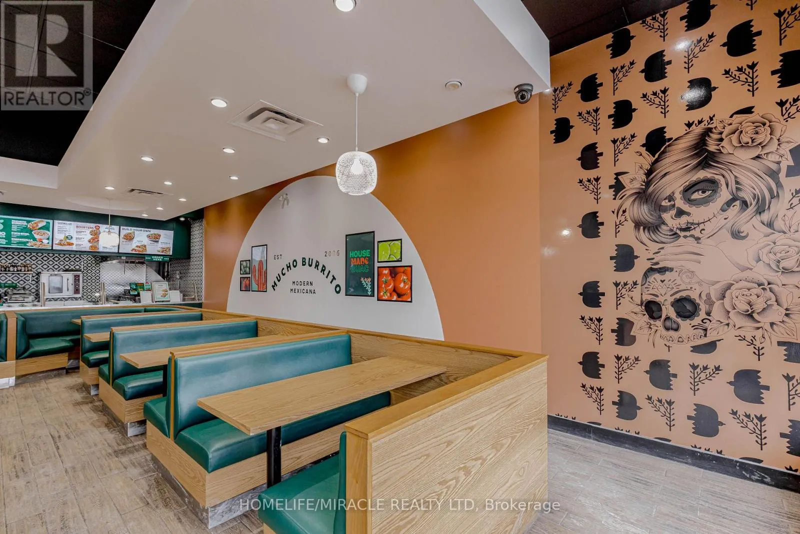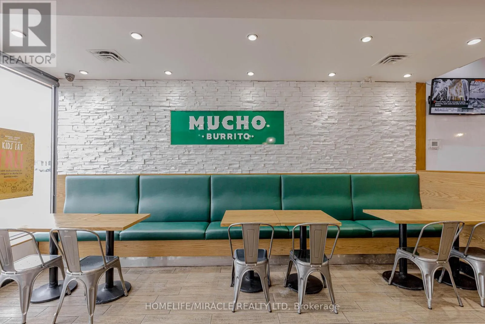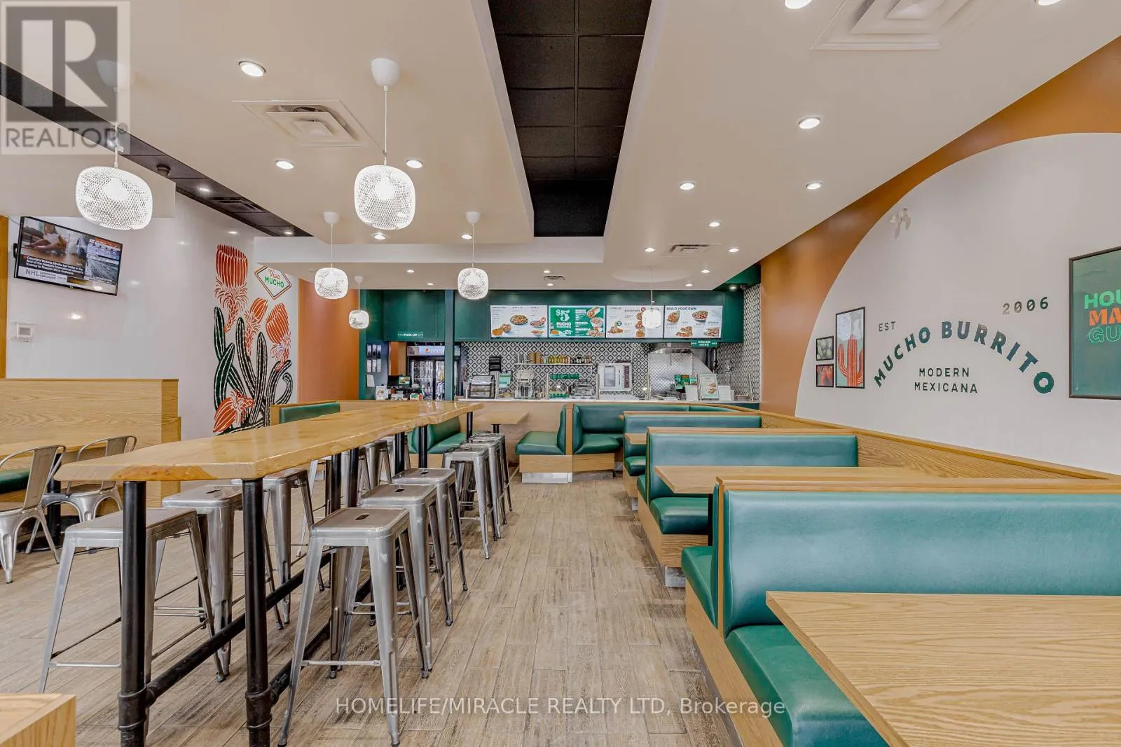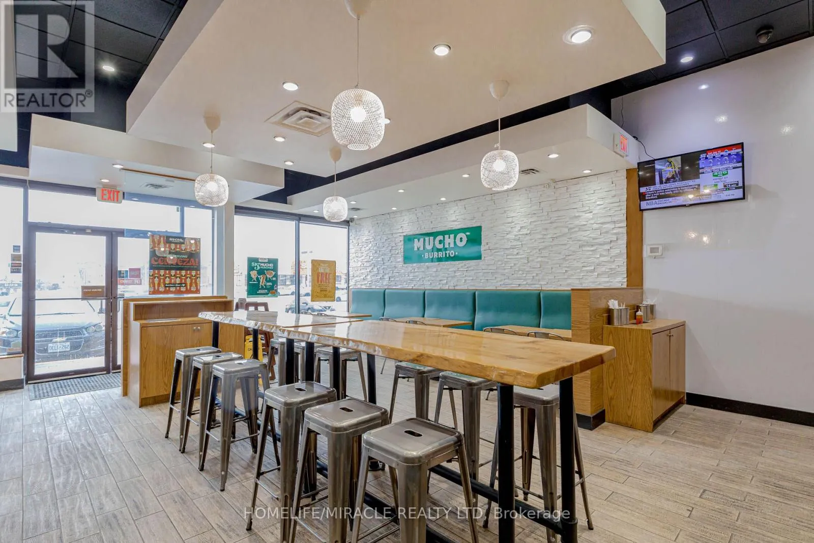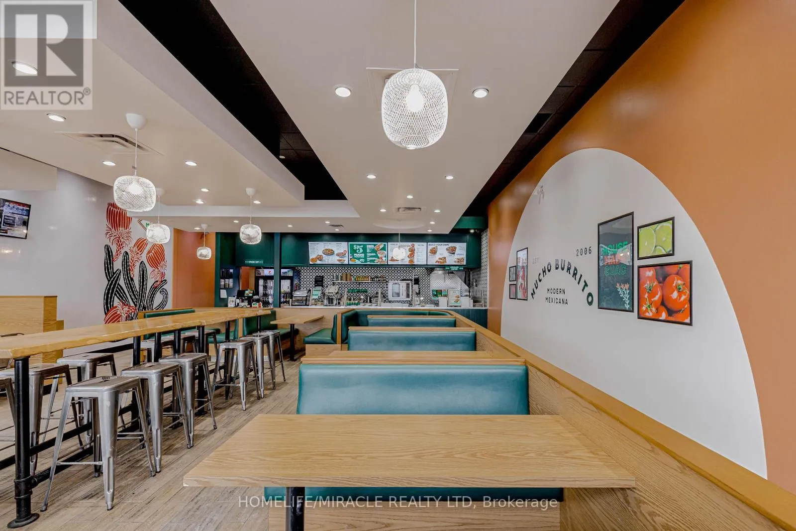 Cross Streets: Bayly St W/Harwood Ave S. ** Directions: Turn Right ON Harwood Ave S. Mucho Burrito for Sale in Ajax, ON. Located at the busy intersection of Bayly St W / Harwood Ave S, surrounded by fully residential neighbourhoods. Close to schools, highways, offices, banks, and major big-box stores. Operating since 2014 with strong sales and growth potential. Avg. Monthly Sales: $53,650, Rent: $8721.71/m incl. TMI. Lease Term: Existing till May 2026 + 5 + 5 years option to renew, Royalty: 6%, Advertising: 4%, 68 seating with Turnkey operation. (id:27476)