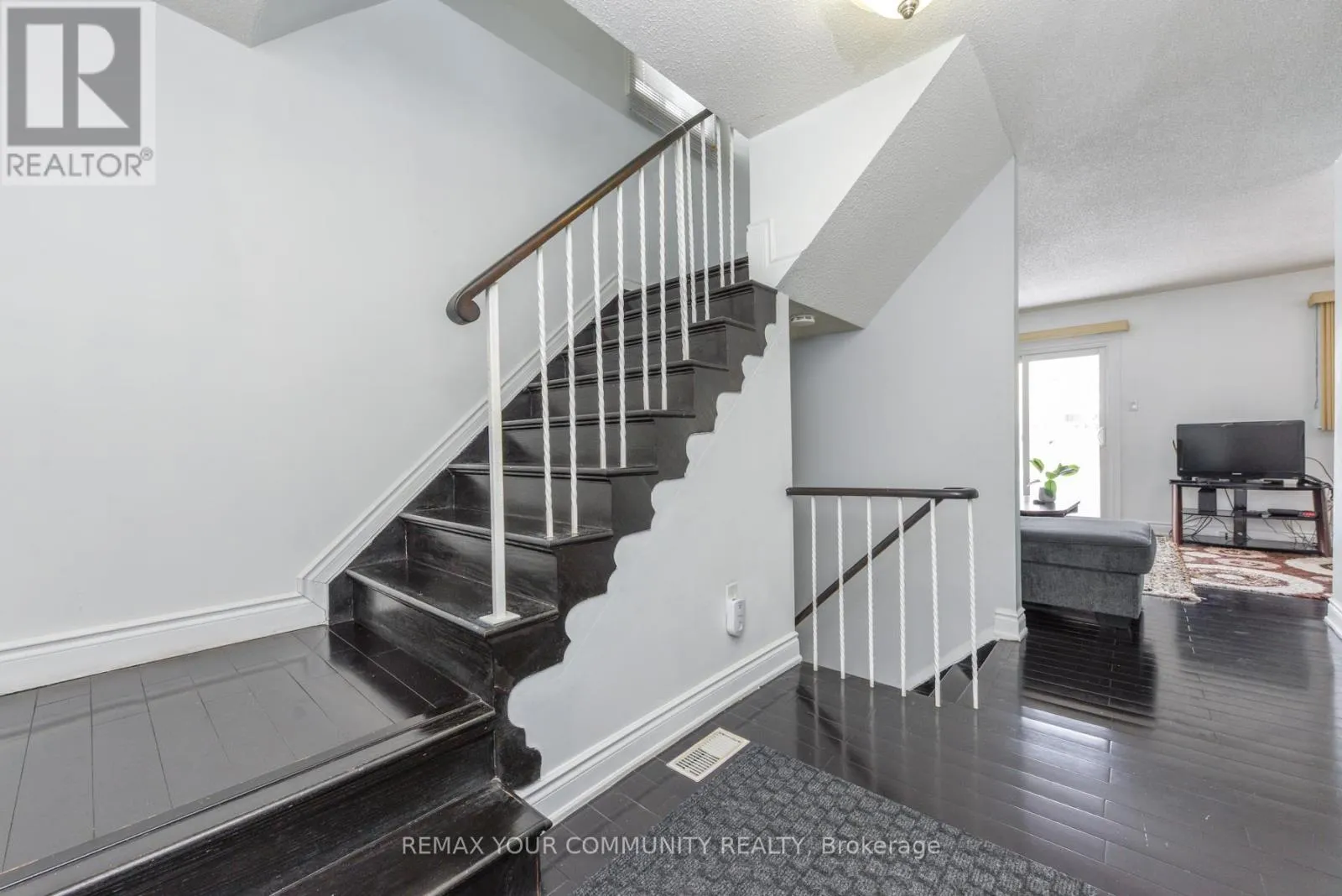 Westney/Ravenscroft Welcome to this beautifully refreshed 3-bedroom detached home on a Pie shaped Lot offering bright, comfortable living and updates throughout. Freshly painted and featuring hardwood floors, this home is move-in ready and designed for easy everyday living. The updated kitchen showcases granite countertops and stainless steel appliances, while the fully renovated bathrooms add a stylish, contemporary touch. Smooth ceilings on the second floor enhance the clean, modern fell of the home. Major improvements provide added peace of mind, including the roof, windows, and back door (2018), along with a new furnace and water heater (2024). A Finished basement offers additional living space-ideal for a family room, home office, or recreation area. The property includes a single-car garage plus driveway parking for two additional vehicles. Perfect for first-time buyers and Downsizers this turnkey home offers both comfort and long-term value. Conveniently located just minutes from shopping, transit, Ajax GO Station, Highway 401, parks, and everyday amenities, this home blends location, functionality, and lifestyle beautifully. (id:27476)