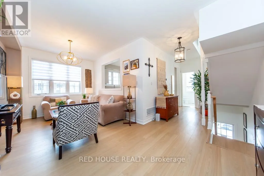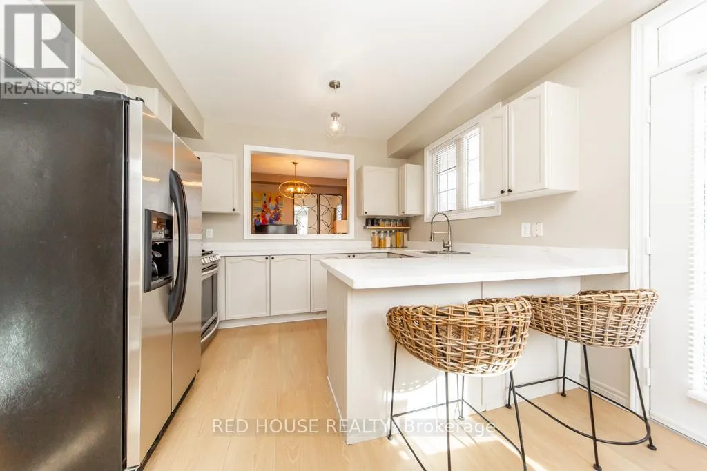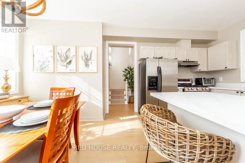 Bayly/Shoal Point Gorgeous End Unit Townhome in Picturesque & Quiet Neighbourhood. Close to the Lake. Sun Filled Space. Excellent & Efficient Layout. Stunning 9 Ft Ceilings. Warm Colours & Decor. Laminate Floors Throughout. Open Concept Living/Dining Area. Two Main Entrances. Close to the Garage and to Visitor's Parking. Large Eat In Kitchen w/ Quartz Counters, Stainless Steel Appliances, Breakfast Bar & Walk Out to the 2nd Floor Balcony. Kitchen Overlooks Living/Dining. Ground Floor Family Room w/ a Walk Out To A Covered Porch. Spacious Laundry Room. Extra Storage in Utility Room. Many Updates. New Stair Runner Recently Installed. Very Pet Friendly Complex. Close to Ajax GO, Several Schools, Public Transit, 401 Highway & All Amenities. (id:27476)