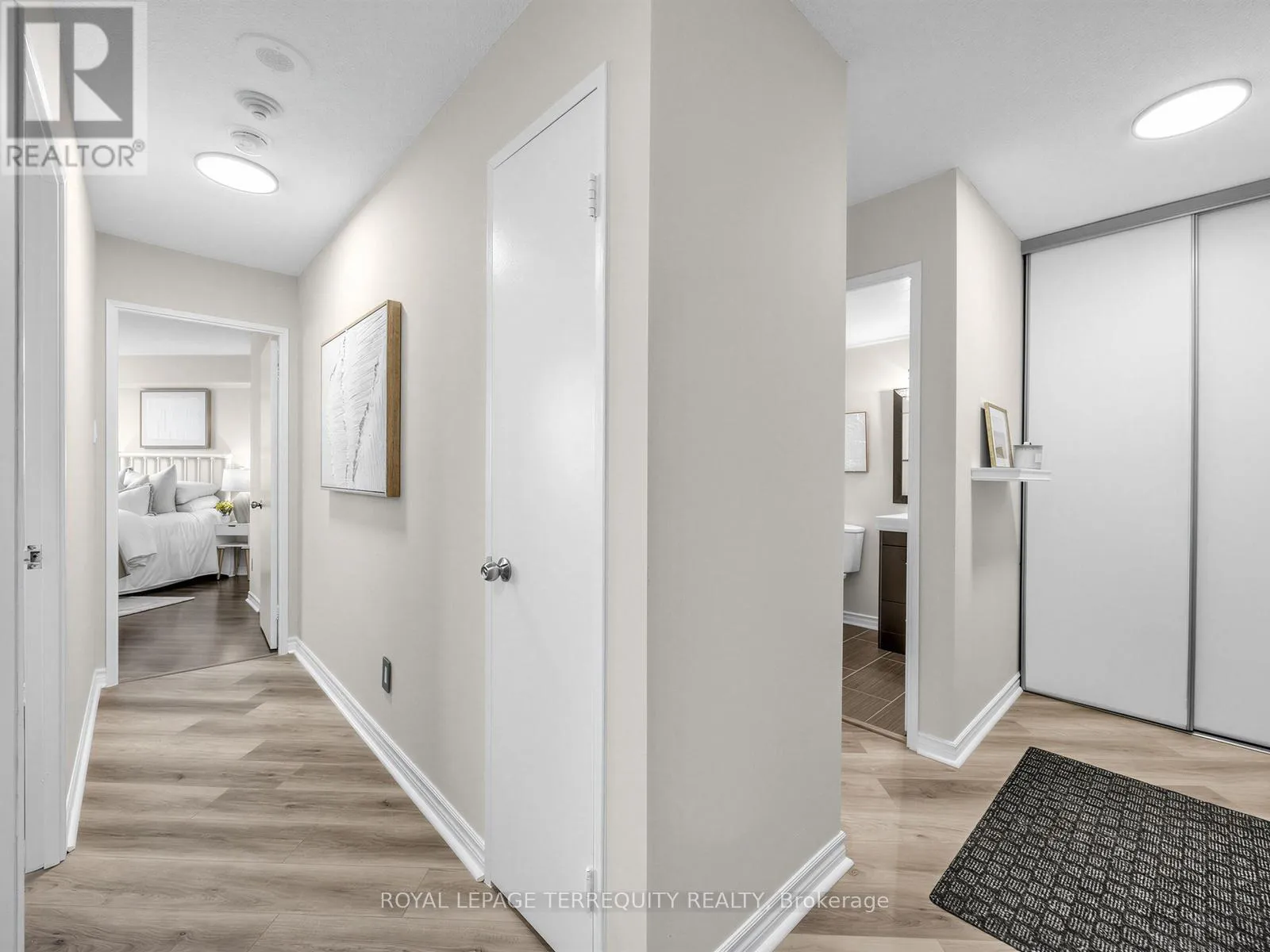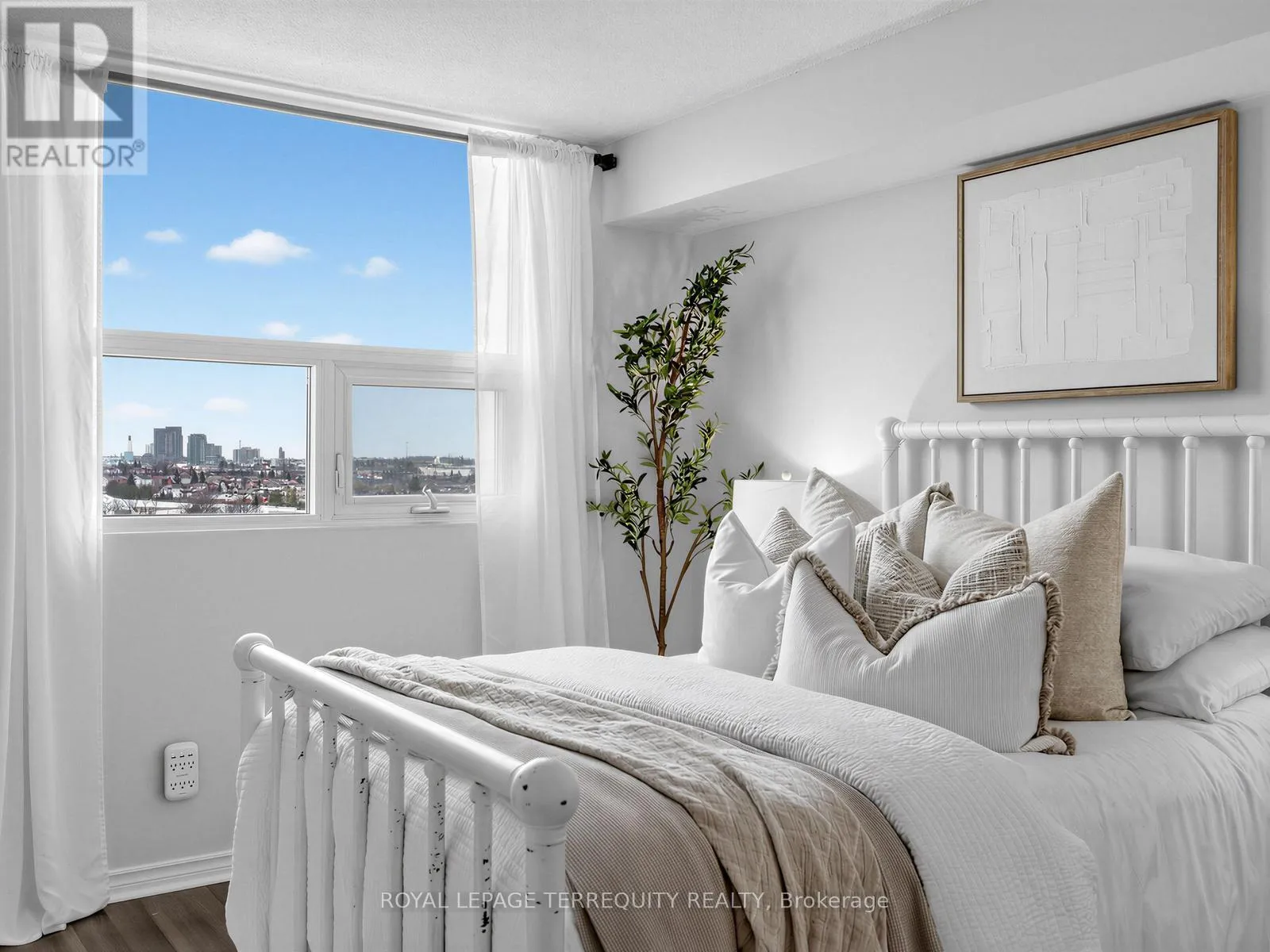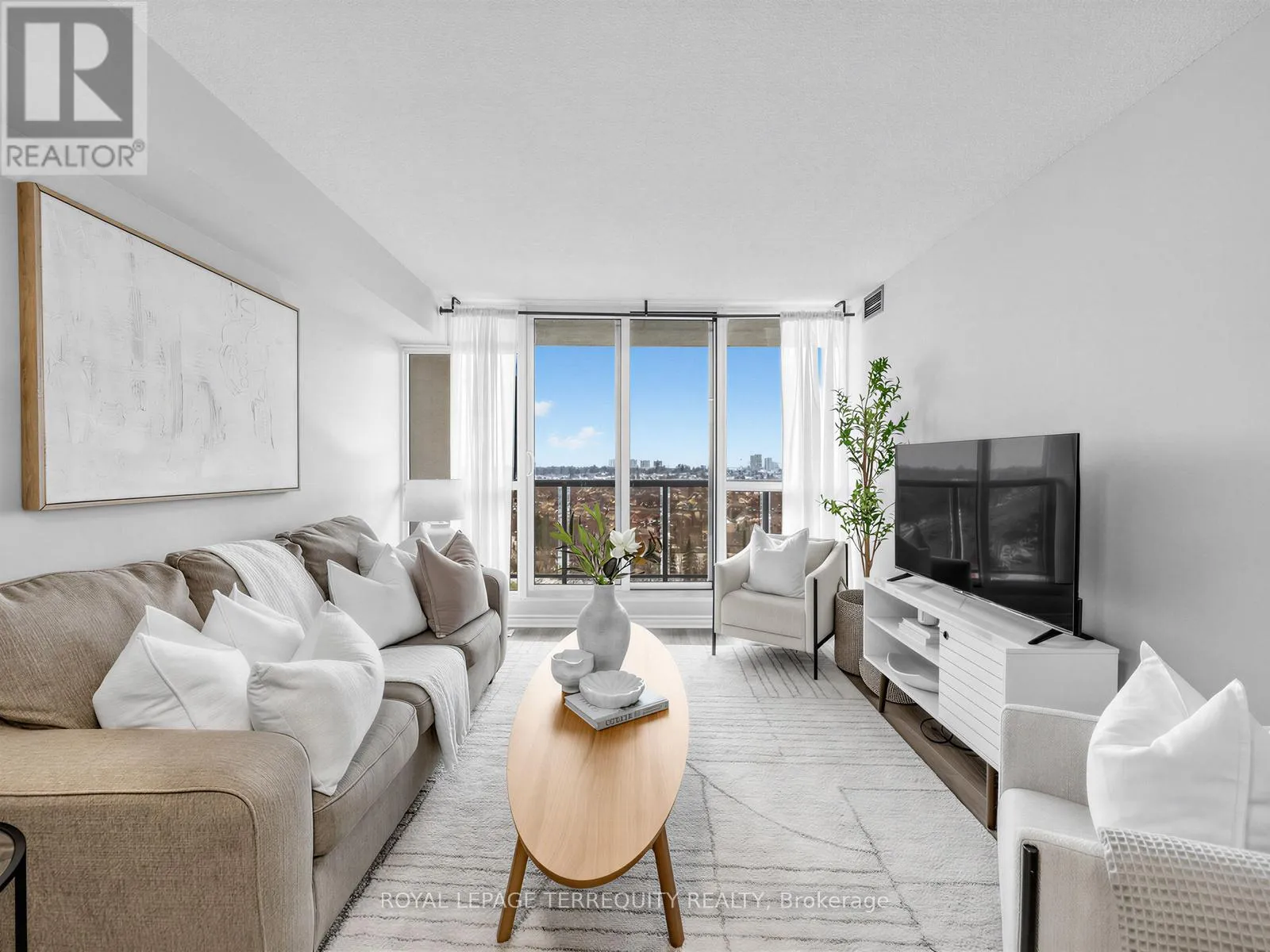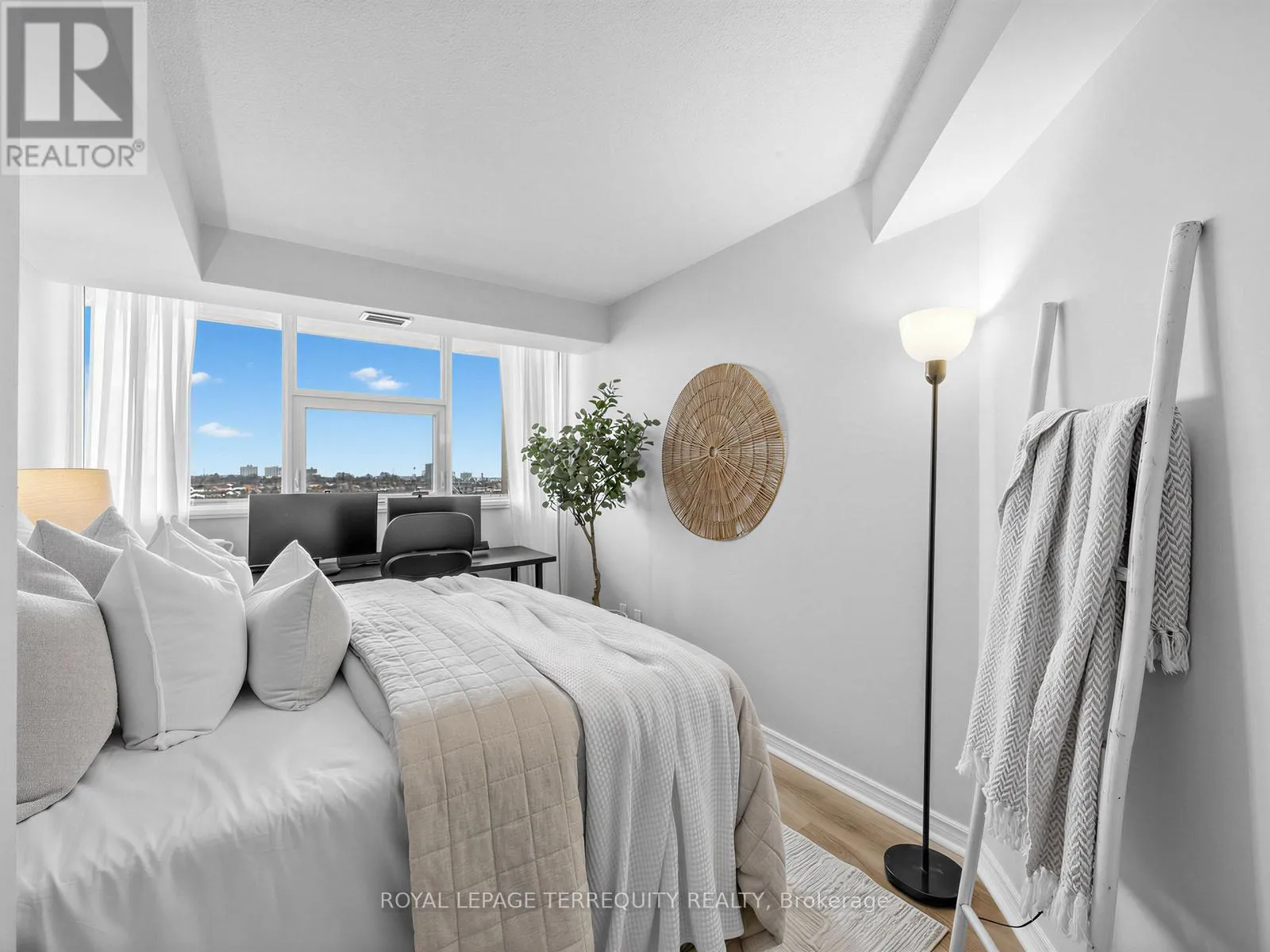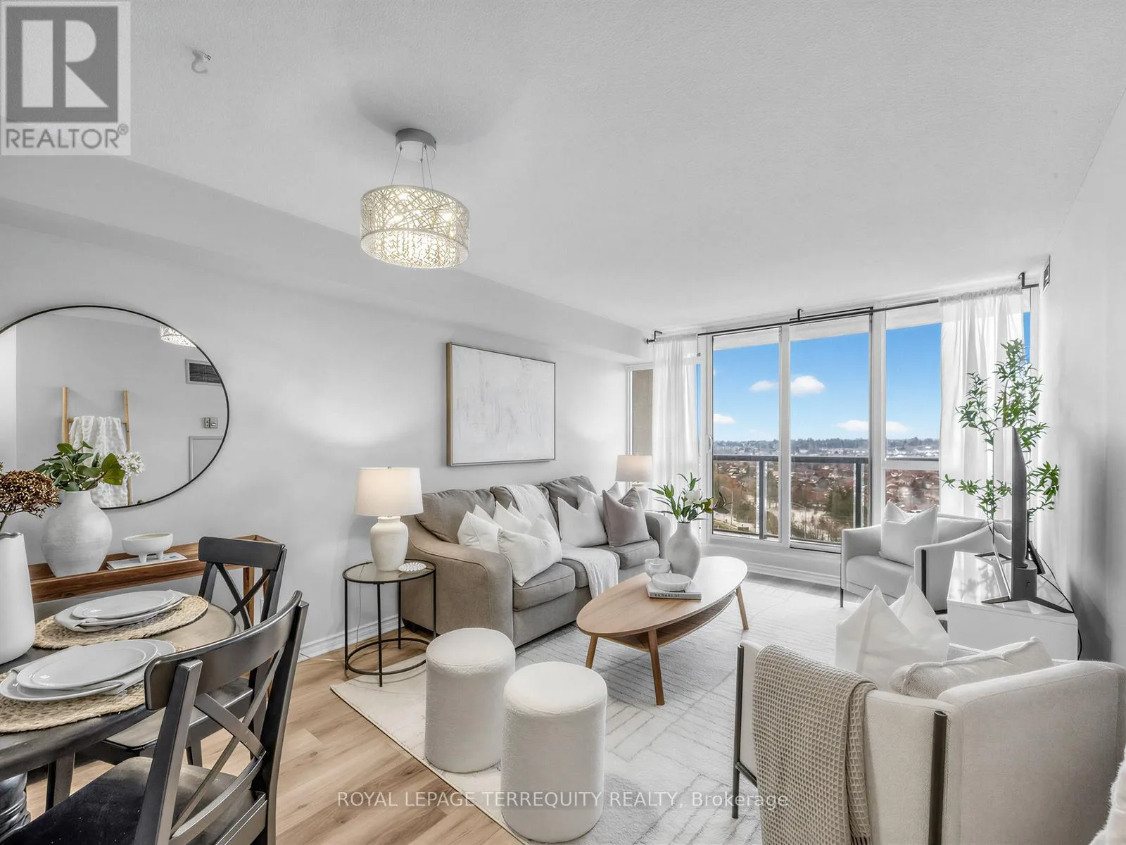 Cross Streets: Westney Rd / Kingston Rd. ** Directions: North West Corner. 2 parking spots! 2 bedroom 2 full bathroom (with ensuite and walk in closet). A flowing floorplan with wall to wall windows (2022) & updated patio door leading to extensive oversized balcony overlooking the city and views of the lake in the distance! Flooring 2023. Freshly painted 2026 ready for you to move right in! Great closet space and ensuite laundry room with space for extra storage. Enjoy the pool, sauna, and gym. Utilities included in condo fee. This unit has 2 parking (side by side) and a locker also. Walk to shopping, restaurants, transit, close to GO TRAIN, 401, 407, The Lake and Greenwood Conservation Area. WELCOME HOME! Condo living at its best! (id:27476)