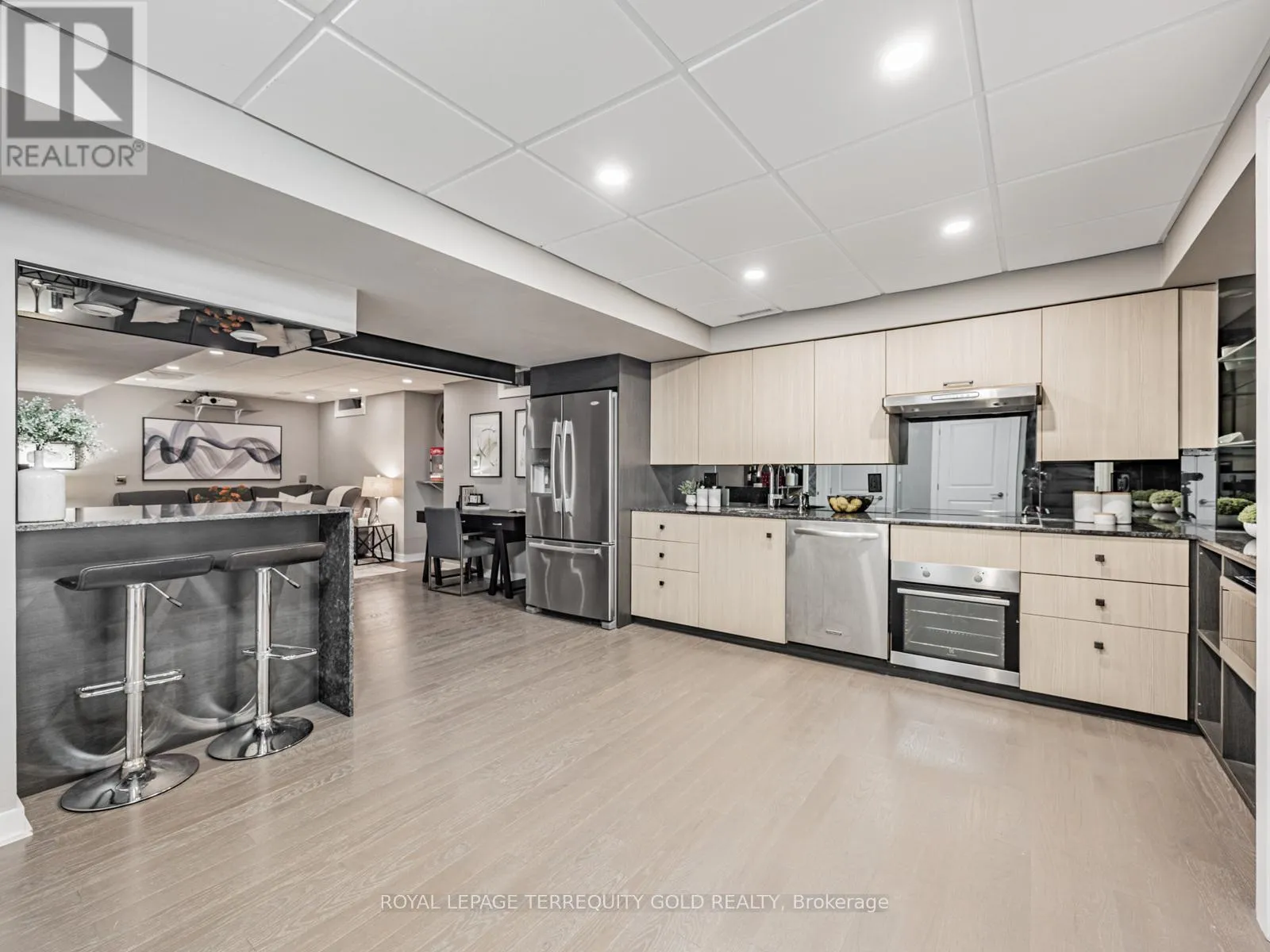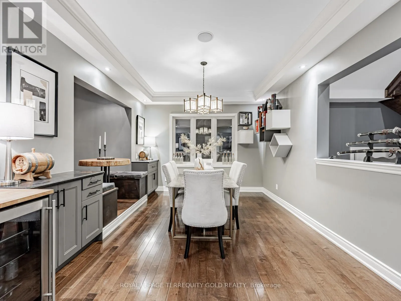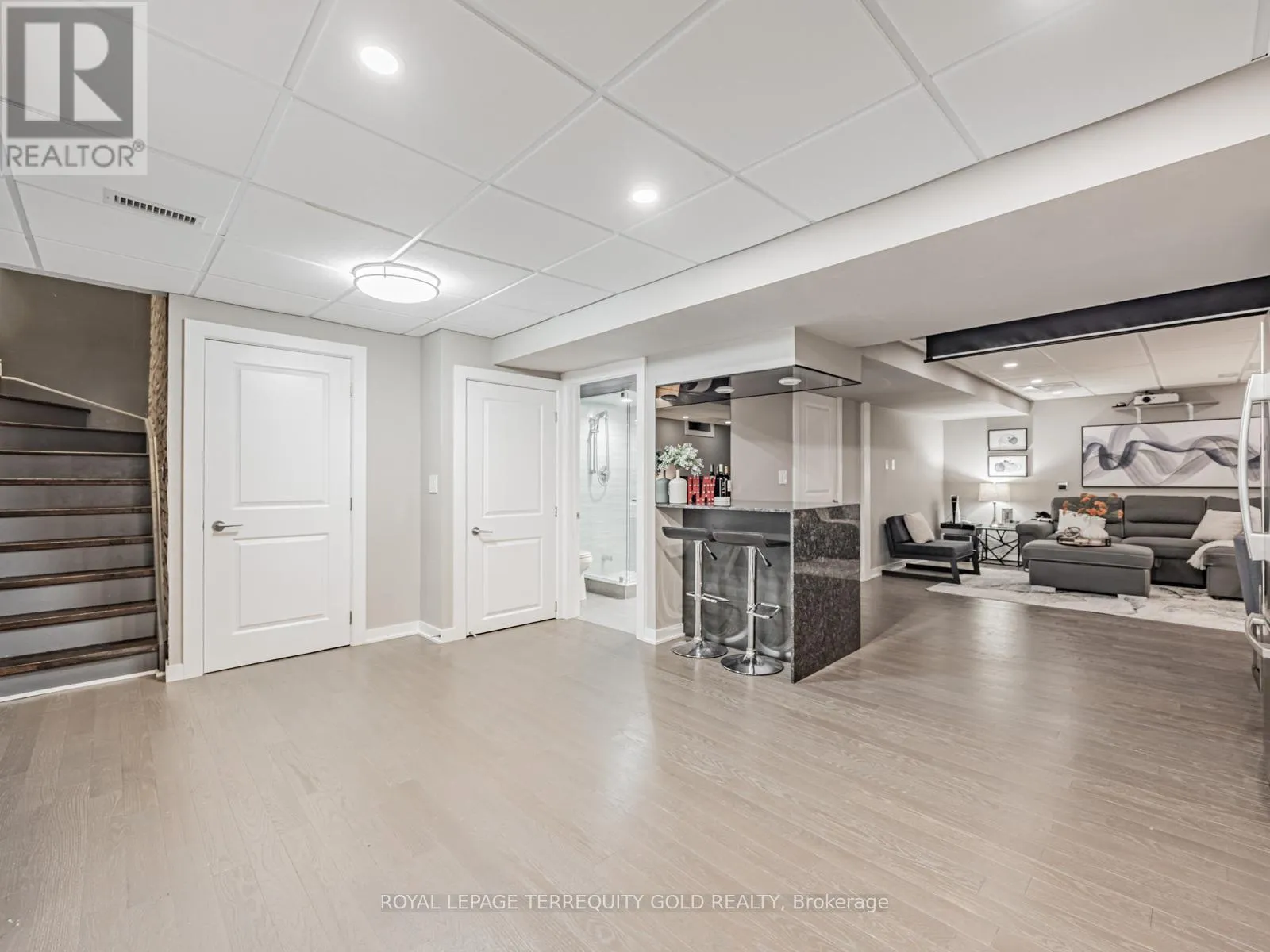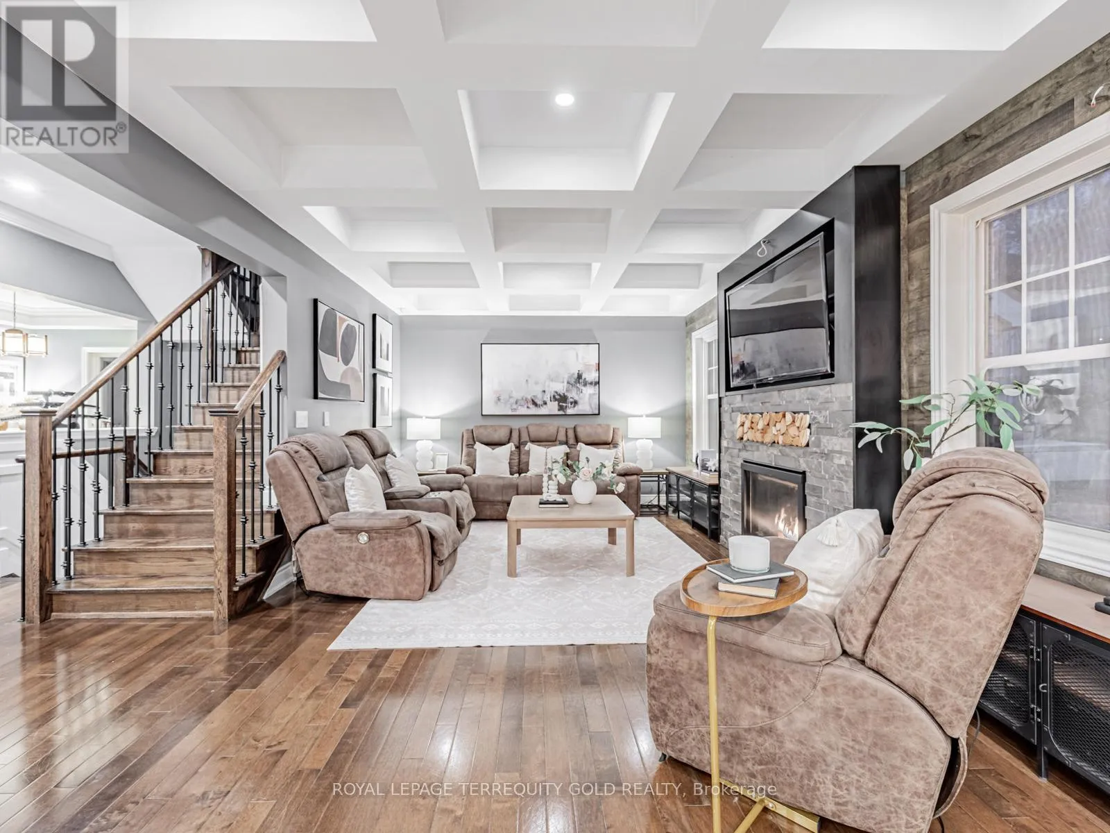 HarwoodAveSandBayly StE Welcome to 66 Rideout in Ajax - a home that truly has it all. This beautifully upgraded property blends comfort, style, and functionality in every corner. The heart of the home is the stunning kitchen, featuring full-size cabinetry, stone and panelled backsplash, stone countertops, and an oversized breakfast bar ideal for cozy family dinners or effortless entertaining. The dining room offers custom built-in seating with a dining table perfect for hosting formal gatherings. The family room is warm and inviting with its waffle ceiling, encased gas fireplace feature wall, and elegant panelled finishes. Gleaming dark hardwood floors flow throughout the main living spaces, and a dedicated home office with custom built-ins makes working from home both comfortable and inspiring. The versatile basement is an incredible bonus - complete with a full kitchen, 3-piecewashroom, and separate entrance. Use it as an in-law suite, a teen retreat, or the ultimate movie-night hangout with its built-in projector screen. Upstairs, you'll find four spacious bedrooms, including a primary suite with an ensuite that will be the envy of the neighbourhood. The convenience of a second-floor laundry room makes daily routines a breeze. Located in a warm and welcoming community with an excellent walk score, you're just steps from grocery stores, LCBO, banks, restaurants, dog park, splash pad, pickle ball courts and quick access to Highway 401. This neighbourhood is full of charm - a place where families thrive and pride of ownership shines. (id:27476)