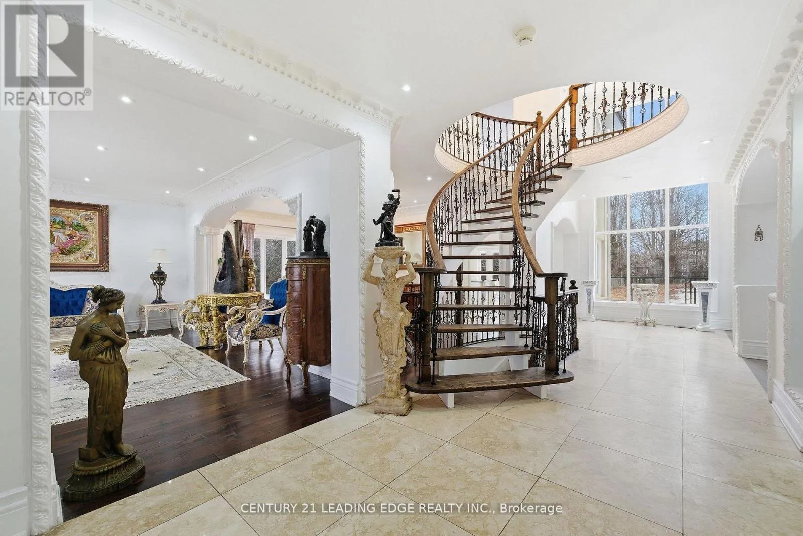 Brock Road/Rossland Prime location! Commanding an enviable position on a prestigious, multi-million-dollar court, 10 Bunting Court delivers a rare blend of estate-style living and urban convenience, set on nearly two acres in the heart of the city. Tucked away in a private enclave yet moments to top-tier schools, shopping, everyday amenities, and seamless access to Highways 401 and 407, this residence offers both exclusivity and ease. It boasts around 7000 sqft of living space. Crafted for elevated living and impressive entertaining, the home showcases grand principal spaces, refined architectural detailing, and a statement wood-and-iron staircase that sets the tone throughout. The layout includes 5+1 generously sized bedrooms with the fifth bedroom currently styled as a luxurious walk-in dressing room, easily converted back if desired, along with five beautifully finished bathrooms. The lower level is thoughtfully designed with expansive recreational space and a private nanny suite, accessed by dual staircases. Two fireplaces exist within the home and may be restored to working condition. Outside, the grounds unfold as a resort-like retreat with professionally curated landscaping, illuminated stone columns, mature trees, sculptural accents, paved lounging areas, And An Impressive Collection Of Fruit-Bearing Trees Including Cherry And Plums. A newer circular driveway creates an impressive arrival, complemented by a natural stone exterior that harmonizes with its surroundings. Serviced by municipal water and septic, this remarkable property offers privacy, scale, and sophistication in one of Ajax's most elite and tightly held neighbourhoods. (id:27476)