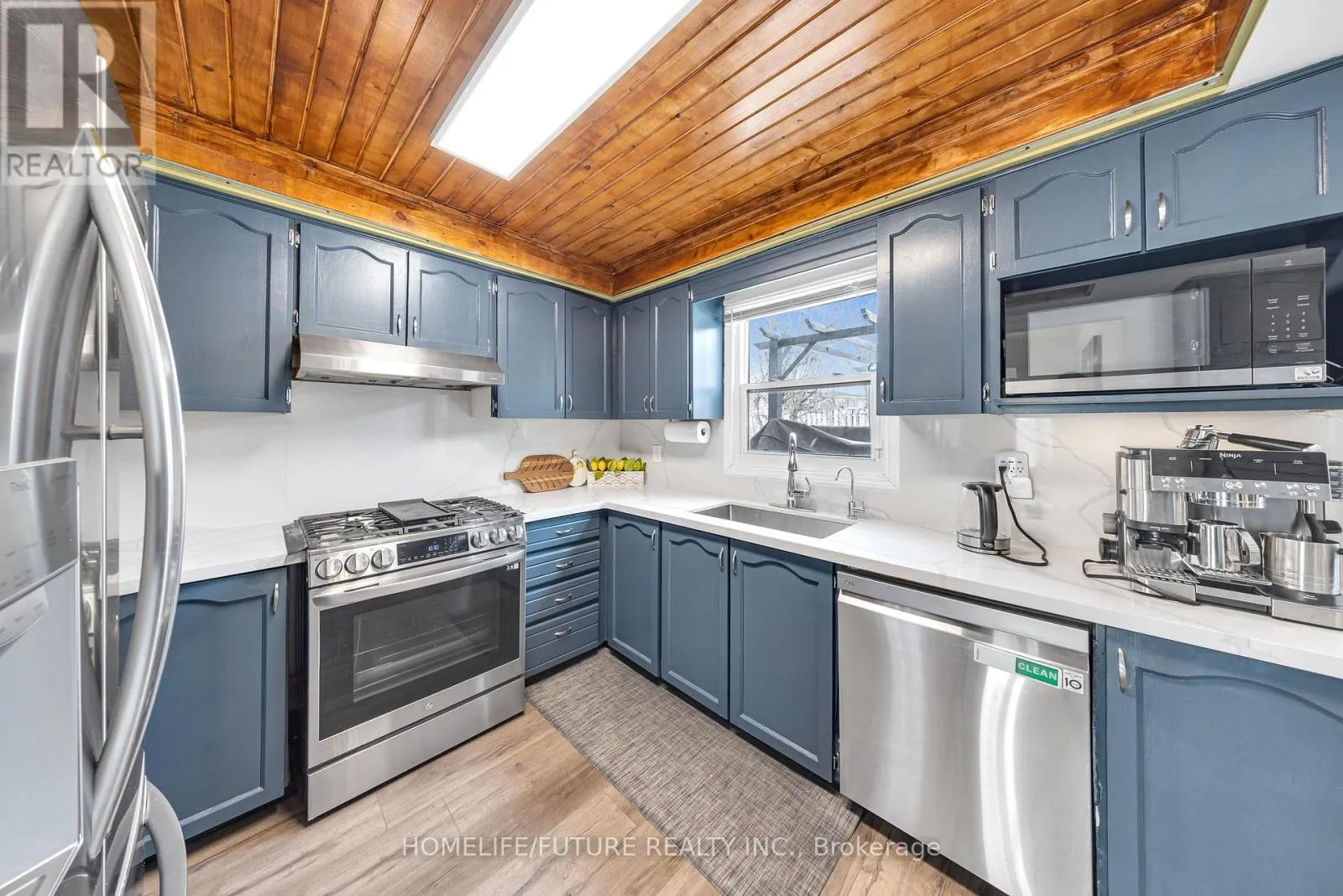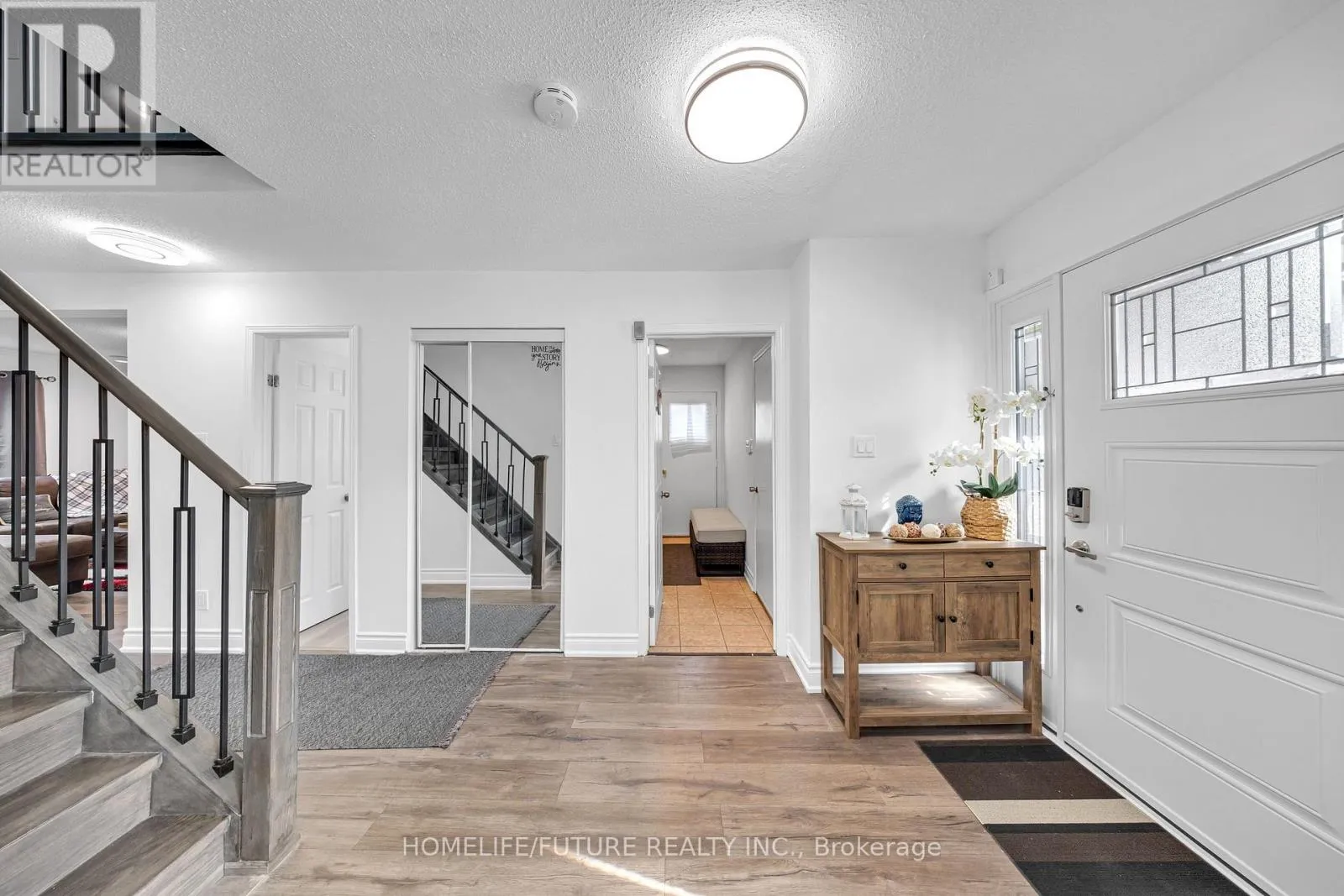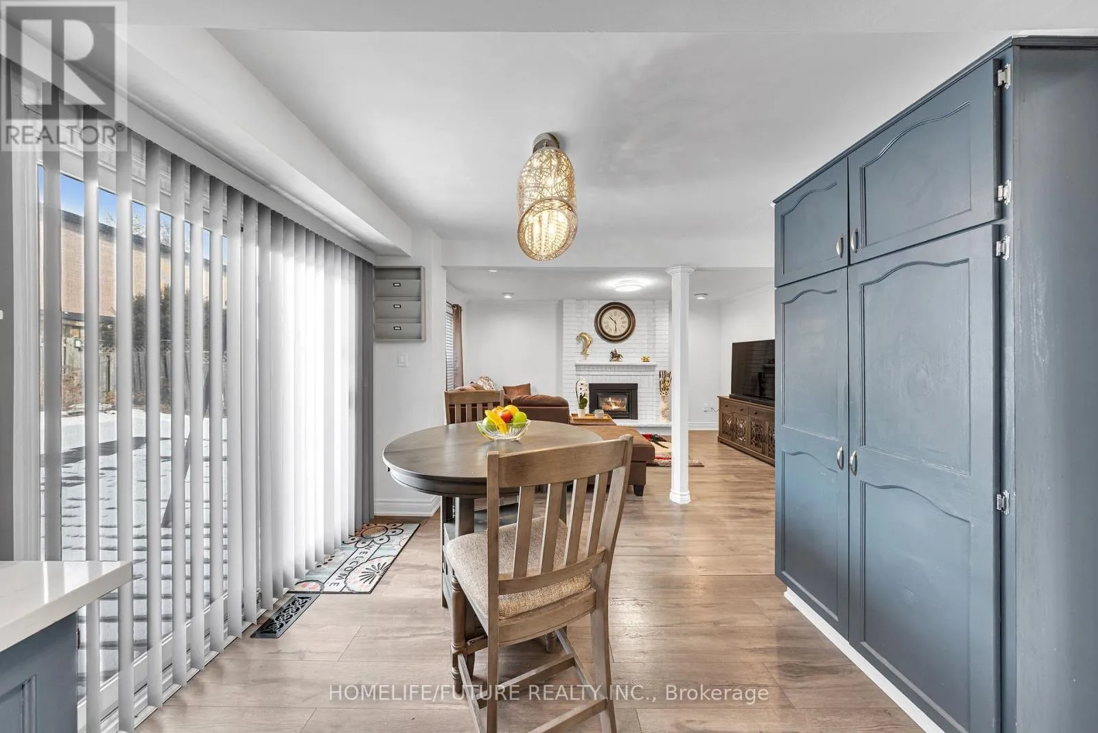 Harwood/Kingston Well-maintained 4-bedroom, 4-bathroom home with 6 parking spaces, offering plenty of room for a growing family. Bright open-concept main floor filled with natural light. Modern eat-in kitchen with quartz countertops, ample cabinets, and a large breakfast area. Cozy family room with a fireplace and a separate dining room for extra space. Upstairs features spacious bedrooms with good privacy, including a large primary bedroom. The finished basement includes a recreation and entertainment area with a fireplace, games space, and an exercise room. Located in central Ajax, close to schools, parks, shopping, Highway 401, and public transit. No sidewalk. Move-in ready and easy to show. (id:27476)