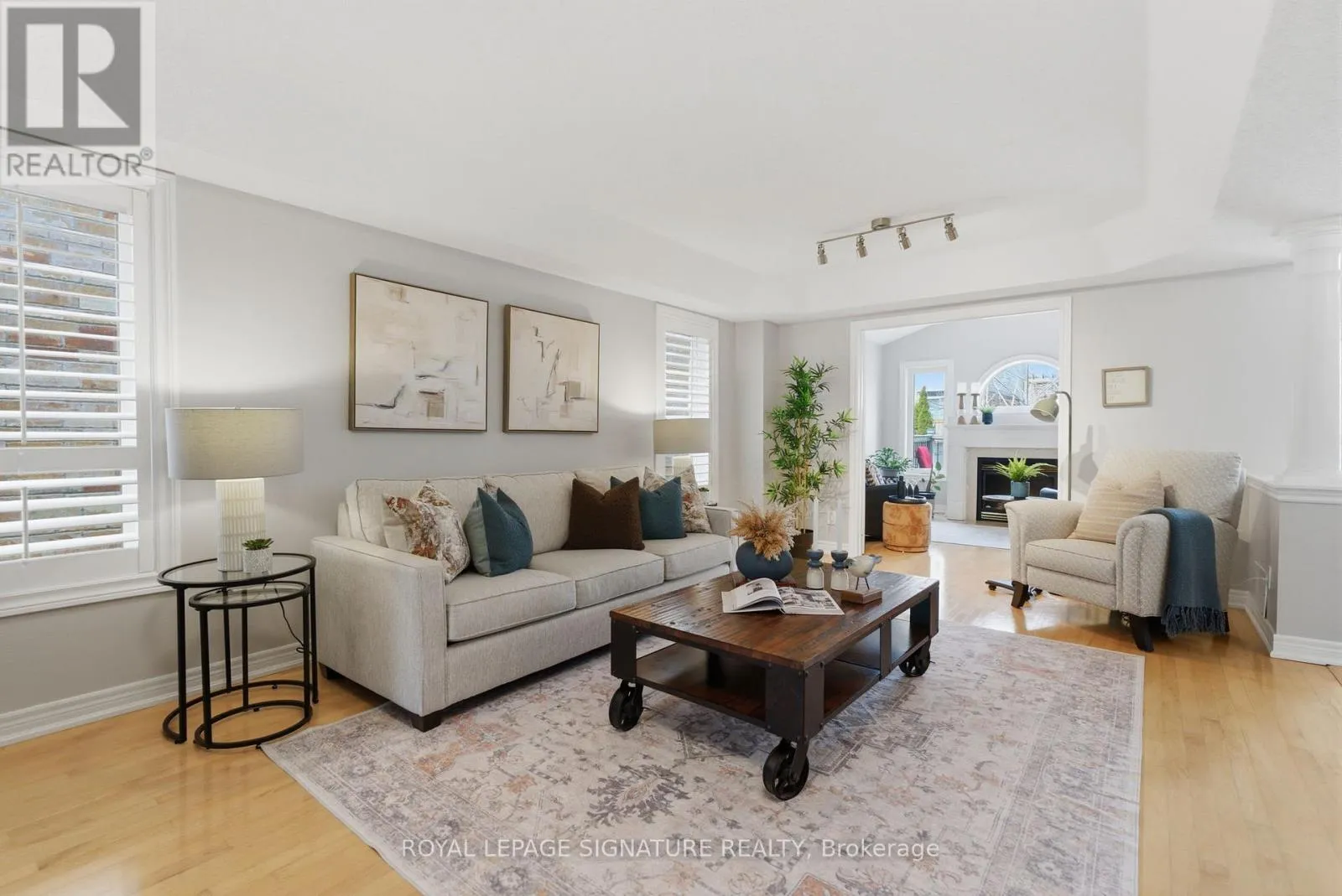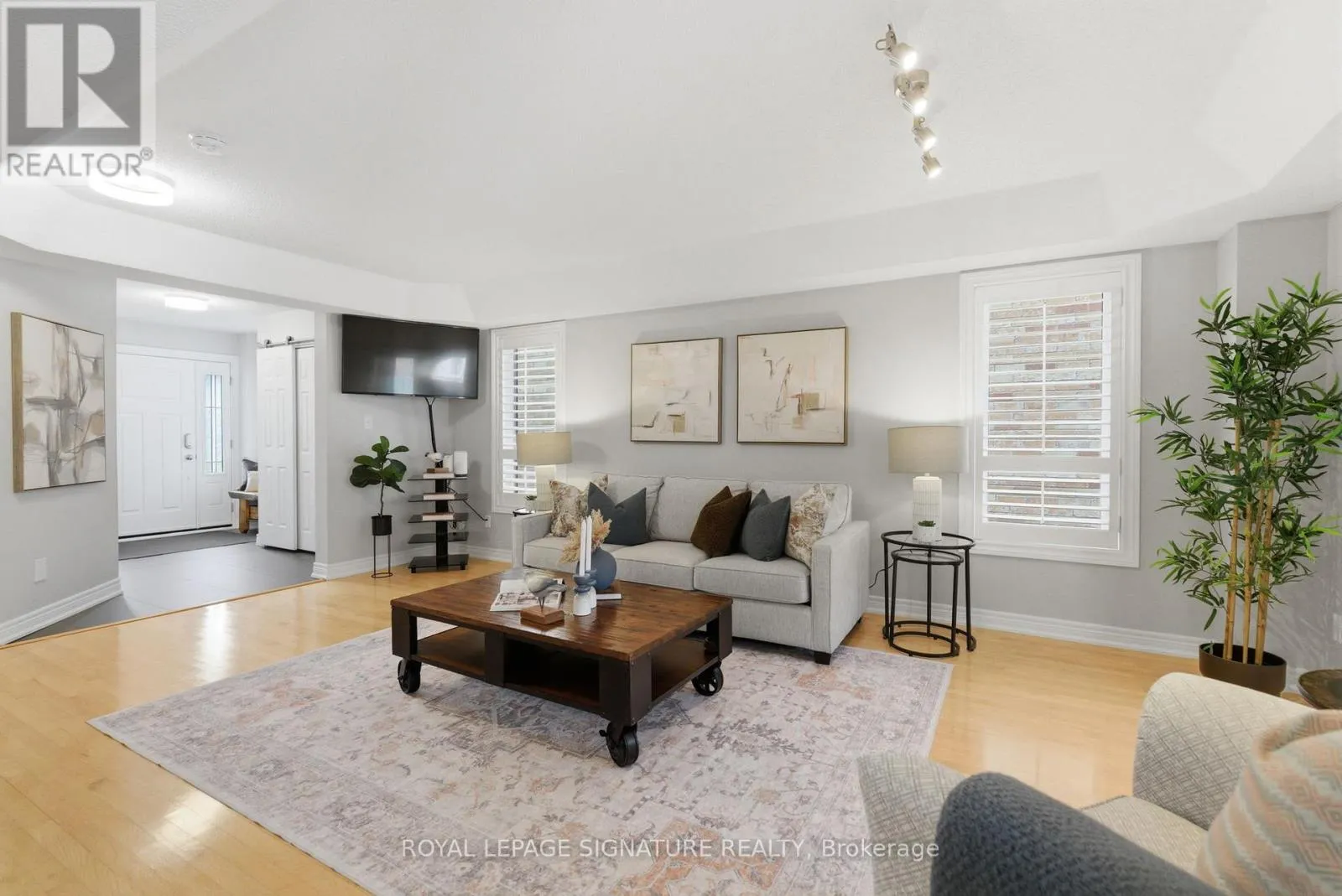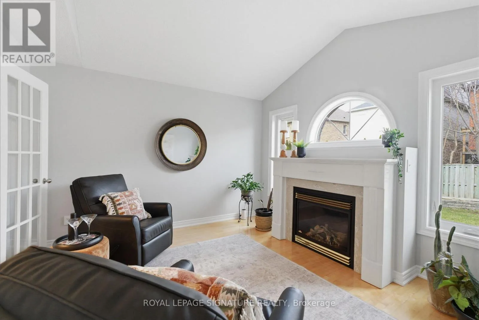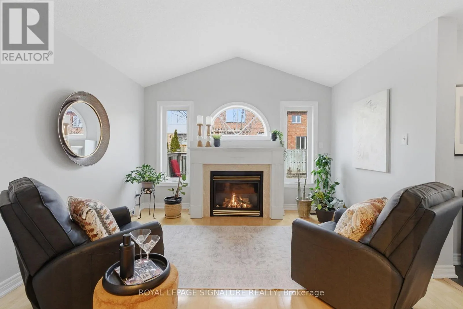 Ravenscroft & Rossland Welcome to a home where pride of ownership is immediately evident and one you'll be proud to call your own. Nestled in the established community of Northwest Ajax, this beautifully maintained residence blends thoughtful upgrades, elevated finishes, and a warm, inviting atmosphere designed for both everyday living and effortless entertaining. From the landscaped entry to the striking front door, the home makes a memorable first impression before you even step inside. Inside, the freshly painted interior features elevated entry tile, hardwood flooring, and a well-designed open-concept layout ideal for modern living. Distinct yet connected spaces offer flexibility for gathering with family, relaxing by the fireplace behind French doors, or stepping out to the private backyard for a quiet morning coffee. The kitchen is thoughtfully designed for both casual meals and entertaining, featuring quartz counters and space to gather comfortably around a table or peninsula counter. Upstairs, the spacious primary suite offers a relaxing retreat complete with a four-piece ensuite featuring a clawfoot soaker tub and a walk-in closet with built-in organizers for efficient storage. Two additional bedrooms provide flexibility for family, guests, or work-from-home needs, including one with access to a second-level balcony offering bright south-facing light and refreshing breezes. The finished basement adds valuable living space, ideal for a recreation room, home office, gym, ormedia area, with potential for additional bedrooms if desired. Outside, the private backyard provides a peaceful setting for summer gatherings or quiet evenings outdoors. Additional highlights include a double-car garage with a rare epoxy floor finish and a two-car driveway.Located in a well-established, mature family-friendly neighborhood close to schools, parks,everyday amenities, and places of worship. (id:27476)