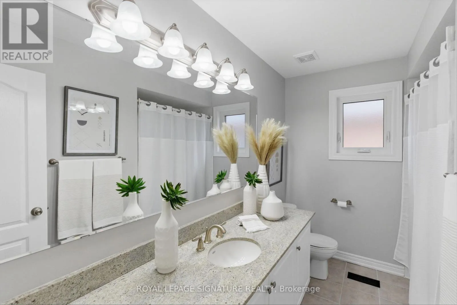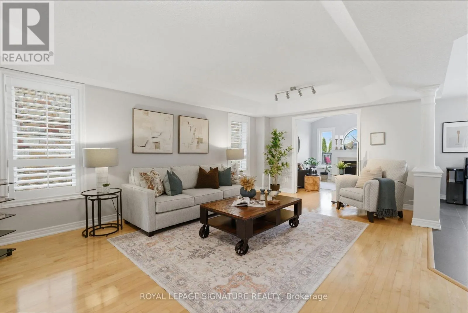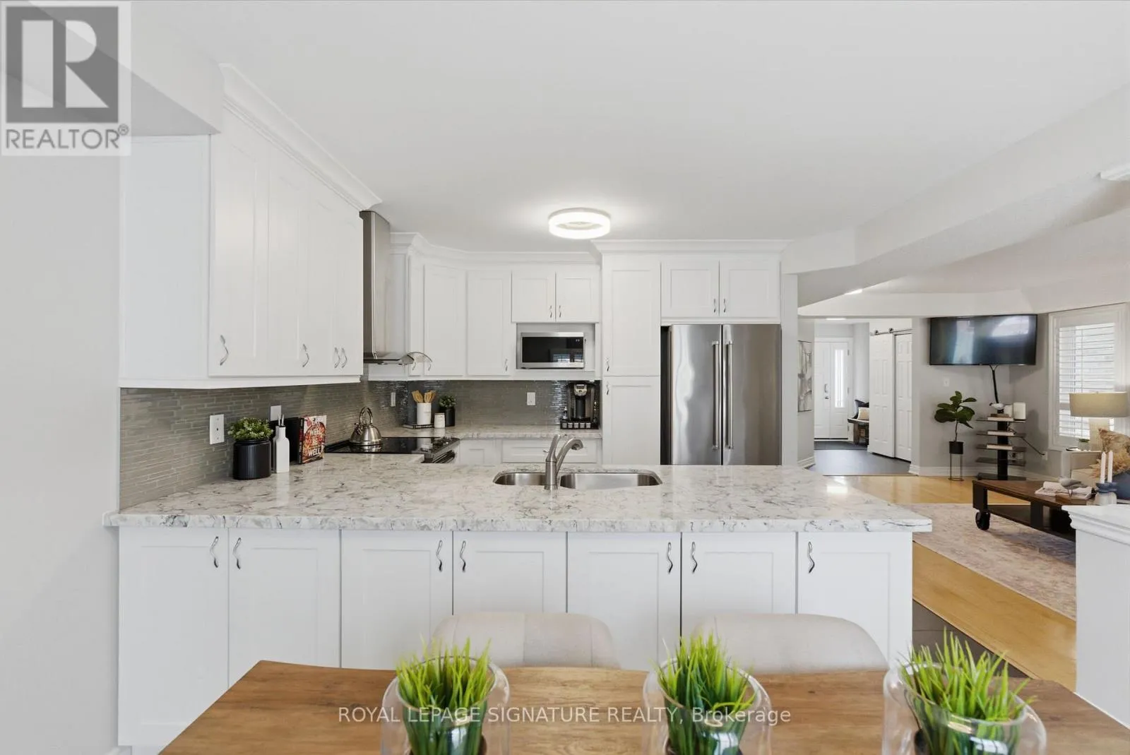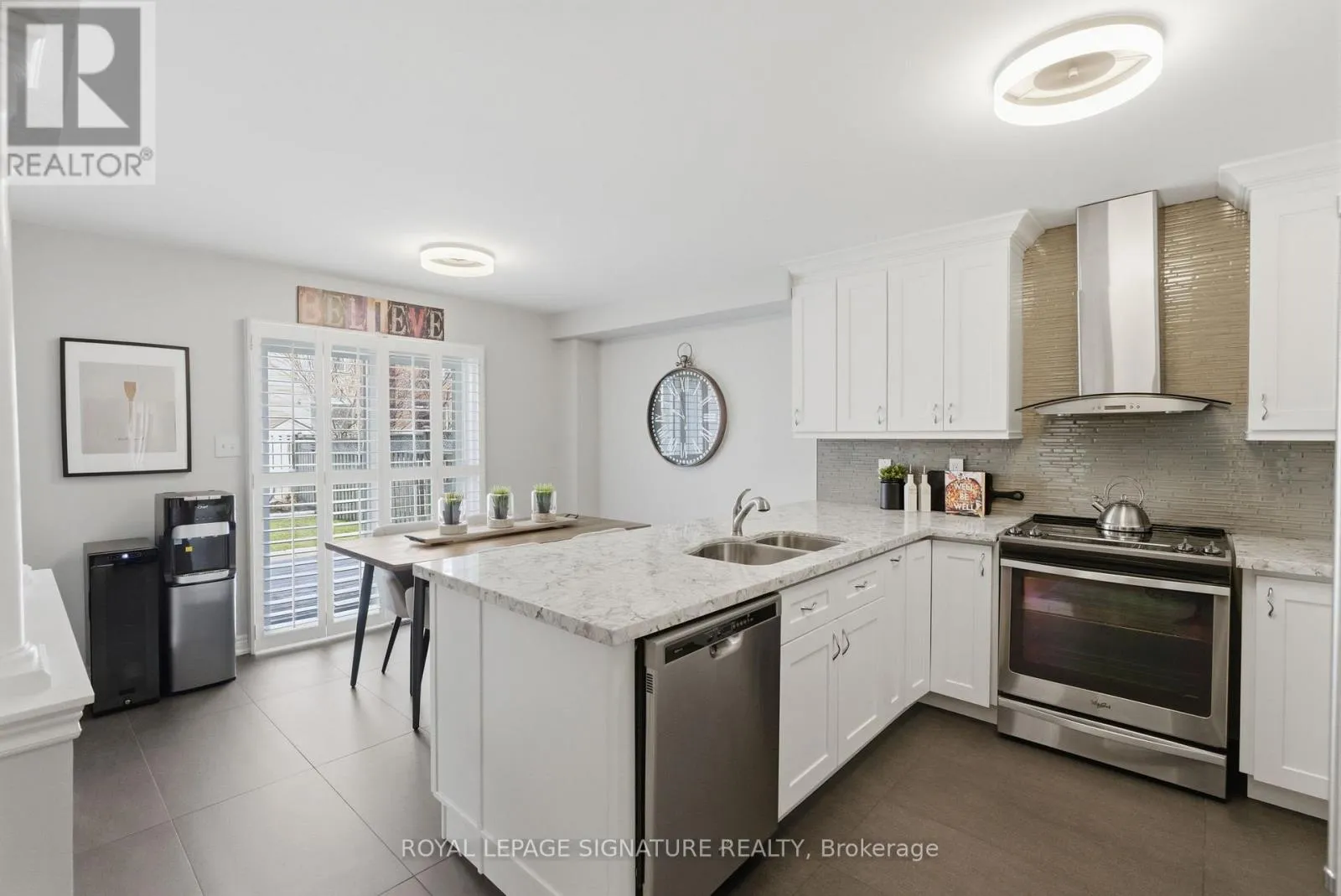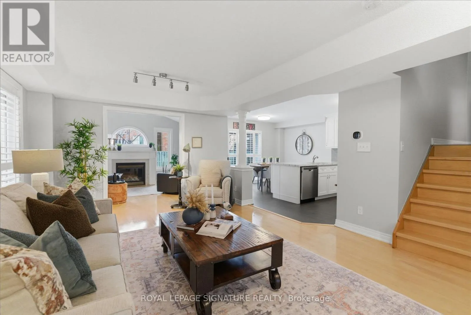 Ravenscroft & Rossland Welcome to a home where pride of ownership is immediately evident and one you'll be proud to call your own. Nestled in the established community of Northwest Ajax, this beautifully maintained residence blends thoughtful upgrades, elevated finishes, and a warm, inviting atmosphere designed for both everyday living and effortless entertaining. From the landscaped entry to the striking front door, the home makes a memorable first impression before you even step inside. Inside, the freshly painted interior features elevated entry tile, hardwood flooring, and a well-designed open-concept layout ideal for modern living. Distinct yet connected spaces offer flexibility for gathering with family, relaxing by the fireplace behind French doors, or stepping out to the private backyard for a quiet morning coffee. The kitchen is thoughtfully designed for both casual meals and entertaining, featuring quartz counters and space to gather comfortably around a table or peninsula counter. Upstairs, the spacious primary suite offers a relaxing retreat complete with a four-piece ensuite featuring a clawfoot soaker tub and a walk-in closet with built-in organizers for efficient storage. Two additional bedrooms provide flexibility for family, guests, or work-from-home needs, including one with access to a second-level balcony offering bright south-facing light and refreshing breezes. The finished basement adds valuable living space, ideal for a recreation room, home office, gym, ormedia area, with potential for additional bedrooms if desired. Outside, the private backyard provides a peaceful setting for summer gatherings or quiet evenings outdoors. Additional highlights include a double-car garage with a rare epoxy floor finish and a two-car driveway.Located in a well-established, mature family-friendly neighborhood close to schools, parks,everyday amenities, and places of worship. (id:27476)
