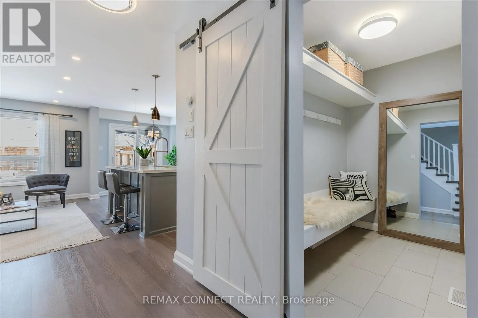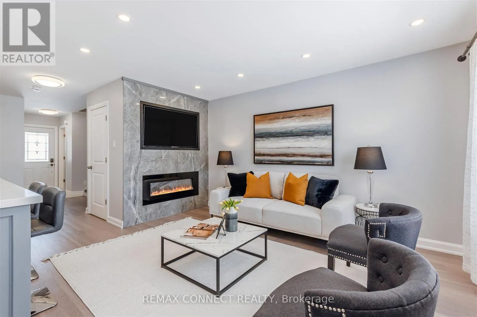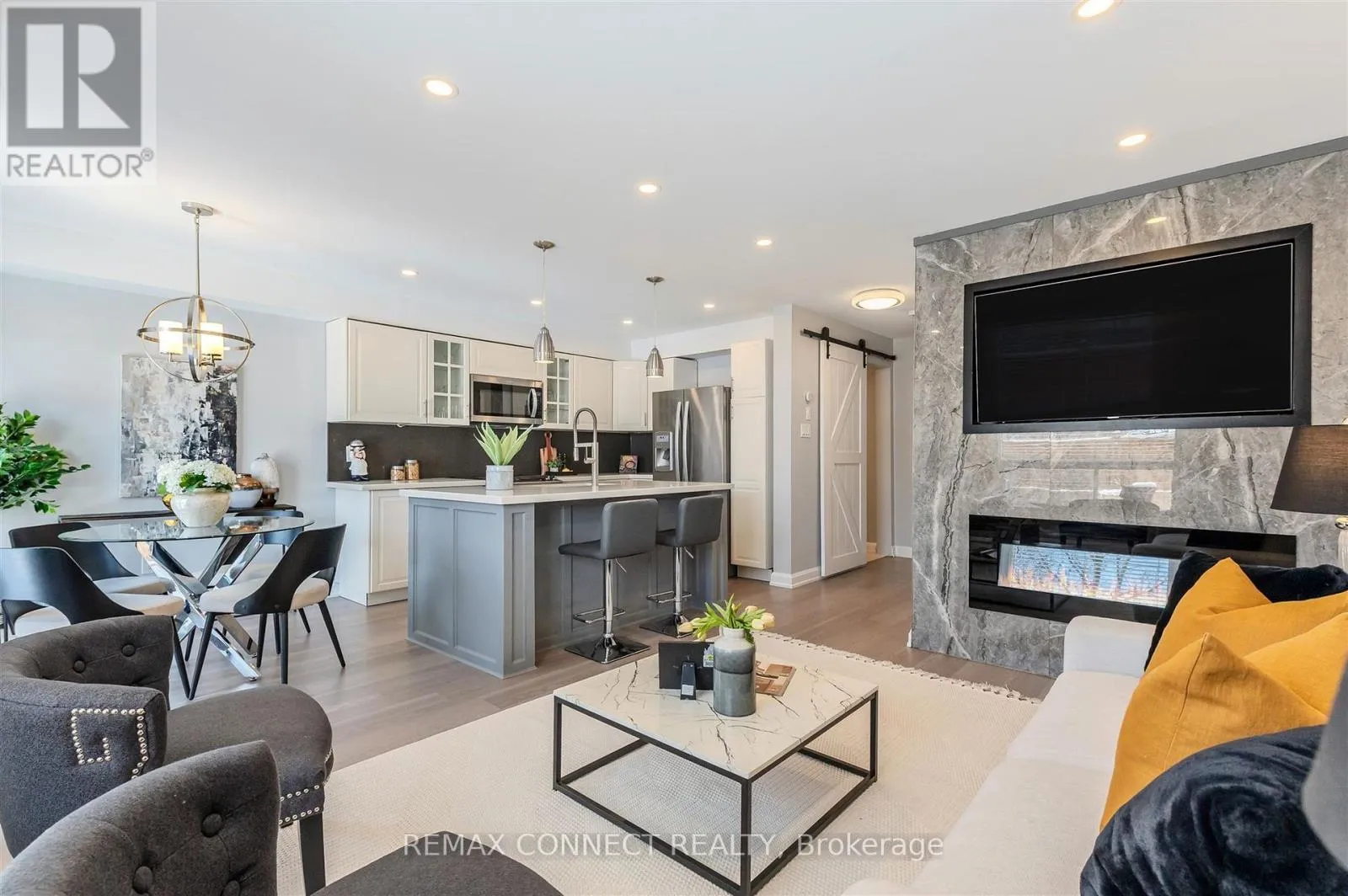 Cross Streets: Rossland Rd W and Ravenscroft. ** Directions: N of Rossland and W of Ravenscroft. Welcome to this beautiful 3 bedroom completely upgraded home, nestled in a quiet corner of Ajax, with lovely private yard and parking for 3. Main floor has a stunning open concept renovation including quartz centre island quartz counters, and quartz backsplash. Large living room window allows sunshine to flood main floor adding warmth and comfort. Living room has floor to ceiling stone feature wall with built-in fireplace and built-in tv (included). Double sliding door from dining room walks out to large deck and fully fenced and private yard. No neighbours behind you. New professionally finished basement is comfortable, and adds extra square footage for family gatherings and play area for children. Loads of storage, plus a perfect little office nook. Master bedroom has walk-in closet and full ensuite bath. Upgrades and Renos include, newer KITCHEN, newer BATHS, NEW ROOF 2024, added insulation 2024, NEW SLIDING GLASS DOOR to yard 2021, NEW SECOND FLOOR BEDROOM WINDOWS 2024, NEW AIR CONDITIONER 2022, new automatic garage door opener 2025, garage access through mudroom. NEW PLANK FLOORING throughout main floor in 2026. This home is perfect, nothing to upgrade. Definitely ready to move in, enjoy, and make it your home. (id:27476)