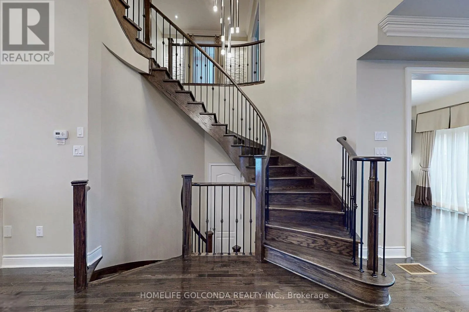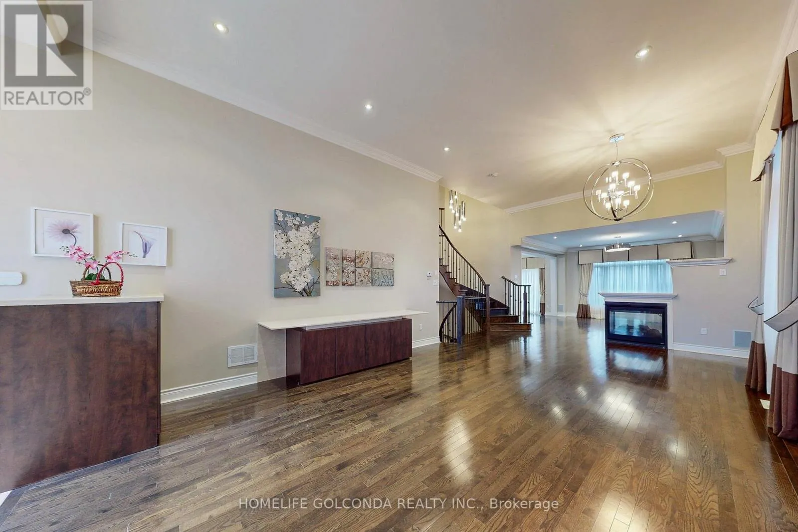 Cross Streets: Audley & Rushworth. ** Directions: Direct Access Through Bellotti. Welcome To This Stunning, Meticulously Maintained Executive Home Offering Over 3,000 Sq. Ft. Of Elegant Living Space! Featuring 4+1 Spacious Bedrooms And 5 Beautifully Appointed Bathrooms, This Home Showcases Premium Hardwood Flooring Throughout The Main And Second Levels. Soaring 12-Ft Ceilings In The Living And Dining Rooms Create A Grand First Impression, Complemented By A Striking Three-Way Fireplace Seamlessly Connecting To The Family Room-Perfect For Both Entertaining And Everyday Living.An Upgraded Spiral Staircase With Wrought Iron Pickets Adds Architectural Sophistication, Leading To A Bright Second-Level Gallery With Impressive 11-Ft Ceilings, Also Featured In The Luxurious Primary Retreat. Generously Sized Bedrooms Include Two With His-And-Hers Walk-In Closets, While One Offers Custom Built-In Bookcase Cabinetry-Ideal For A Home Office Or Study Space.Enjoy Modern Comfort With Pot Lights Throughout And All Upgraded Light Fixtures Included. The Fully Renovated Basement Expands Your Living Space And Features A Dedicated Cold Wine Storage Room-Perfect For Wine Enthusiasts.Unbeatable Location! Just Minutes To Highways 407, 412 & 401, Shopping, Grocery Stores, Audley Recreation Centre, And Top-Rated Public & Catholic Schools. A Rare Opportunity To Own A Turnkey Home That Perfectly Blends Style, Space, And Convenience! (id:27476)