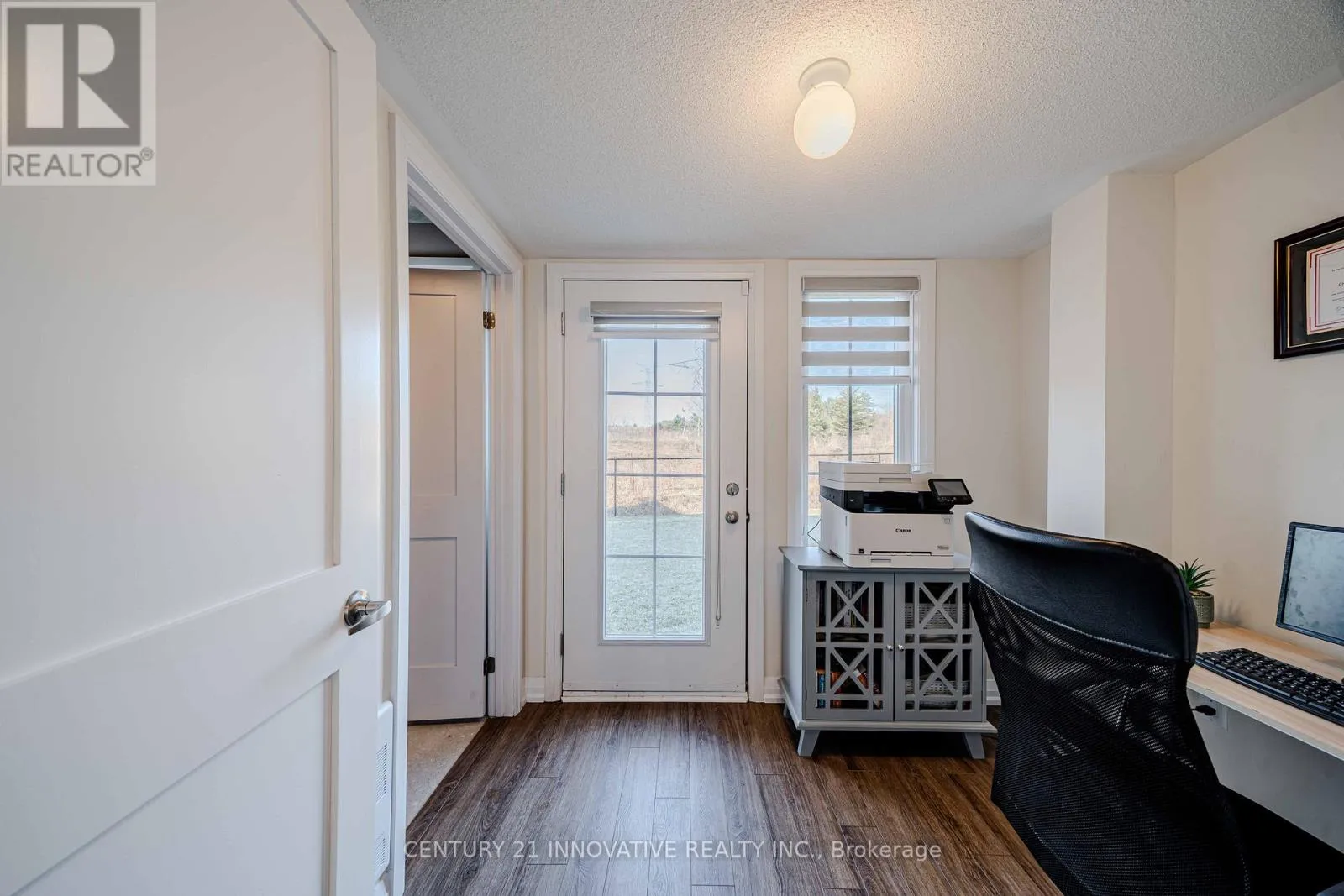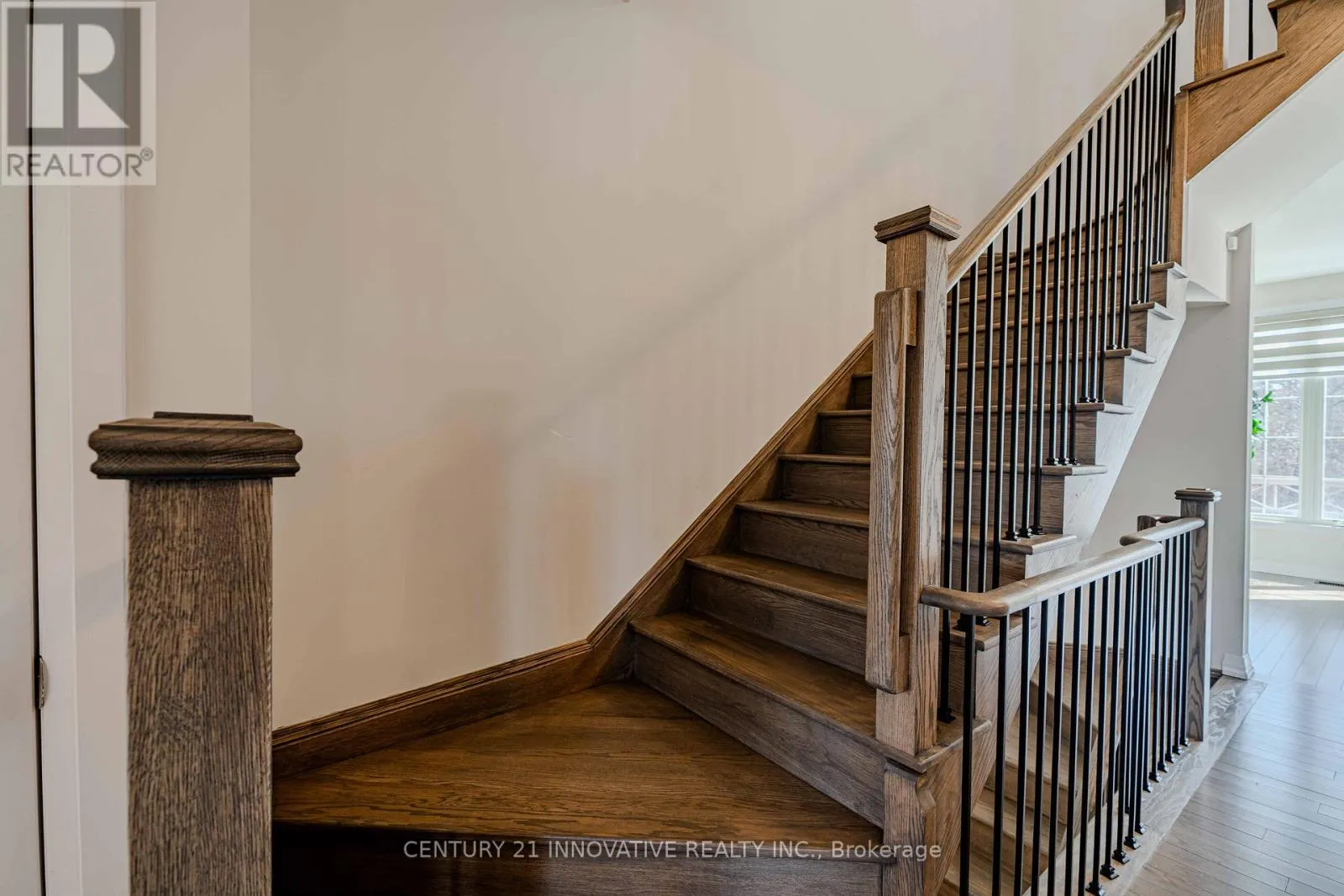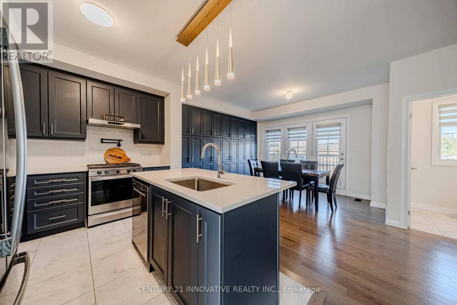 Brock Rd & Rossland Rd W Welcome to this stunning, nearly new home built in 2023, perfectly situated on a quiet court in Ajax! Backing onto a tranquil greenbelt and pond with no homes behind, this home offers exceptional privacy and picturesque views. Featuring 3 spacious bedrooms and 4 washrooms, including two full baths and two powder rooms, it is thoughtfully designed for modern family living. Step inside to a bright, open-concept layout with large windows throughout, filling the home with natural light and complemented by upgraded zebra blinds. A private den/office with a custom door provides the ideal space for a home office or quiet retreat. Elegant finishes include hardwood flooring in the living and dining areas and upgraded vinyl flooring in the den/office and hallway. The chef-inspired kitchen features upgraded cabinetry, a large undermount sink with prep area, stylish backsplash, gas line for a range, pot filler, slide-in stove configuration, and an expansive pantry. A microwave shelf, garbage drawer, and broom closet add everyday convenience. Both the dining area and the primary suite offer walkout to spacious balconies, Upstairs, generously sized bedrooms include upgraded undermount sinks in both the primary and guest bathrooms. The Master Ensuite includes an upgraded glass shower door and double sink. The home also offers ample storage and enhanced electrical features, including an EV plug, dedicated freezer circuit, and Cat5e, Cat6, and RD6 wiring. The family room features a beautiful fireplace with a custom mantel. Additional highlights include metal pickets, modern lighting/light fixtures, and a large driveway with no sidewalk. Ideally located close to parks, schools, shopping, and major amenities, this exceptional home offers a perfect blend of luxury, comfort, and privacy in a desirable family-friendly neighbourhood. (id:27476)