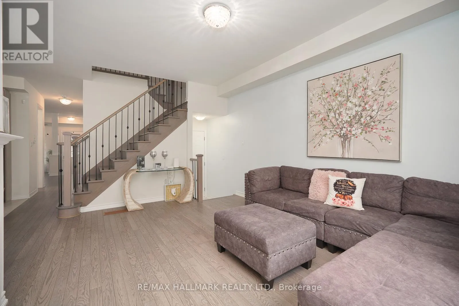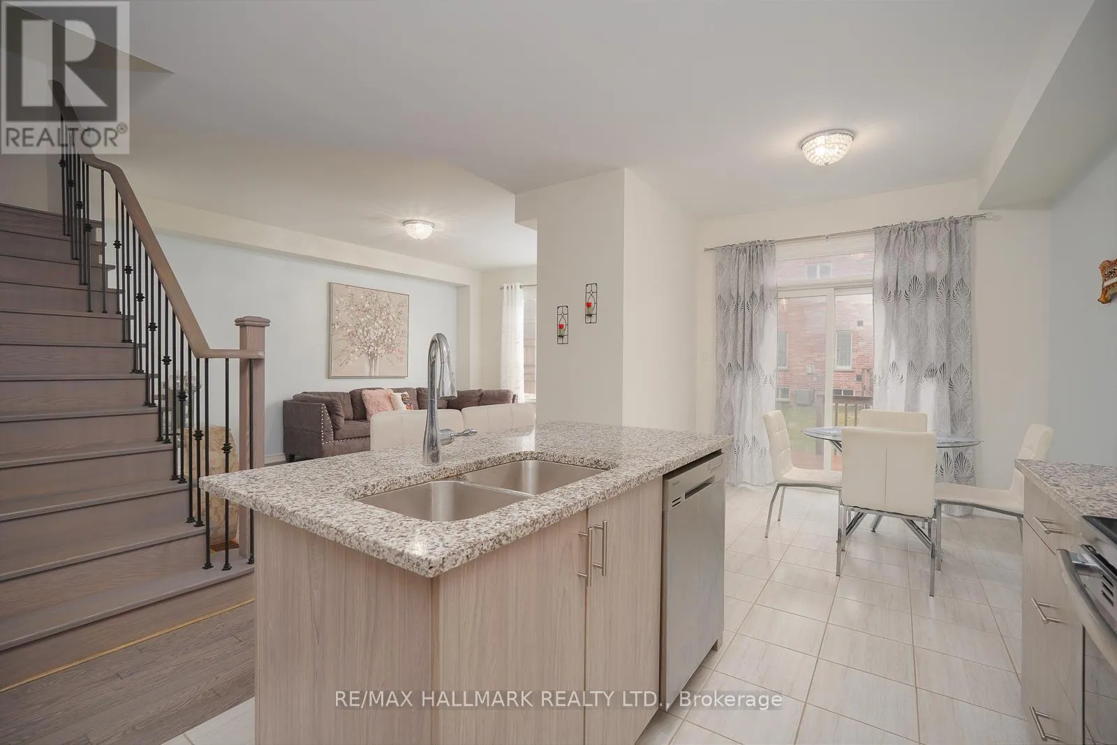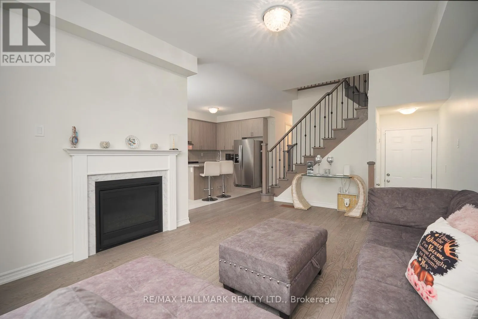 Cross Streets: Church St/ Rossland Rd W. ** Directions: Church St / Rossland Rd W. Beautiful brick and stone townhome nestled in a safe, family-oriented neighborhood in North Ajax. This inviting home features a charming covered front porch and a thoughtfully designed layout with 3 spacious bedrooms and 3 bathrooms. The bright and spacious main floor offers a welcoming living room with a cozy gas fireplace and a comfortable family area, creating the perfect space for both everyday living and entertaining. The modern, family-sized kitchen features granite countertops, stainless steel appliances, a center island, and a sun-filled breakfast area with a walkout to the backyard deck-ideal for outdoor dining and relaxing. Hardwood flooring throughout the main floor adds warmth and elegance to the space. Upstairs, the king-sized primary bedroom includes a walk-in closet and a luxurious 5-piece ensuite complete with a glass shower. Enjoy the spacious backyard with a wood deck, perfect for hosting family and friends. The unfinished basement offers excellent potential to customize to your needs. Ideally located in desirable North Ajax, close to schools, parks, playgrounds, shopping, and transit, making it a wonderful place to call home! (id:27476)