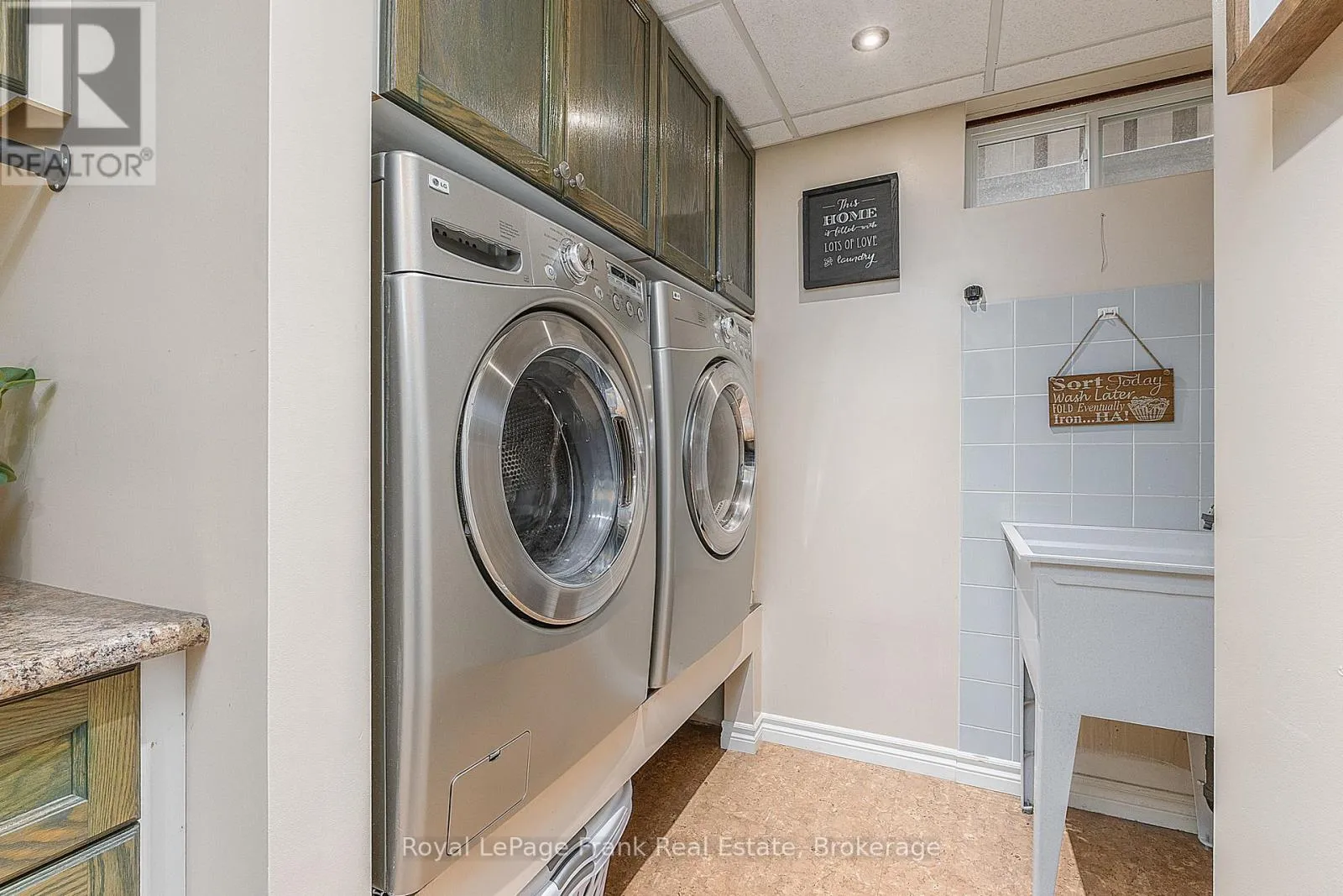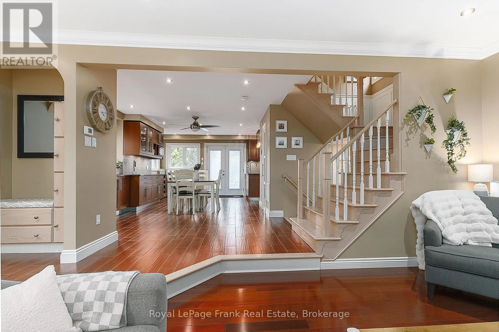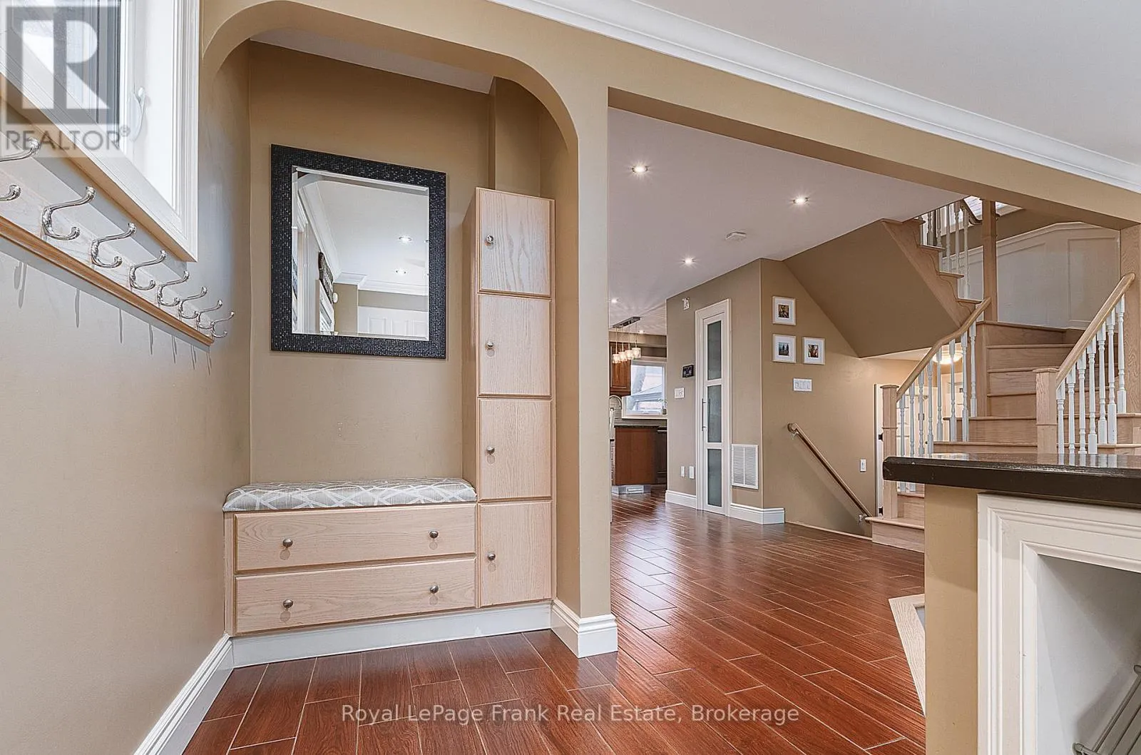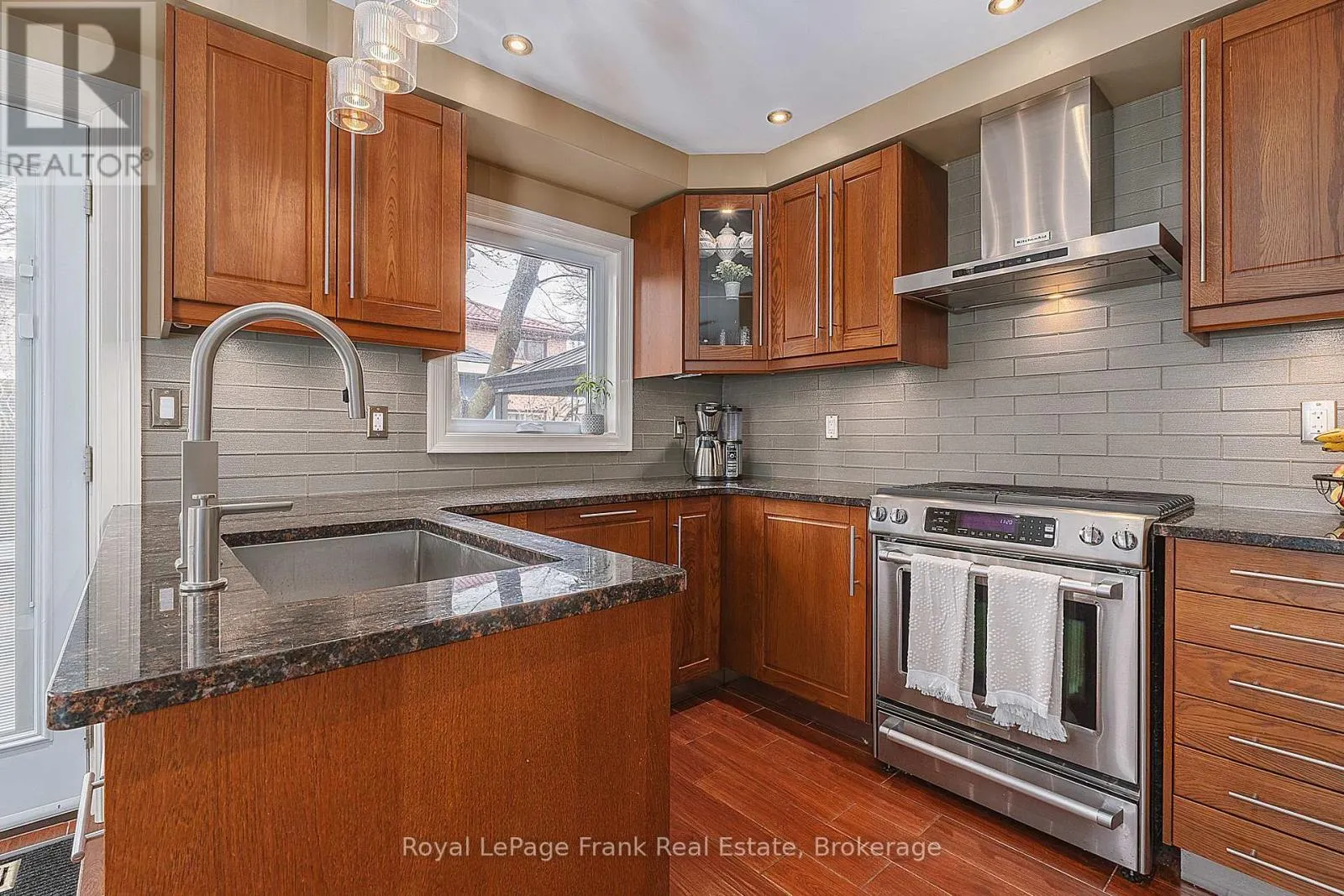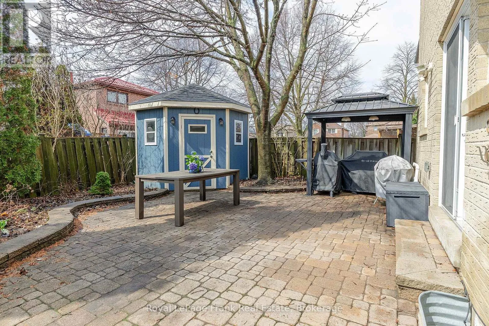 Ravenscroft and Westney This is the home you have been waiting for. Fully hardwired for Networking. 100amp service, Custom baseboards & trim work throughout. Notched area under floor to keep mats from shifting.Custom shoe rack with heat vents installed to dry shoes, Front hall cubby hole/bench style built in storage, kick plate for central vac. Upgraded kitchen sockets include USB port for easy charging. All light switches upgraded to Decora switches. French style patio doors with integrated blinds. Hidden storage upstairs landing perfect for seasonal decor etc. Fully finished basement w/pot lights & built in glass shelving unit, media area wired for 5.1 surround sound. Basement Closet has wire shelving system. Office has built in custom cabinetry & pocket door for privacy. Laundry room has custom cabinetry, folding table, detergent dispensing tower & extra storage. Irrigation system front & back yard & under soffit for baskets. Light sockets integrated into brick for Xmas lights, Custom interlocking garbage can storage at side of home and driveway cut out to keep cans upright. COMPLETE KITCHEN AND MAIN FLOOR RENO INCLUDING CENTRAL VAC 2016, GRANITE COUNTERS, GLASS BACK SPLASH ,BUILT IN WINE RACK, HUGE AMOUNTS OF CABINETRY & GRANITE COUNTERS RUNNING ALONG LENGTH OF KITCHEN, WITH ADDITIONAL PREP SINK, DRAWER STYLE GARBAGE, RECYCLE &GREEN BIN STORAGE, ROOF 2018, NEW ATTIC INSULATION2018, AIR CONDITIONER & FURNACE 2020, ALL INTERLOCKING LIFTED, WASHED AND RESEALED 2024, CASEMENT WINDOWS THROUGH OUT HOME, 2016 AND 2023, FRONT DOOR INSTALLED 2023. Outdoor shed has hydro, bbq pergola, front entrance has been renovated with Polyroche stonework. Gorgeous Brazilian Jatoba hardwood in sunken living room with gas fireplace. Garage is insulated and updated with a fully installed heating system, ceiling fan, sink and full electrical, lots of recepticals including 240v, shop lighting and attic storage. 'Garaga' Brand garage doors, Soffit pot lights installed over the garage. Do not miss this one!! (id:27476)
