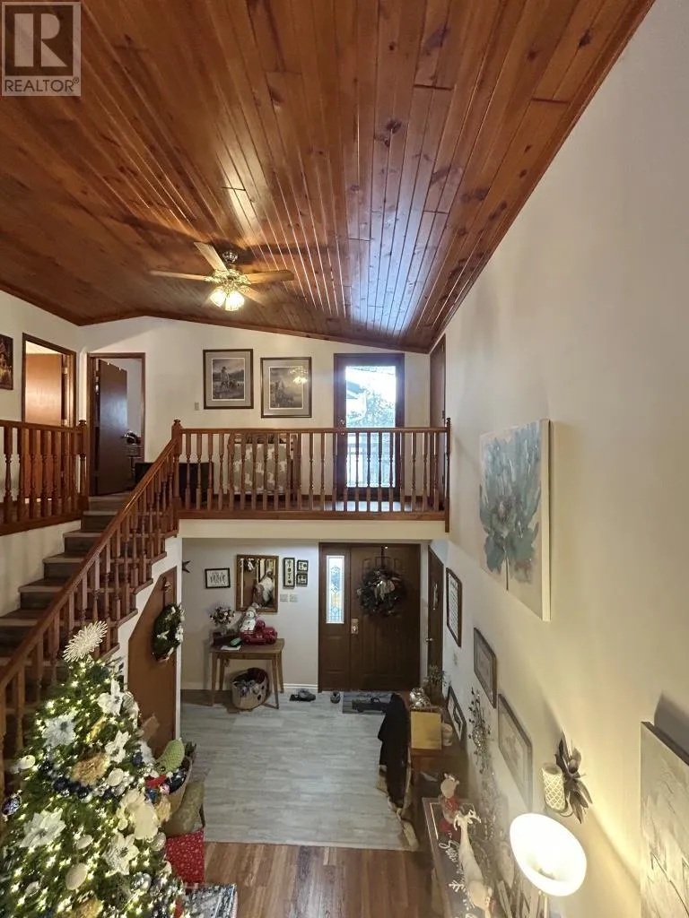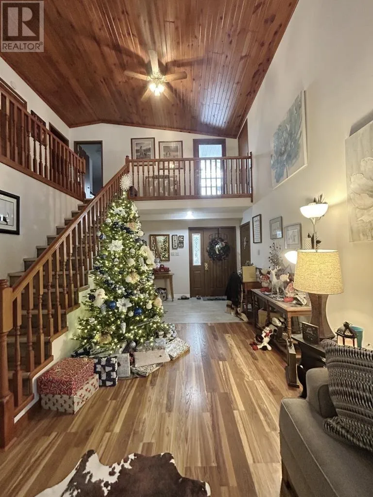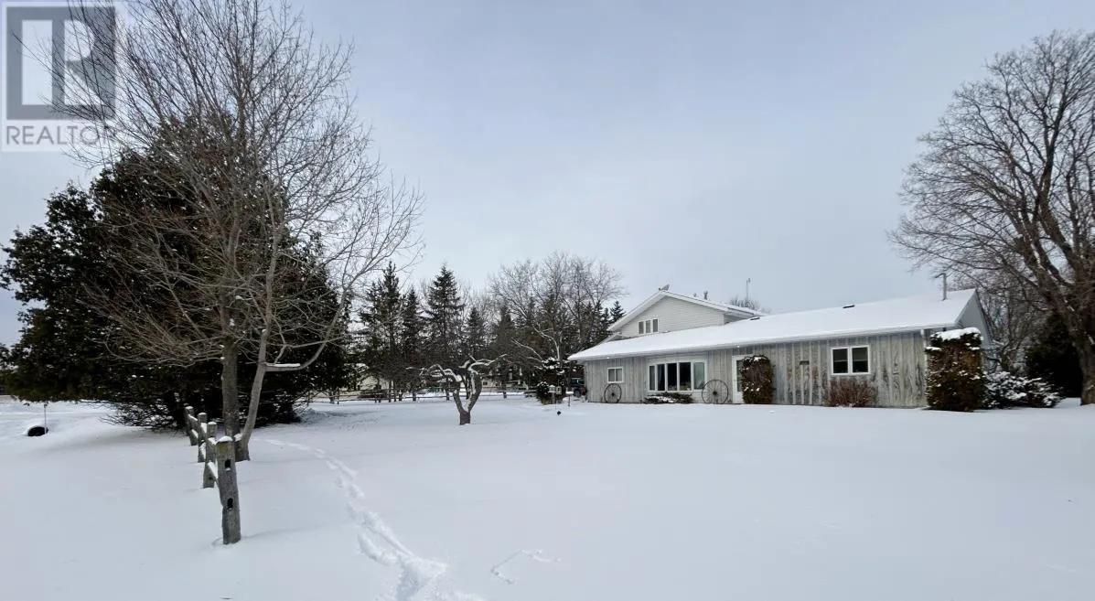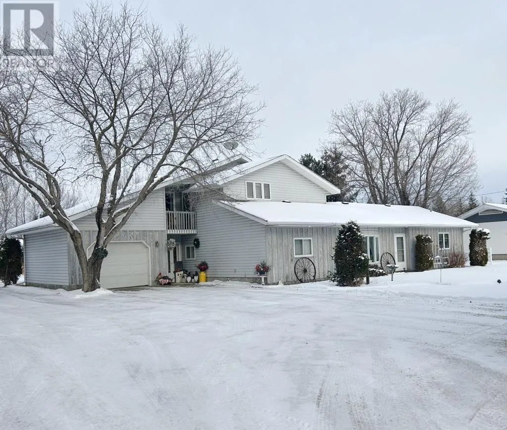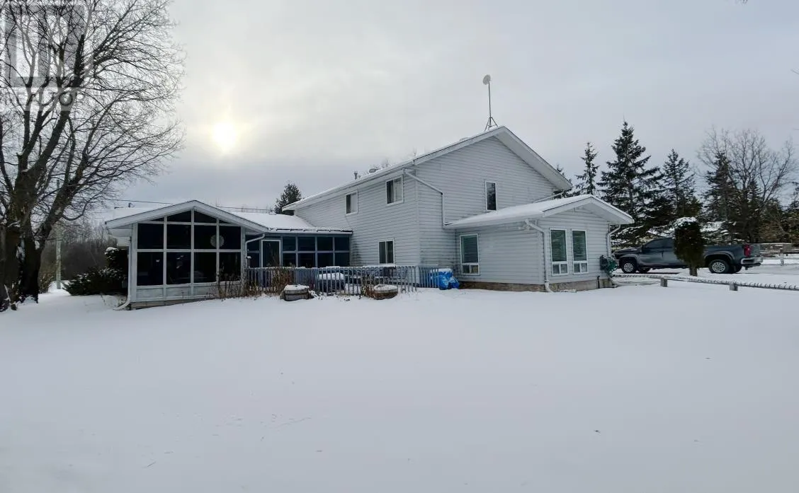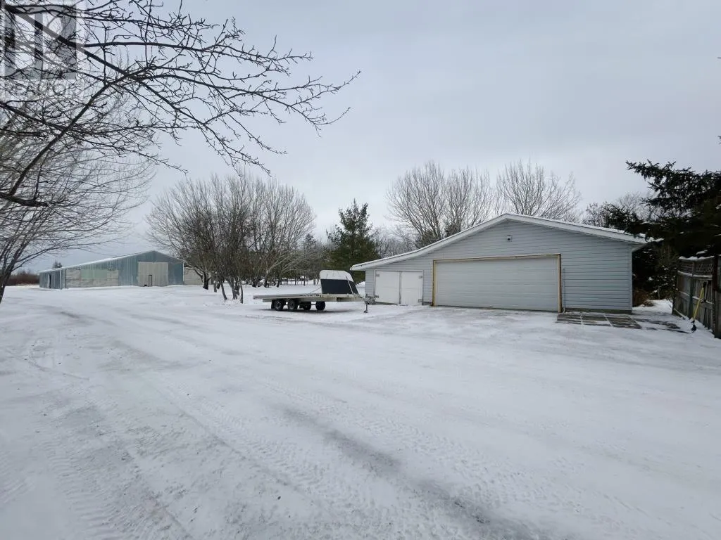 West of Walmart on Hwy 11/71 North side of Highway All the joys of country living just minutes from Town!! 4 bedroom, 3 bath home situate on 1.82 acres with plenty of workshop space and Storage options! Main Floor: country kitchen with island/dining area and patio doors to screened in sitting room/rear deck space, formal dining area, main floor family room, living room with gas fireplace and spacious entry with access to the attached garage, 2 bedrooms, main floor laundry room, sauna, 3 pce bathroom, and rear entrance with access to the partial basement. Second Level Features: Primary bedroom with walk in closet, 3 pce ensuite & access to private upper balcony, 2nd bedroom, 4 pce bathroom, and sitting room. 80ft x 100 ft metal storage building with attic storage plus double detached garage/workshop fully insulated & wired. Upgrades: Shingles front of the house/attached garage - 2014 (rear portion of the house 2025); New flooring throughout (laminate & vinyl), Main floor bathroom, Central Air 2021, Gas Furnace - 2024, Sump Pump & Back up system (2024), Salt Water/Water filtration systems updated 2023! Don't delay, book your private viewing of this amazing family home today! (id:27476)
