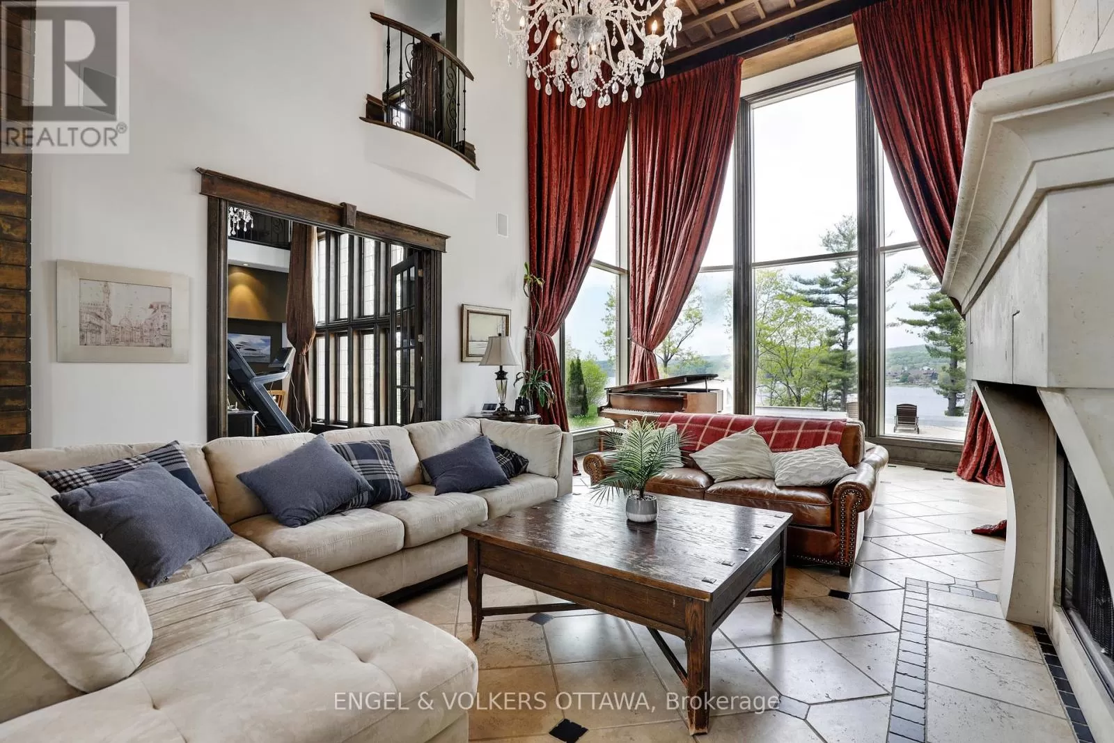 Get on Trans-Canada Hwy/ON-417 E, and then take Ottawa Regional Rd 174 and County Rd 17 to Rte 21 in Plantagenet, follow Rte 21, Plantagenet Concession 1 Rd/ Concession Rd 1 and Prescott and Russell County Rd 24 to your destination Welcome to 2892 Presquile Road, an exquisite estate sitting on 20 acres of waterfront, inspired by the Chateau de Champlatreux in France. This luxurious property boasts a total of 6 bedrooms and five bathrooms, featuring custom doors and soaring 22-foot high ceilings throughout. Step inside to find oak flooring and tile entrance leading to spacious living areas, including a chef's ream kitchen that features granite counters, a 4-burner gas stove, double oven with a warming drawer, and a built-in coffee maker and dishwasher, as well as walk-in pantry. The primary bedroom offers an ensuite bathroom and two walk-in closets. Other highlights include an infinity pool with lounge area, private dock, tiled garages that can serve as a wash bay, a rink-sized 125 x 55 arena building, tiled mudroom near the kitchen, and a Gramercy Park Hotel fireplace and chandelier. This estate is a perfect blend of luxury, comfort, and practicality, ready to offer you an unparalleled living experience. (id:27476)