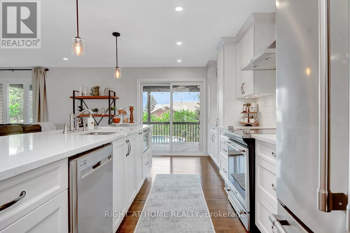 Cross Streets: Principale. ** Directions: High way 174 East, left on Du Quai, Right on Principal, Right on Castel, Left on Versaille. Welcome to this spectacular 5-bedroom bungalow, a true gem in the heart of the desirable, family-friendly Wendover community. From the dramatic front entrance to the thoughtfully designed layout, no detail has been overlooked. The main floor boasts high-end finishes throughout, including hardwood and ceramic flooring. The open-concept living area features a cozy gas fireplace, a spacious dining space, and a stunning kitchen complete with an impressive 11-foot quartz island, perfect for entertaining. The main floor laundry room is insulated to reduce noise, and additional soundproofing was added to the wall separating the living room and the primary bedroom, ensuring comfort and privacy. The large primary bedroom offers a luxurious 5-piece ensuite and walk-in closet. You will also find a second bedroom and a full bathroom on the main level. Downstairs, the fully finished basement includes a generous family room, a full bathroom, three additional bedrooms, and plenty of storage space. Step outside to a private backyard built for enjoyment, featuring a covered porch and a saltwater above-ground pool. The insulated double garage adds even more practicality to this already exceptional home.Just steps from a park and outdoor rink, this home is ideal for a growing family. Absolutely stunning come see it for yourself! (id:27476)