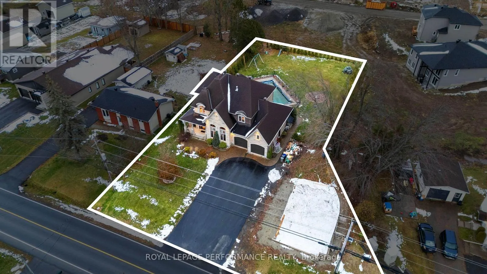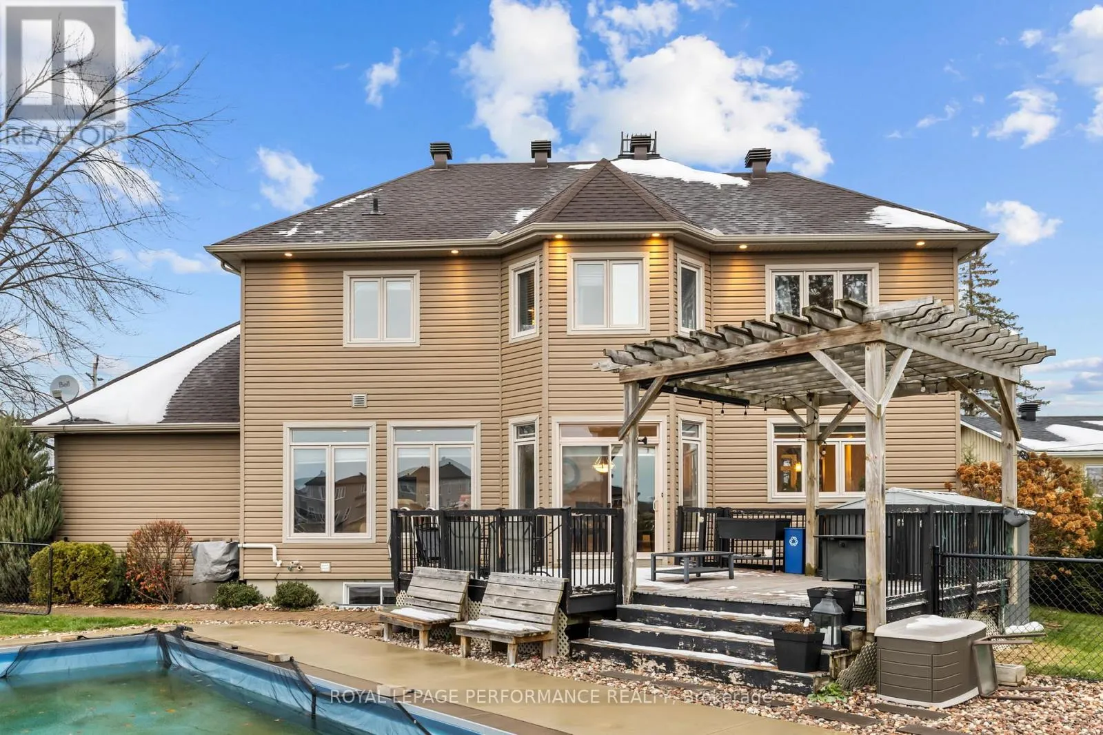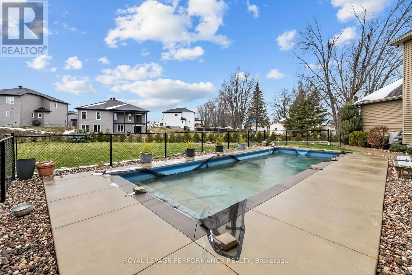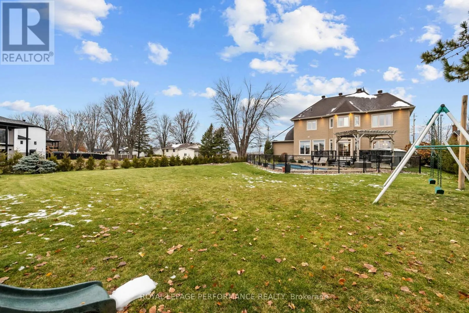 Cross Streets: Principale St/County Rd 17. ** Directions: From Hwy 174, take the exit toward Wendover and turn right onto County Rd 17. Continue straight into Wendover, then turn left onto Principale St. Welcome to this stunning 4-bedroom, 3-bathroom home offering over 3,200 sq/ft of refined living space, set on a one-of-a-kind lot fronting onto breathtaking sunset views over the river. Featuring 9 ft ceilings throughout and soaring vaulted ceilings up to 14 ft, this home blends grand architecture with warm, timeless finishes. A spacious foyer opens into an inviting living room highlighted by a striking stone fireplace extending to the ceiling. The dream kitchen boasts granite countertops, ample cabinetry, and direct access to the outdoors-perfect for entertaining. Enjoy two dining areas: a bright breakfast/dining nook with patio access, plus a formal dining room featuring charming columns. A versatile room adds flexibility for a home office, playroom, or quiet retreat overlooking your backyard oasis. The ideal family layout continues upstairs with four generous bedrooms. The primary suite includes a luxurious 5-piece ensuite & makeup vanity, and a large walk-in closet. Three additional well-sized bedrooms and a full bath complete this level. The partially finished lower level offers incredible potential, complete with a rough-in for an additional bathroom-ready to customize. Your private backyard features a 33' x 12' heated saltwater pool, pergola, interlock patio, firepit area, storage shed, and plenty of green space for kids to play. Hedges add privacy, while the front of the home showcases unmatched curb appeal with its grand covered porch, double-entrance oversized driveway, and extended 2-car garage. Bonus: a full volleyball court for summer fun. All municipal services, outdoor generator outlet, hardwood and tile throughout, exceptional layout, and views that make every sunset feel like home. (id:27476)