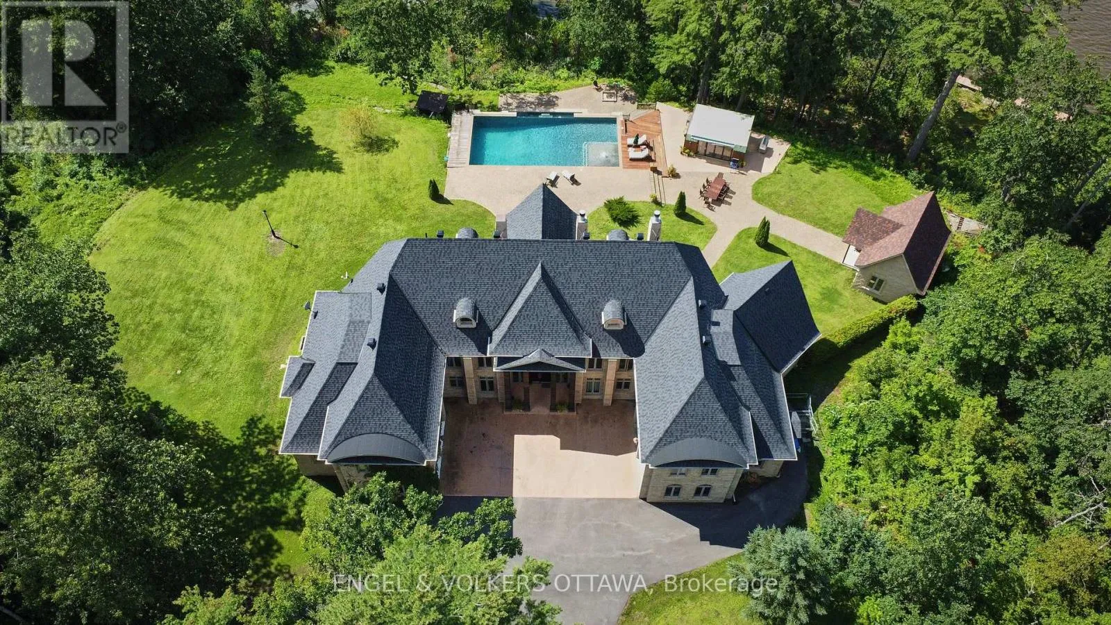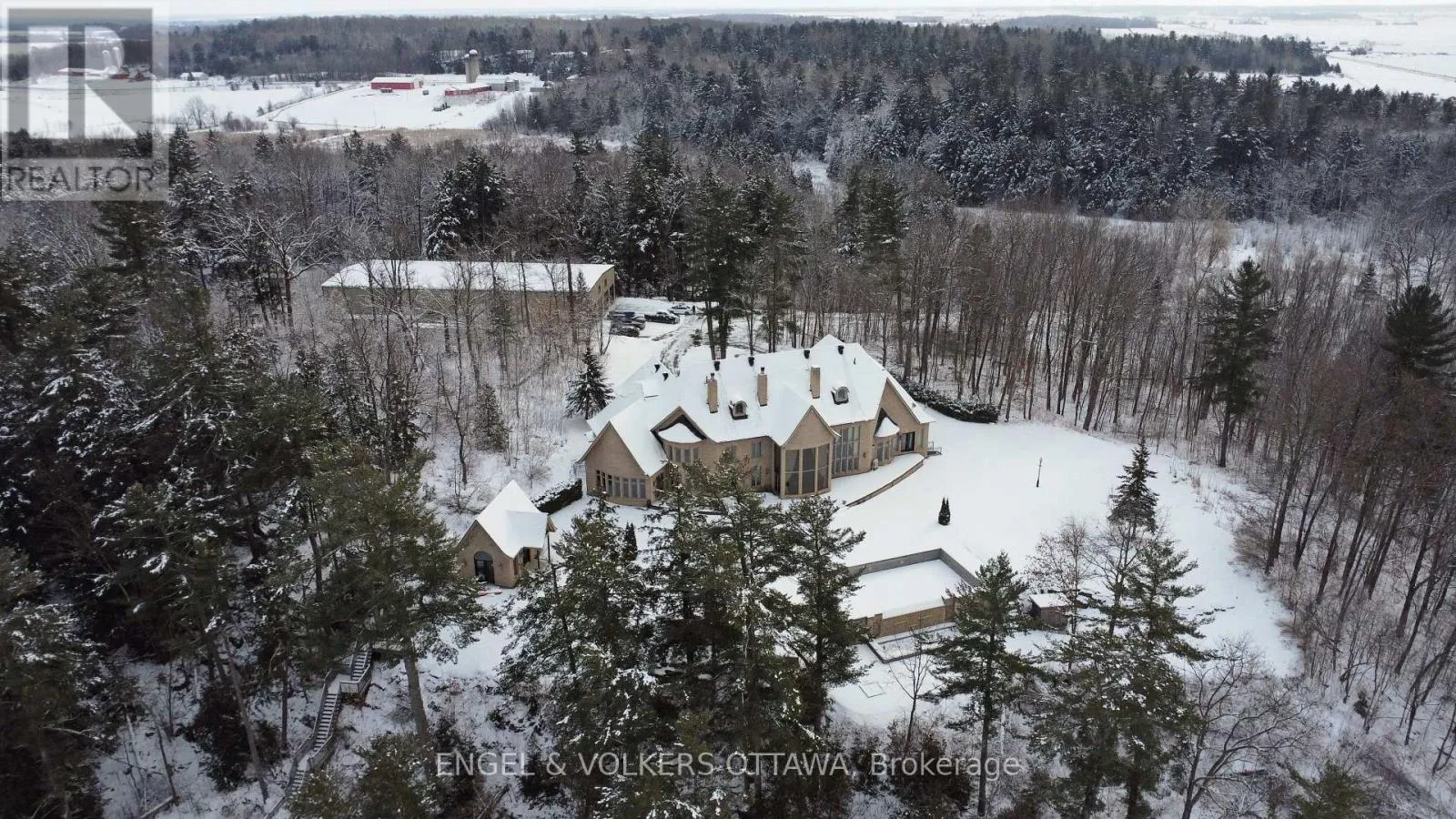 Cross Streets: Presquile Rd and Alfred Concession 1. ** Directions: Hwy 417E, then continue on RR174 and County Rd 17, north onto Rte 21 in Plantagenet, east on Concession 1, north onto Presquile Rd. Welcome to 2892 Presquile Road, an exquisite estate sitting on 20 acres of waterfront, inspired by the Chateau de Champlatreux in France. This luxurious property boasts a total of 6 bedrooms and five bathrooms, featuring custom doors and soaring 22-foot high ceilings throughout. Step inside to find oak flooring and tile entrance leading to spacious living areas, including a chef's ream kitchen that features granite counters, a 4-burner gas stove, double oven with a warming drawer, and a built-in coffee maker and dishwasher, as well as walk-in pantry. The primary bedroom offers an ensuite bathroom and two walk-in closets. Other highlights include an infinity pool with lounge area, private dock, tiled garages that can serve as a wash bay, a rink-sized 125 x 55 arena building, tiled mudroom near the kitchen, and a Gramercy Park Hotel fireplace and chandelier. This estate is a perfect blend of luxury, comfort, and practicality, ready to offer you an unparalleled living experience. (id:27476)
