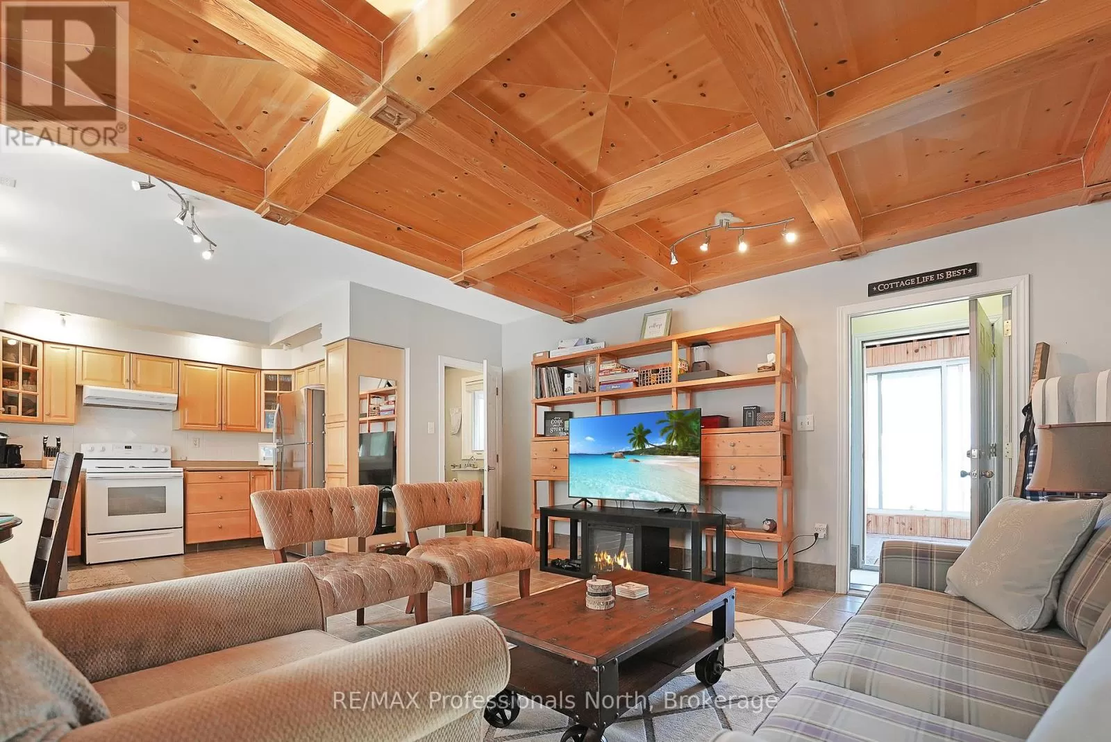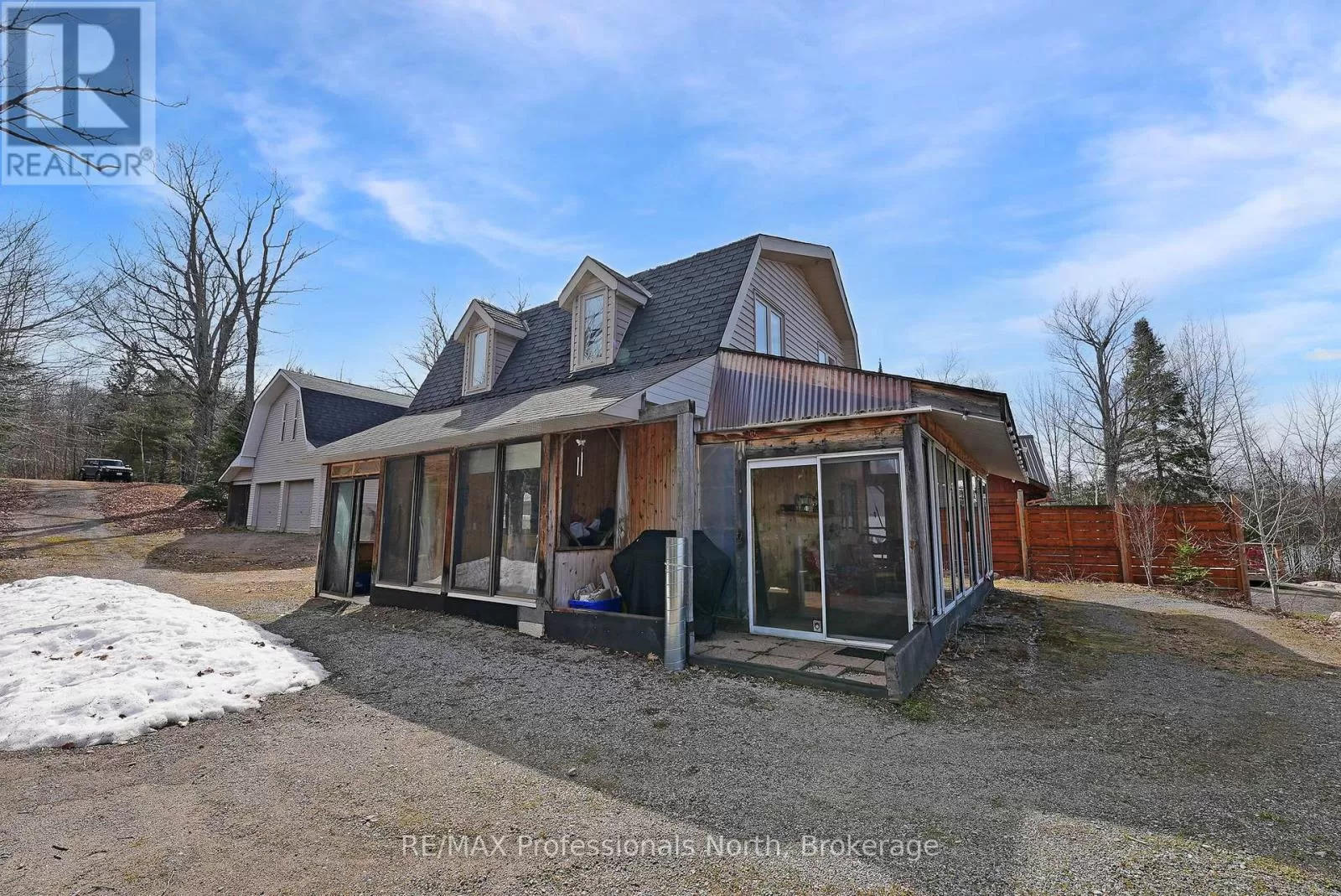 Cross Streets: Highway 35. ** Directions: Highway 35 to Cherokee Trail #1008. Lakeside Cottage on Halls Lake 160' of Pristine Waterfront. Welcome to your classic cottage escape on the shores of beautiful, deep, and clean Halls Lake. With 160 feet of waterfront, this rare SRA-owned property offers flat, usable land perfect for family fun, entertaining, or peaceful relaxation. The charming cottage is thoughtfully set back from the lakefront, while still enjoying stunning water views especially from the bright, lake-facing sunroom. Inside, you will find an inviting, open-concept layout combining the living, dining, and kitchen areas, ideal for both quiet evenings and lively gatherings. All bedrooms are located upstairs for added comfort and separation. An additional living space above the garage offers great flexibility perfect for hosting guests, a games room, or a cozy retreat. Enjoy year-round use with lake water servicing the property and make the most of your shoreline with a handy little boat launch. Located just 5 minutes from excellent local restaurants, this property blends the charm of cottage life with the convenience of nearby amenities. Whether you're seeking a year-round residence or a seasonal retreat, this Halls Lake cottage is ready for you to start making memories. (id:27476)