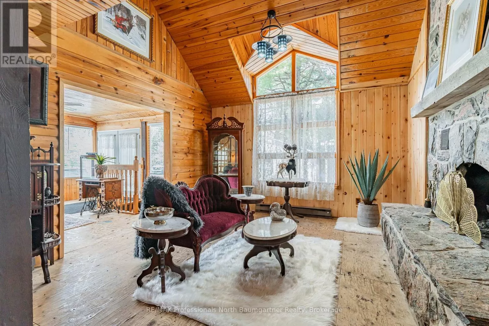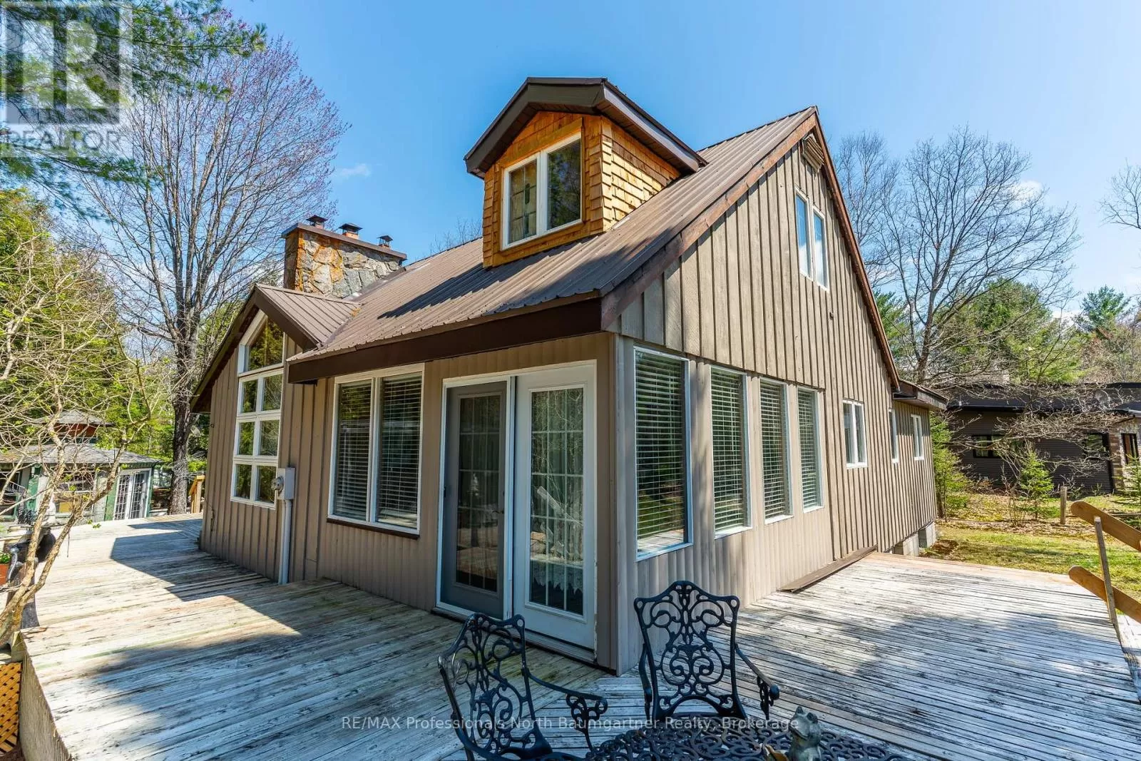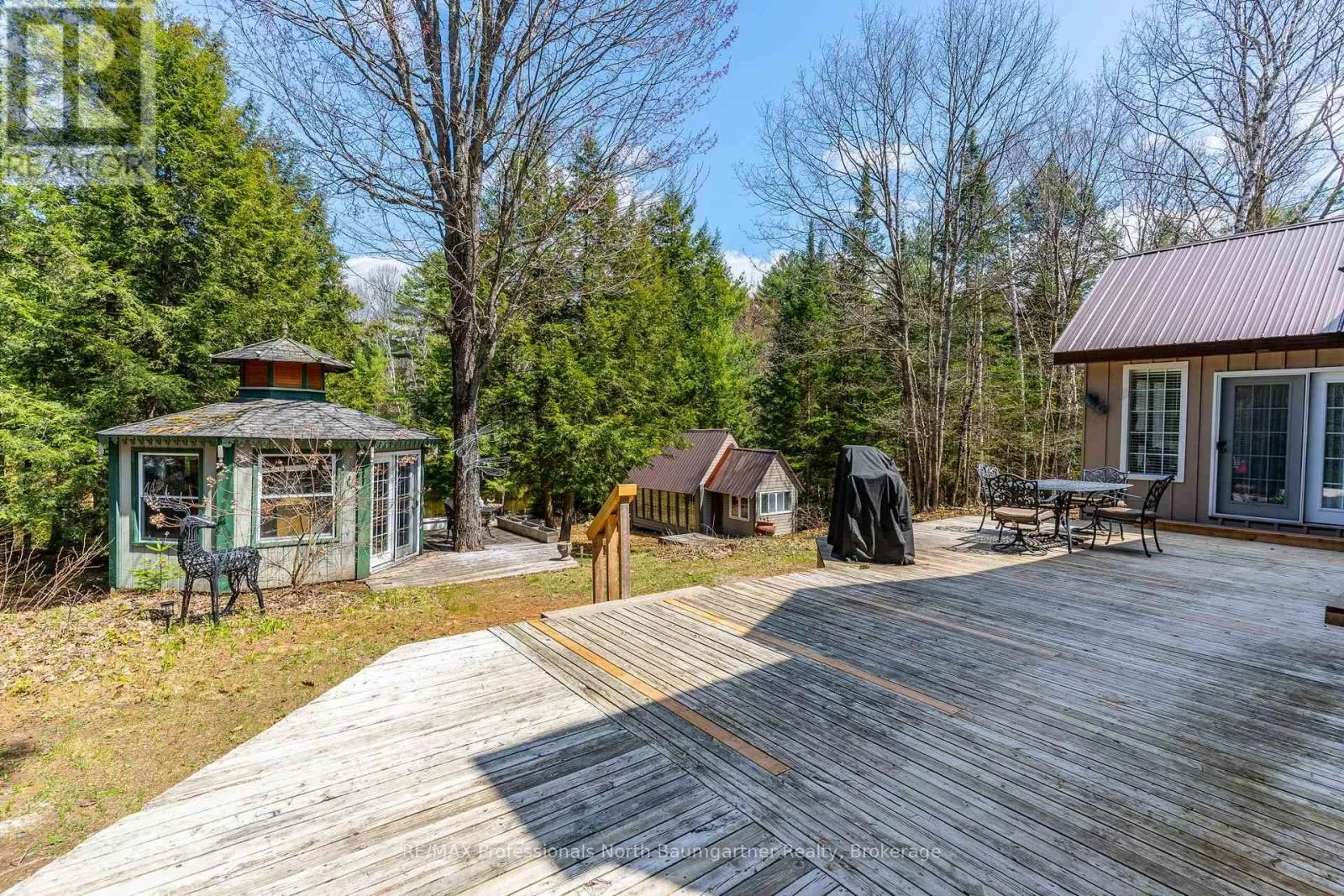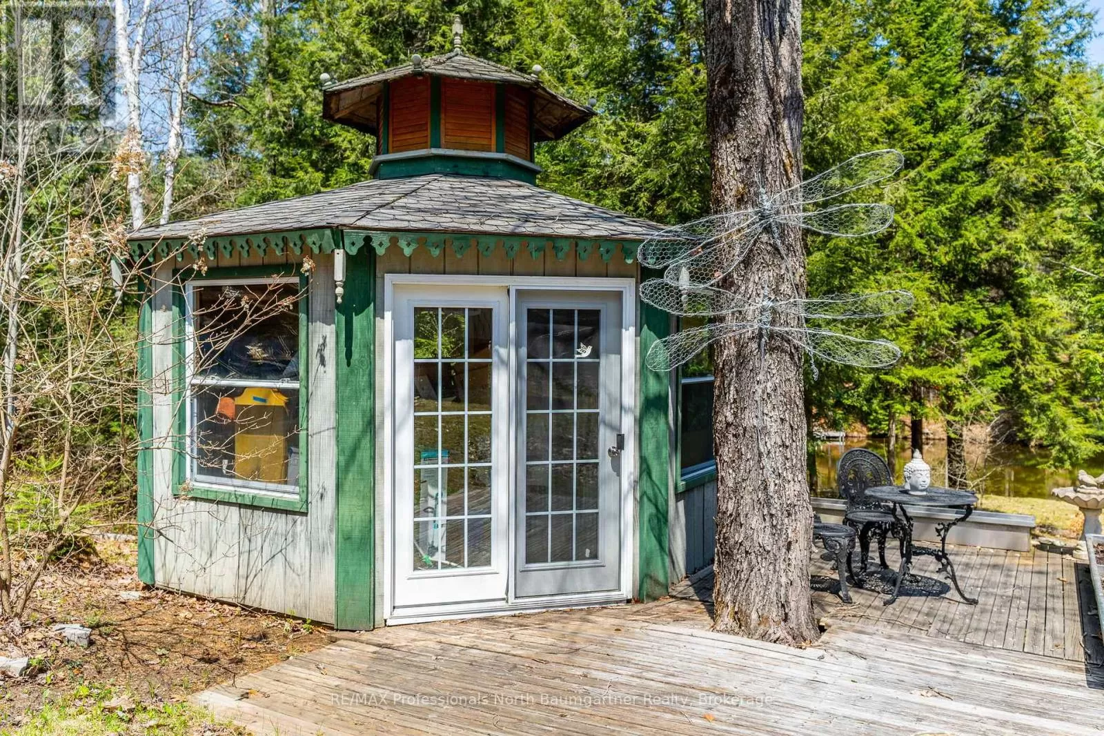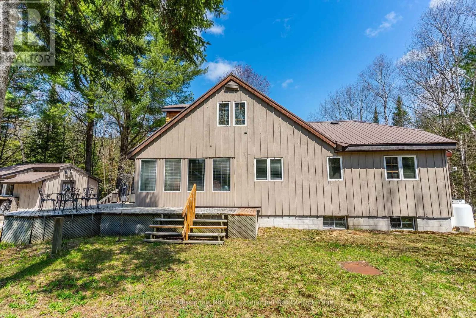 Cross Streets: Big Hawk Lake Rd/Cloverleaf Rd. ** Directions: HWY 35 to Little Hawk Lake Road to Big Hawk Lake Rd to Cloverleaf Road to SOP. Discover riverfront living at 1065 Cloverleaf Road, a captivating property on Kennisis River in Algonquin Highlands. This charming 3-bedroom, 1-bathroom retreat combines comfortable living with breathtaking natural surroundings. The inviting living room centers around a stone wood-burning fireplace that creates an atmosphere of elegance and warmth throughout the cooler months. Adjacent, the welcoming family room offers seamless indoor-outdoor flow with direct access to the expansive wrap-around deck perfect for entertaining or simply taking in the stunning riverside views. The thoughtful design continues upstairs, where a second-floor loft area extends to a private balcony overlooking the property creating an ideal spot for quiet reflection or enjoying the morning sunshine. Water enthusiasts will appreciate the property's location on Kennisis River, which connects to both Halls Lake and Big Hawk Lake, creating endless opportunities for boating, fishing, and exploration of this magnificent waterway system. The outdoor living spaces enhance the property's appeal, featuring a charming gazebo for sheltered outdoor dining and a versatile greenhouse/studio, the perfect space for creative pursuits or year-round gardening. Schedule your showing today! (id:27476)