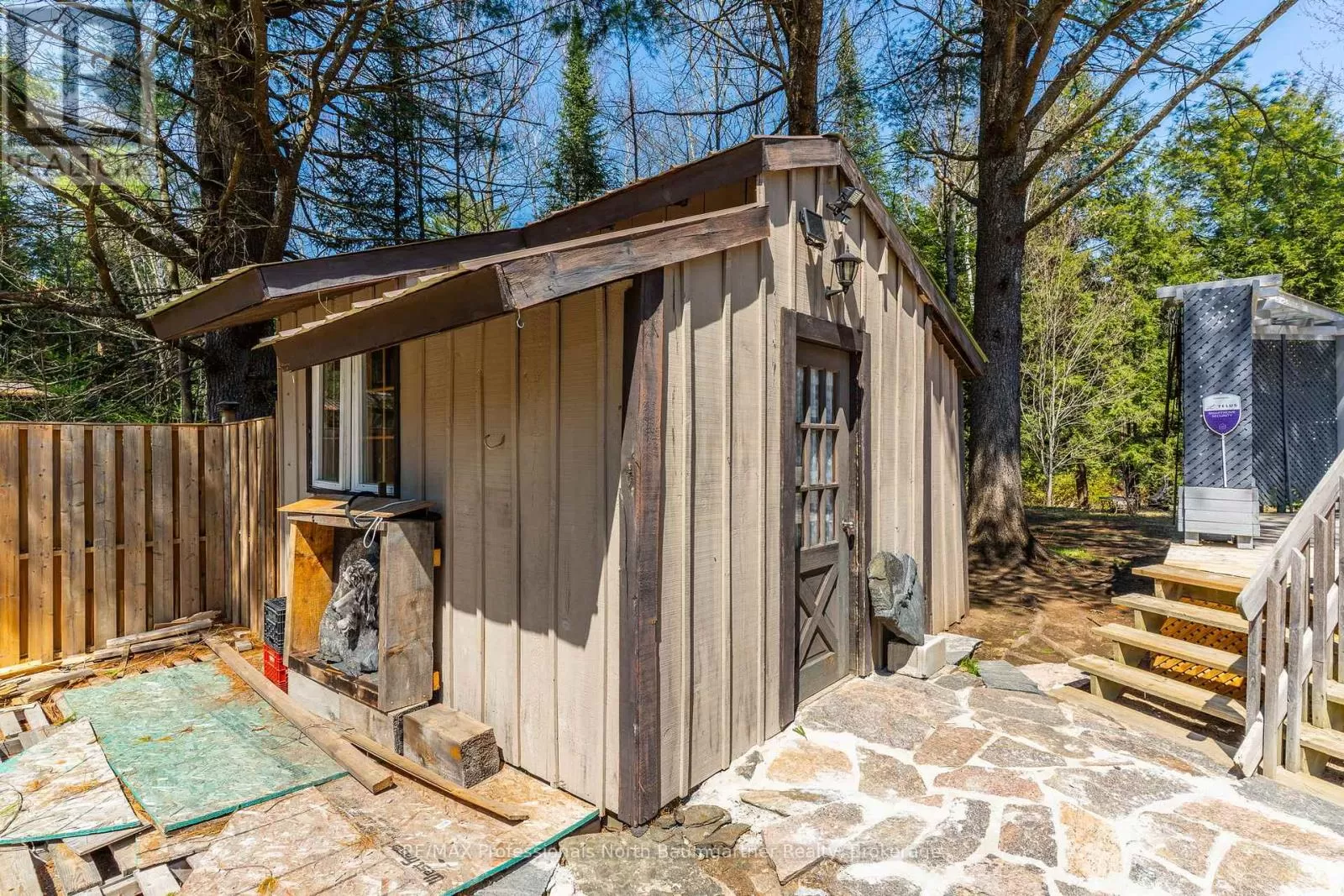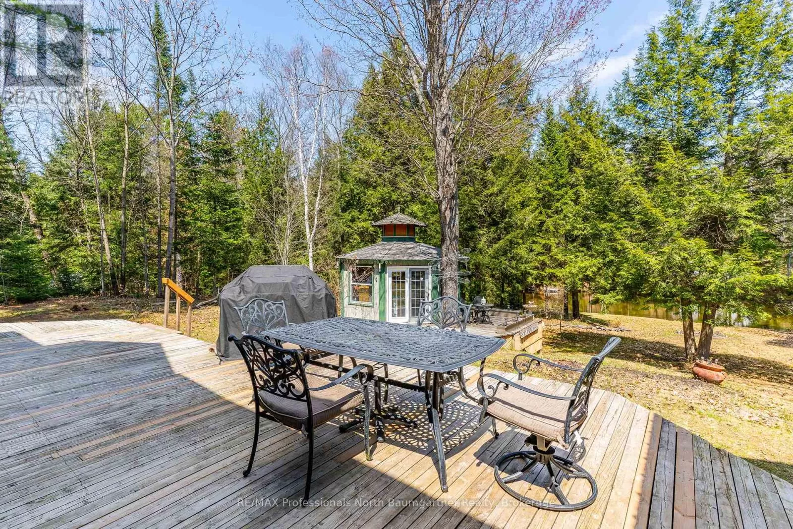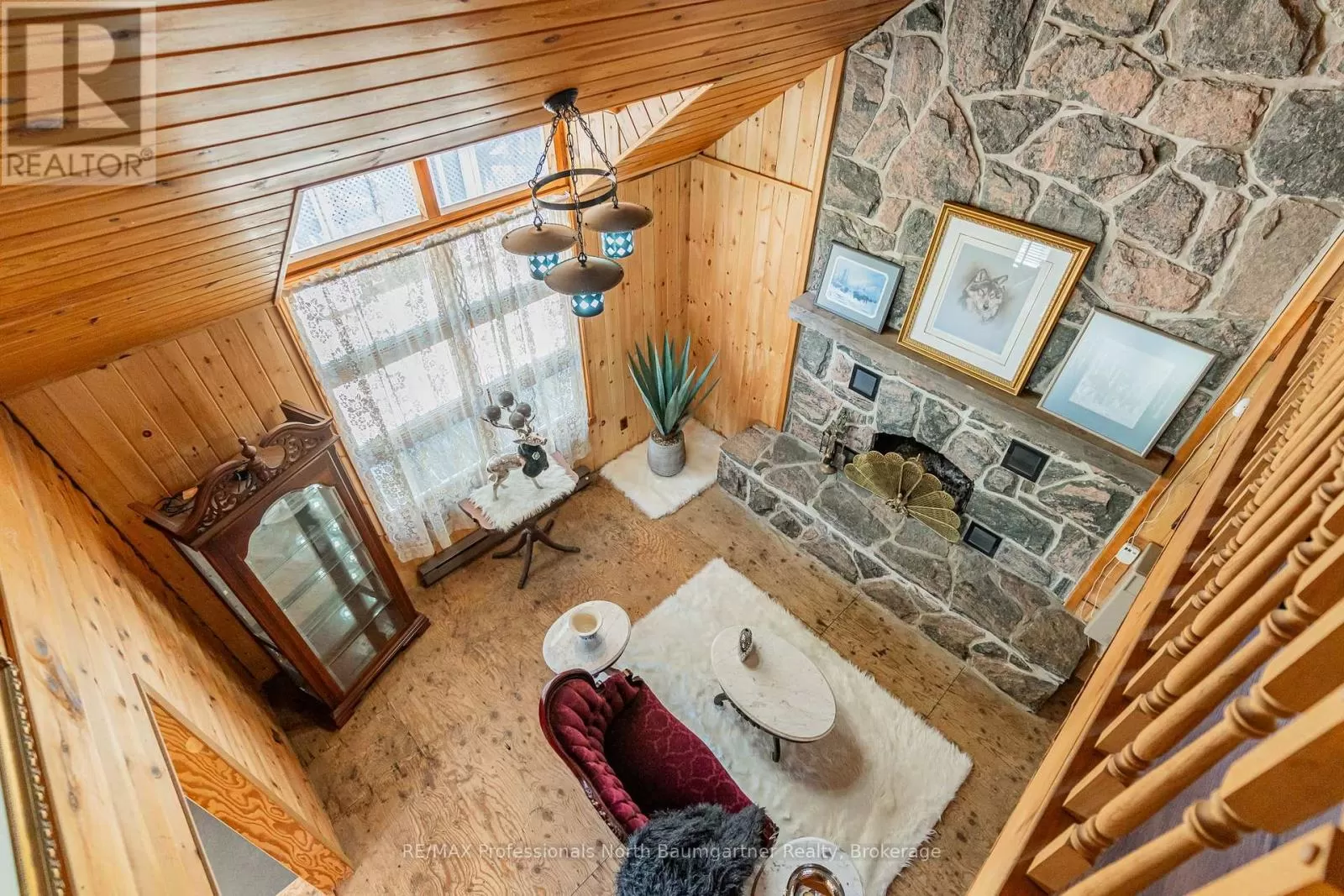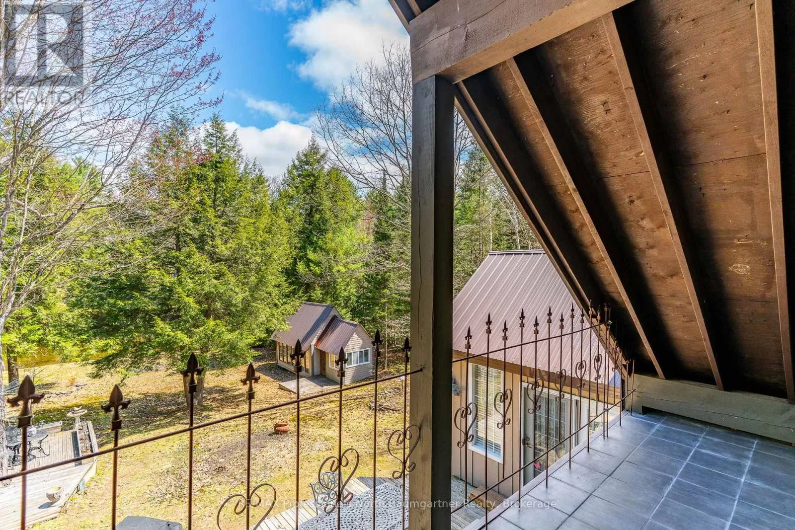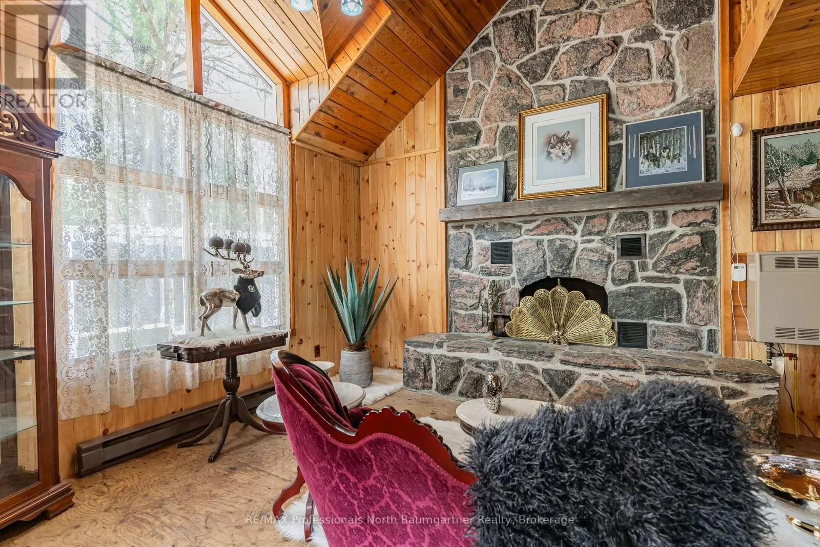 Cross Streets: Big Hawk Lake Rd/Cloverleaf Rd. ** Directions: HWY 35 to Little Hawk Lake Road to Big Hawk Lake Rd to Cloverleaf Road to SOP. Discover riverfront living at 1065 Cloverleaf Road, a captivating property on Kennisis River in Algonquin Highlands. This charming 3-bedroom, 1-bathroom retreat combines comfortable living with breathtaking natural surroundings. The inviting living room centers around a stone wood-burning fireplace that creates an atmosphere of elegance and warmth throughout the cooler months. Adjacent, the welcoming family room offers seamless indoor-outdoor flow with direct access to the expansive wrap-around deck perfect for entertaining or simply taking in the stunning riverside views. The thoughtful design continues upstairs, where a second-floor loft area extends to a private balcony overlooking the property creating an ideal spot for quiet reflection or enjoying the morning sunshine. Water enthusiasts will appreciate the property's location on Kennisis River, which connects to both Halls Lake and Big Hawk Lake, creating endless opportunities for boating, fishing, and exploration of this magnificent waterway system. The outdoor living spaces enhance the property's appeal, featuring a charming gazebo for sheltered outdoor dining and a versatile greenhouse/studio, the perfect space for creative pursuits or year-round gardening. Schedule your showing today! (id:27476)