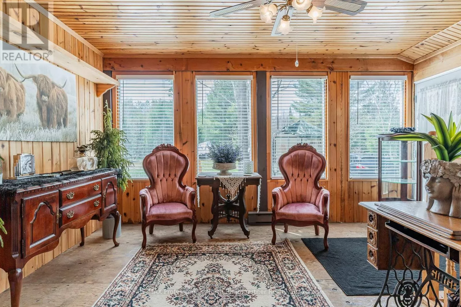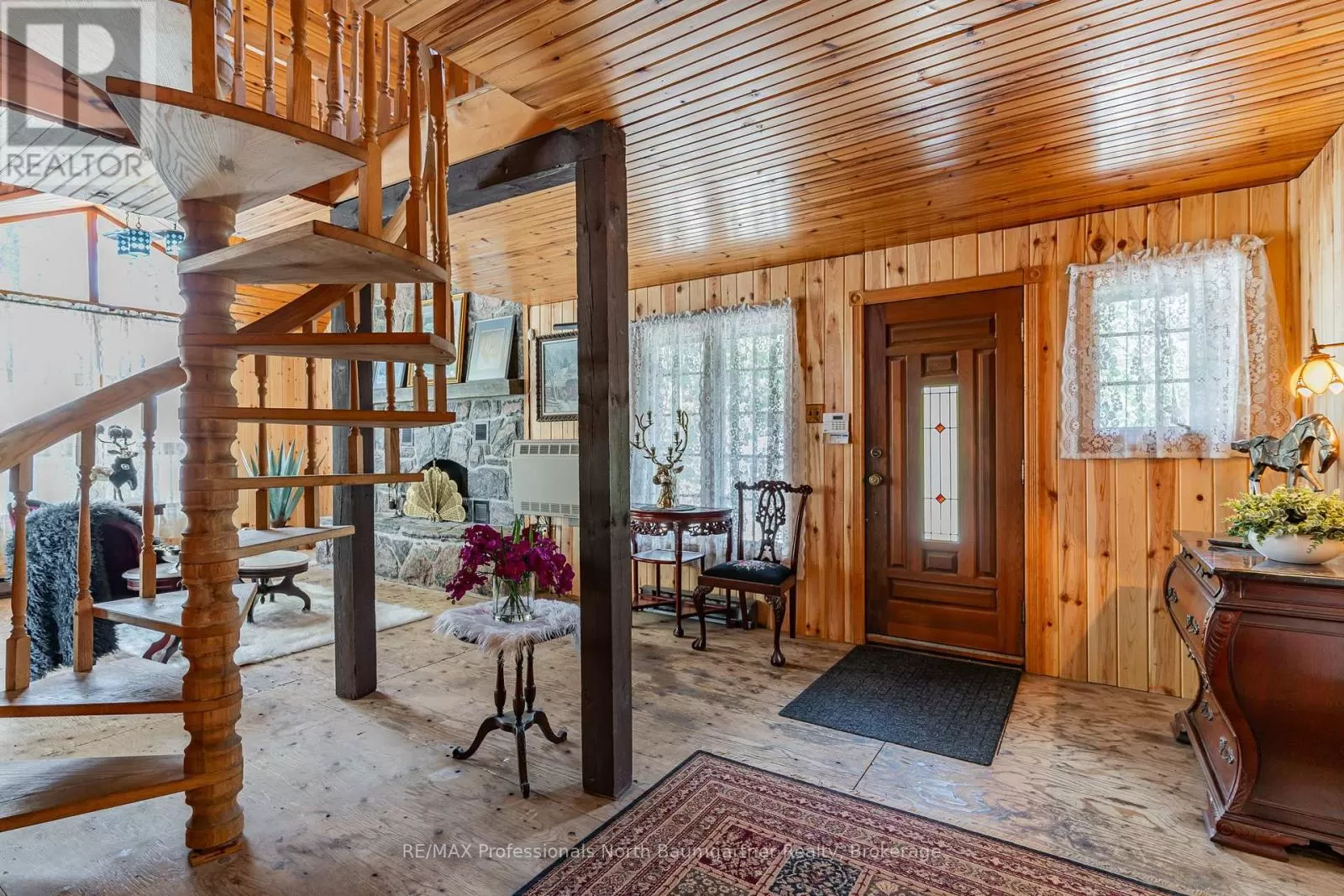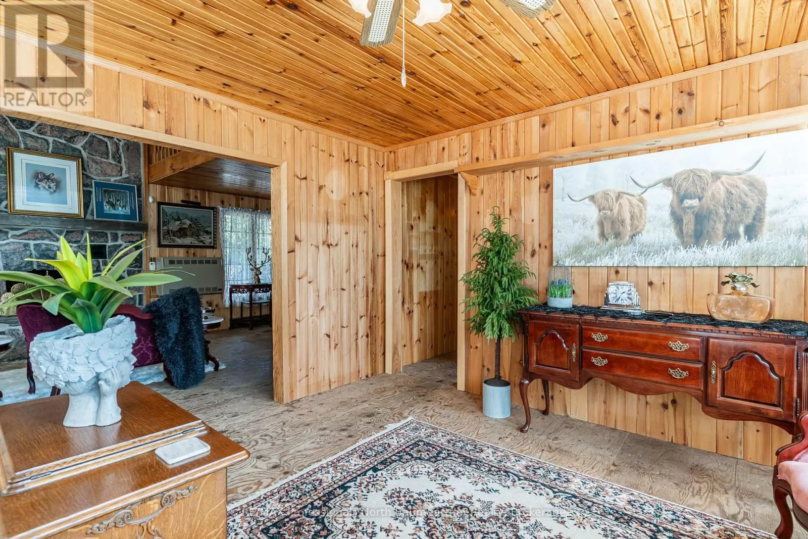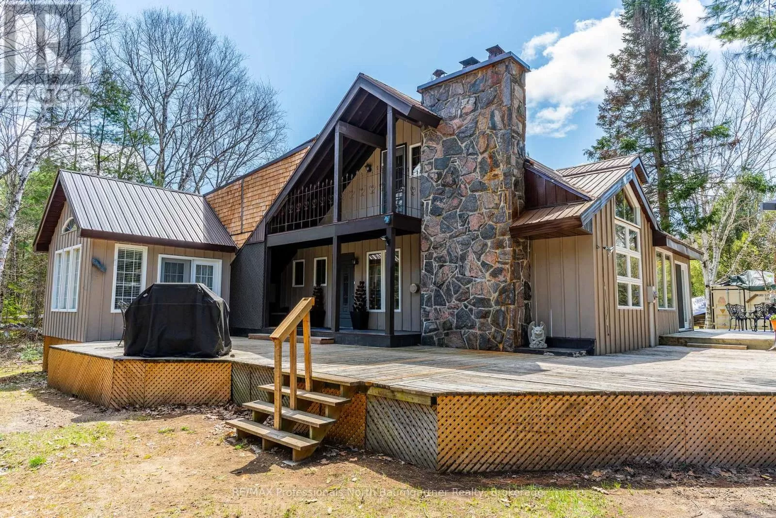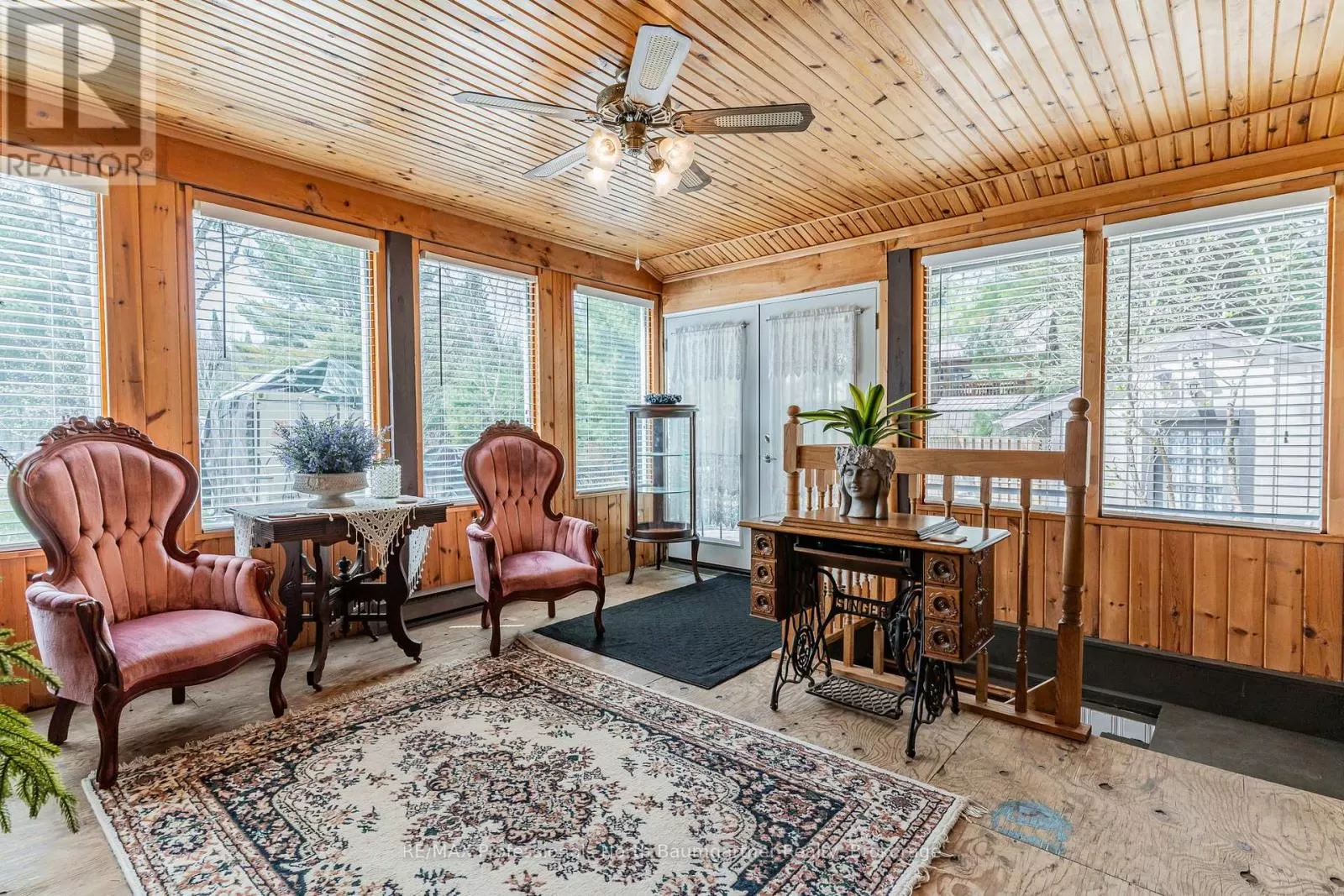 Cross Streets: Big Hawk Lake Rd/Cloverleaf Rd. ** Directions: HWY 35 to Little Hawk Lake Road to Big Hawk Lake Rd to Cloverleaf Road to SOP. Discover riverfront living at 1065 Cloverleaf Road, a captivating property on Kennisis River in Algonquin Highlands. This charming 3-bedroom, 1-bathroom retreat combines comfortable living with breathtaking natural surroundings. The inviting living room centers around a stone wood-burning fireplace that creates an atmosphere of elegance and warmth throughout the cooler months. Adjacent, the welcoming family room offers seamless indoor-outdoor flow with direct access to the expansive wrap-around deck perfect for entertaining or simply taking in the stunning riverside views. The thoughtful design continues upstairs, where a second-floor loft area extends to a private balcony overlooking the property creating an ideal spot for quiet reflection or enjoying the morning sunshine. Water enthusiasts will appreciate the property's location on Kennisis River, which connects to both Halls Lake and Big Hawk Lake, creating endless opportunities for boating, fishing, and exploration of this magnificent waterway system. The outdoor living spaces enhance the property's appeal, featuring a charming gazebo for sheltered outdoor dining and a versatile greenhouse/studio, the perfect space for creative pursuits or year-round gardening. Schedule your showing today! (id:27476)