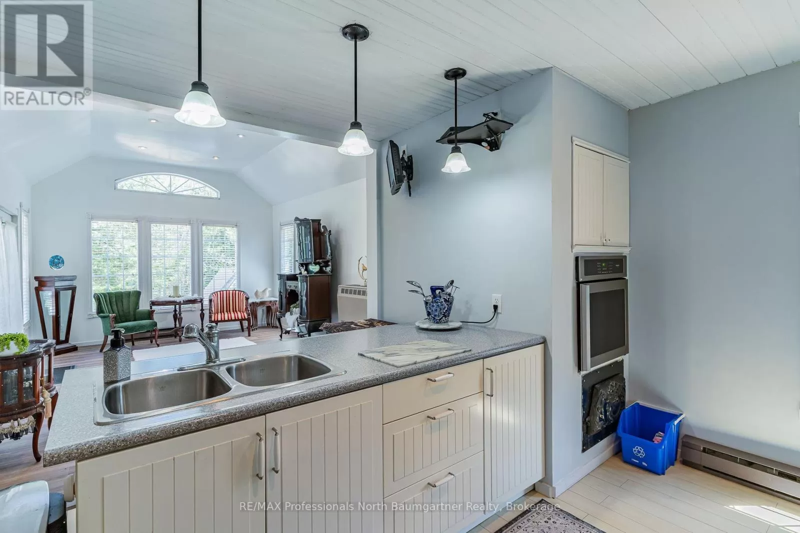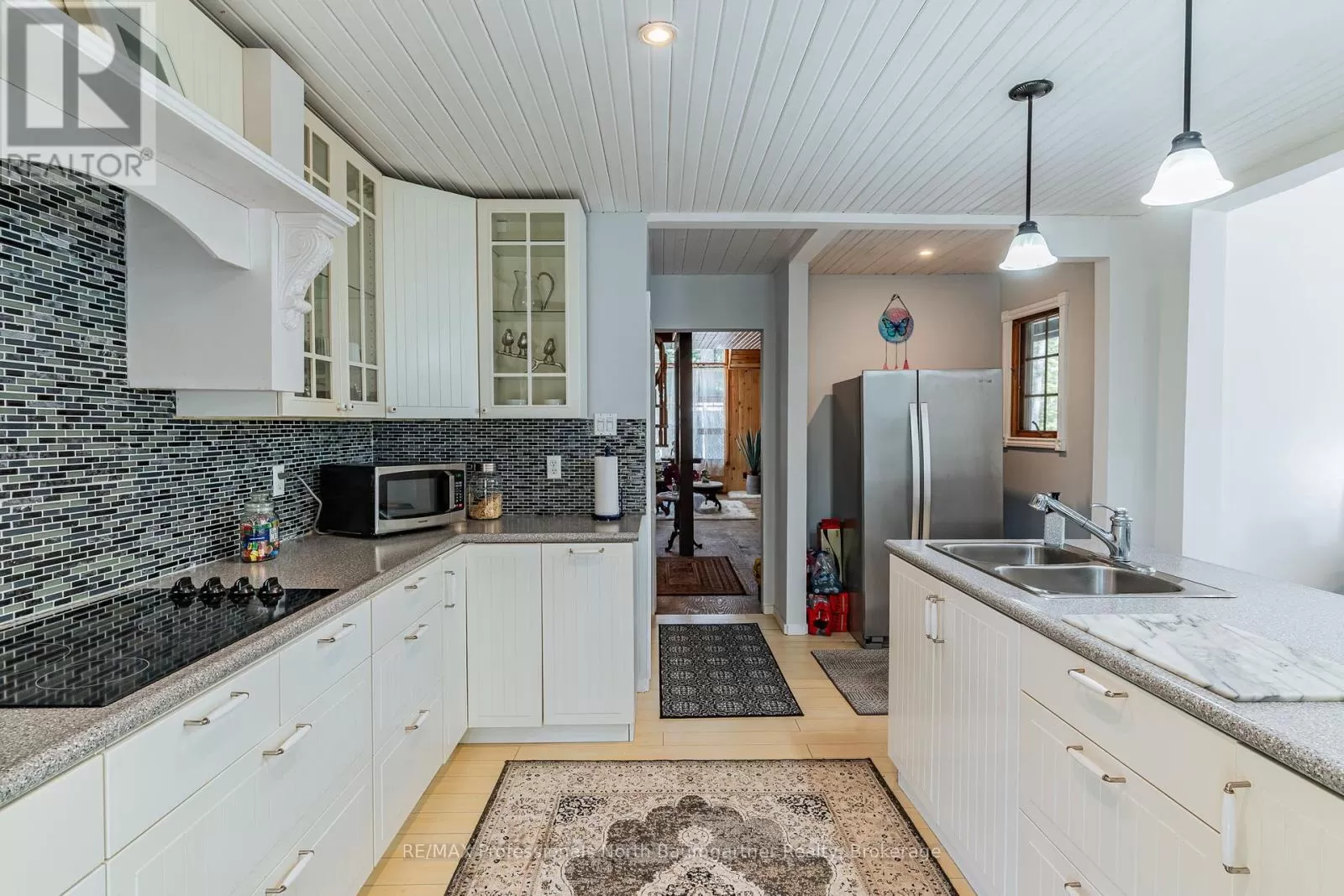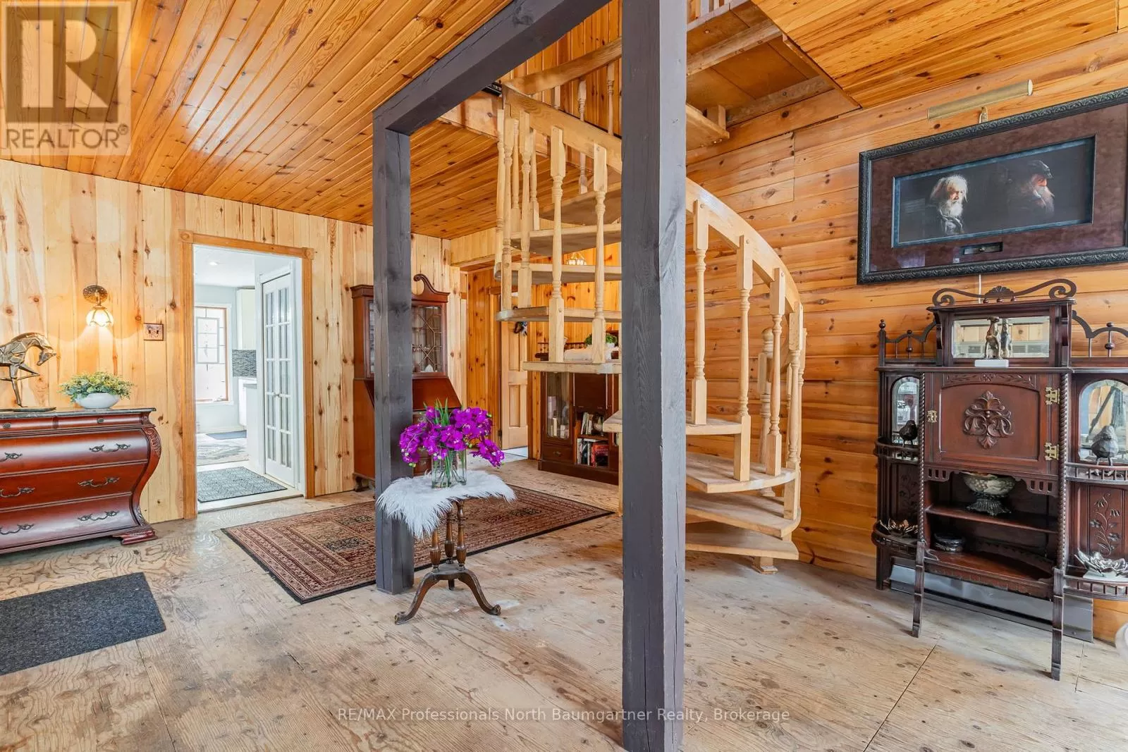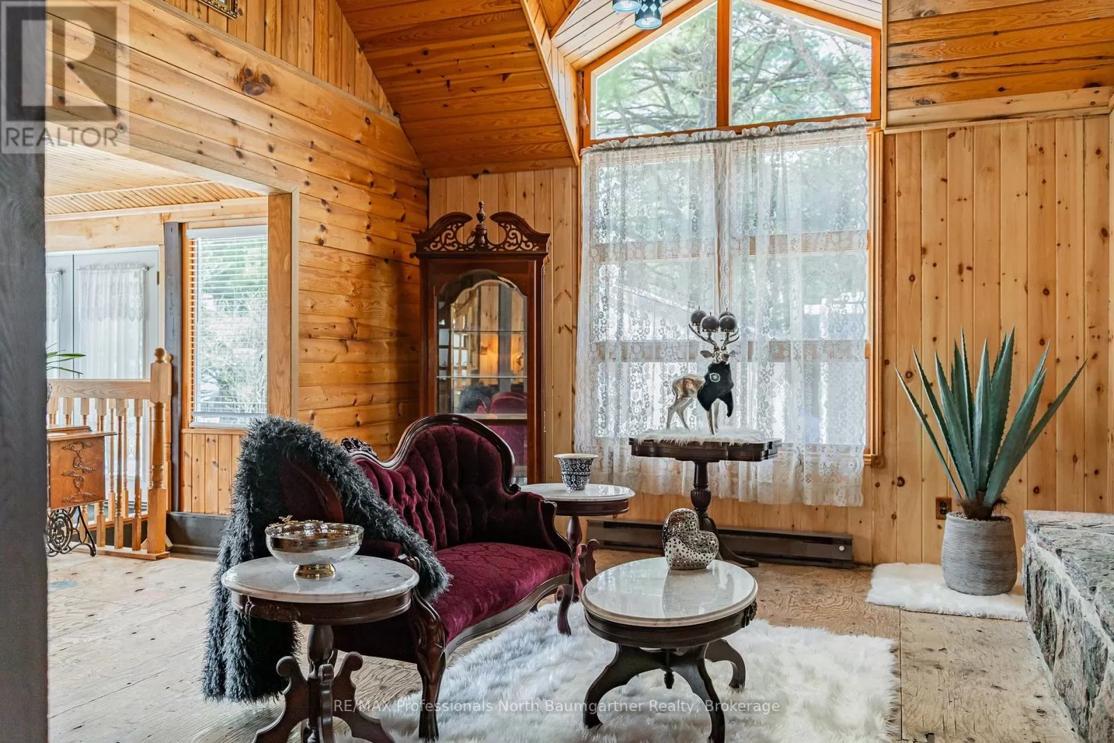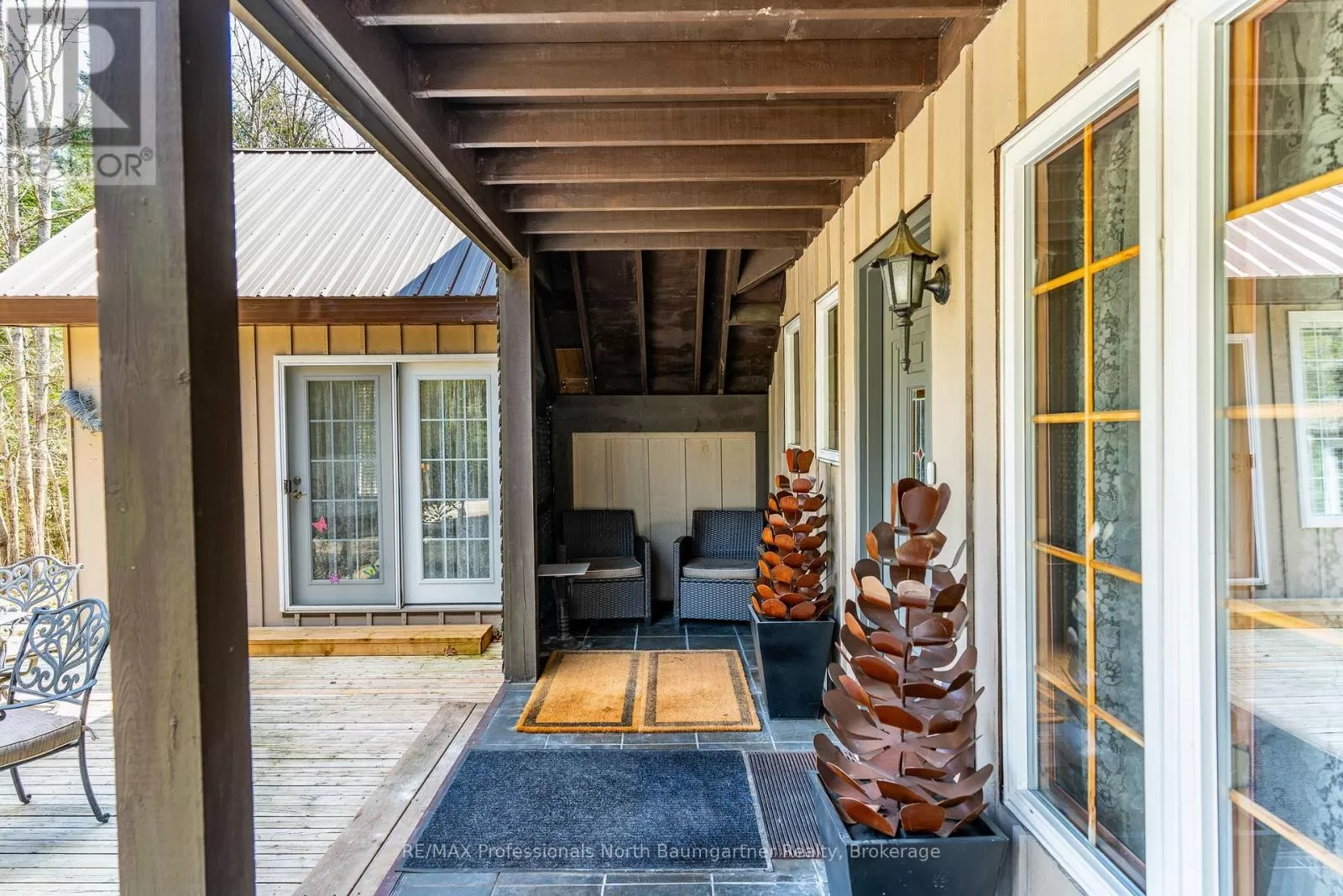Cross Streets: Big Hawk Lake Rd/Cloverleaf Rd. ** Directions: HWY 35 to Little Hawk Lake Road to Big Hawk Lake Rd to Cloverleaf Road to SOP. Discover riverfront living at 1065 Cloverleaf Road, a captivating property on Kennisis River in Algonquin Highlands. This charming 3-bedroom, 1-bathroom retreat combines comfortable living with breathtaking natural surroundings. The inviting living room centers around a stone wood-burning fireplace that creates an atmosphere of elegance and warmth throughout the cooler months. Adjacent, the welcoming family room offers seamless indoor-outdoor flow with direct access to the expansive wrap-around deck perfect for entertaining or simply taking in the stunning riverside views. The thoughtful design continues upstairs, where a second-floor loft area extends to a private balcony overlooking the property creating an ideal spot for quiet reflection or enjoying the morning sunshine. Water enthusiasts will appreciate the property's location on Kennisis River, which connects to both Halls Lake and Big Hawk Lake, creating endless opportunities for boating, fishing, and exploration of this magnificent waterway system. The outdoor living spaces enhance the property's appeal, featuring a charming gazebo for sheltered outdoor dining and a versatile greenhouse/studio, the perfect space for creative pursuits or year-round gardening. Schedule your showing today! (id:27476)