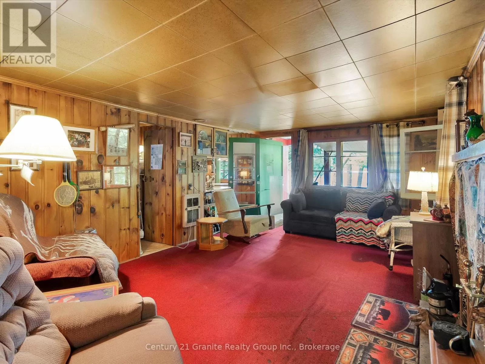 Cross Streets: HWY 35 & KANDALORE. ** Directions: HWY 35 TO KANDALORE ROAD STAY RIGHT TO KANAWA LANE. A Rare Slice of Cottage Country on Kushog Lake! Full of Possibility! Tucked away at the end of a quiet road, this southwest-facing, level lot on stunning Kushog Lake offers a rare opportunity to create the lakeside retreat your family has always dreamed of. With breathtaking sunsets, a clean sand and rock shoreline, and direct access to the coveted Kushog St. Nora Lake chain, its an ideal setting for swimming, boating, fishing, and soaking up the peaceful rhythm of cottage life. You'll enjoy enduring privacy and a deep connection to nature where the call of the loons and the laughter of kids playing in the woods set the tone for slow, meaningful days. The property includes two charming vintage cottages, one approximately 650 sq. ft., the other 600 sq. ft., both with over 50 years of family history. Located just steps from the water, they offer a rare and valuable footprint for rebuilding. Whether you're dreaming of a brand-new custom build or ready to gather friends, grab your toolboxes, and roll up your sleeves, this property is ready for its next chapter. Also included is a lakeside boathouse with a boat lift system and ski boat, a workshop, private boat launch, and hydro already in place providing all the essentials to get started. With its wide-open space, mature trees, and unbeatable waterfront views, this special spot is perfectly suited for a family compound, weekend getaway, or full-time lakeside living. There's work ahead, but the reward? A place where stories are written, memories are made, and generations come together. (id:27476)