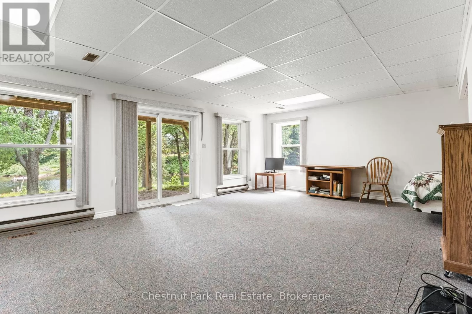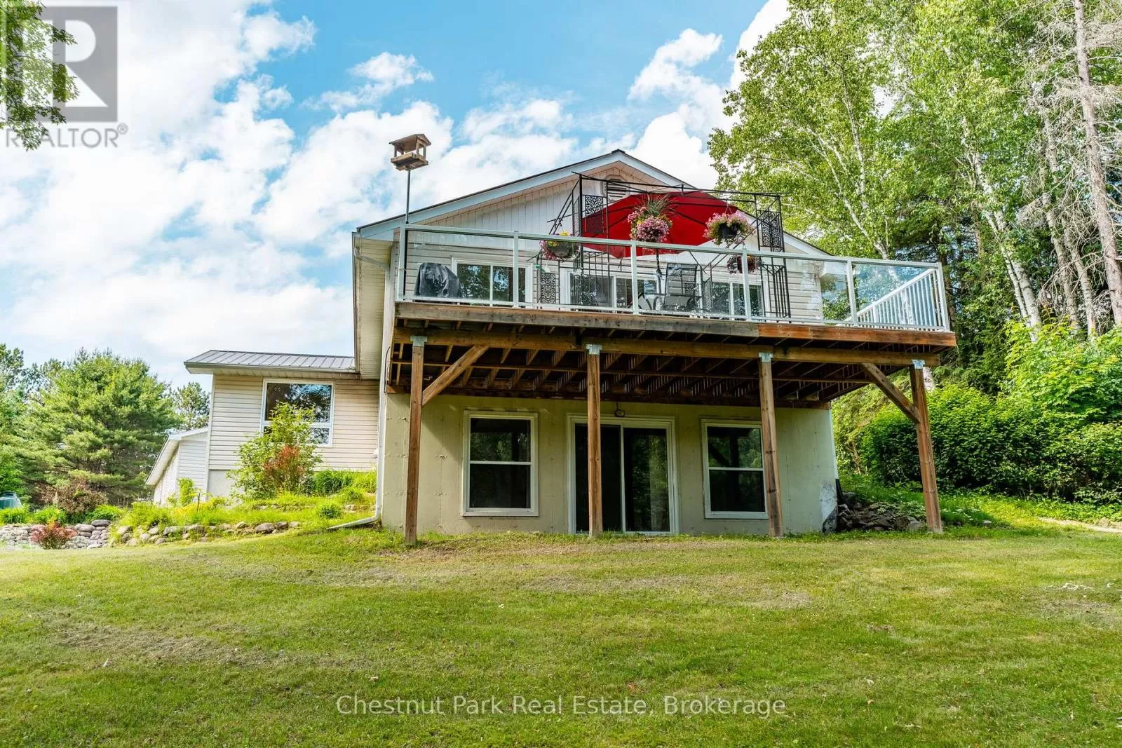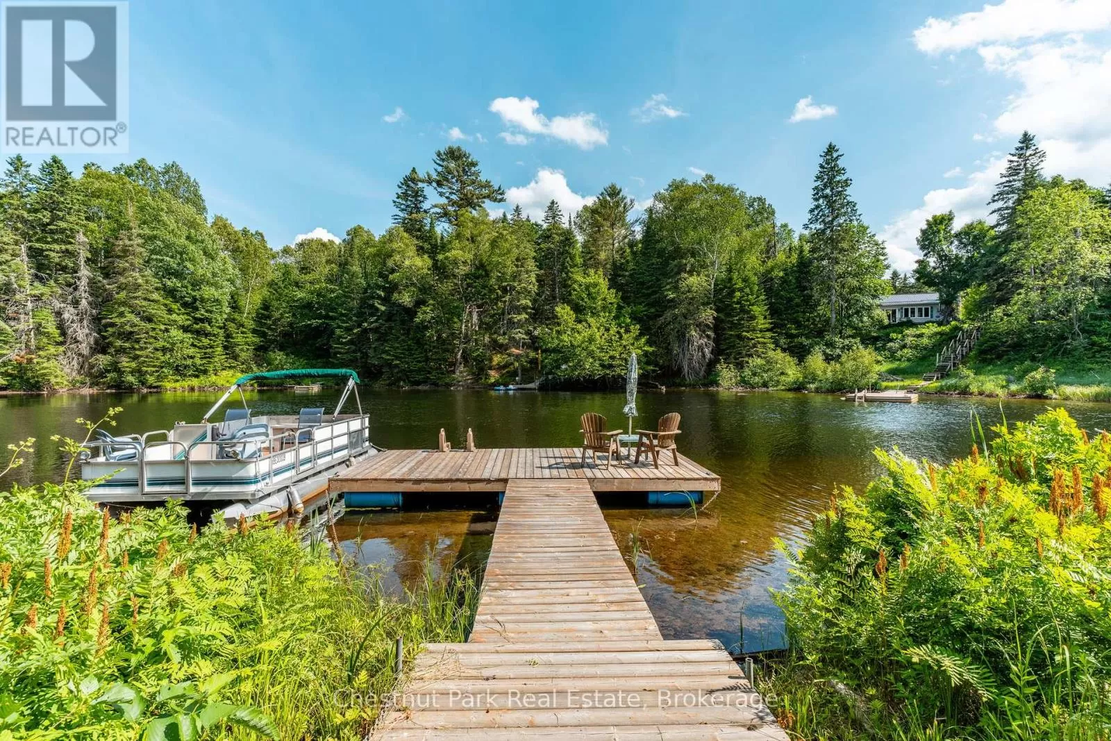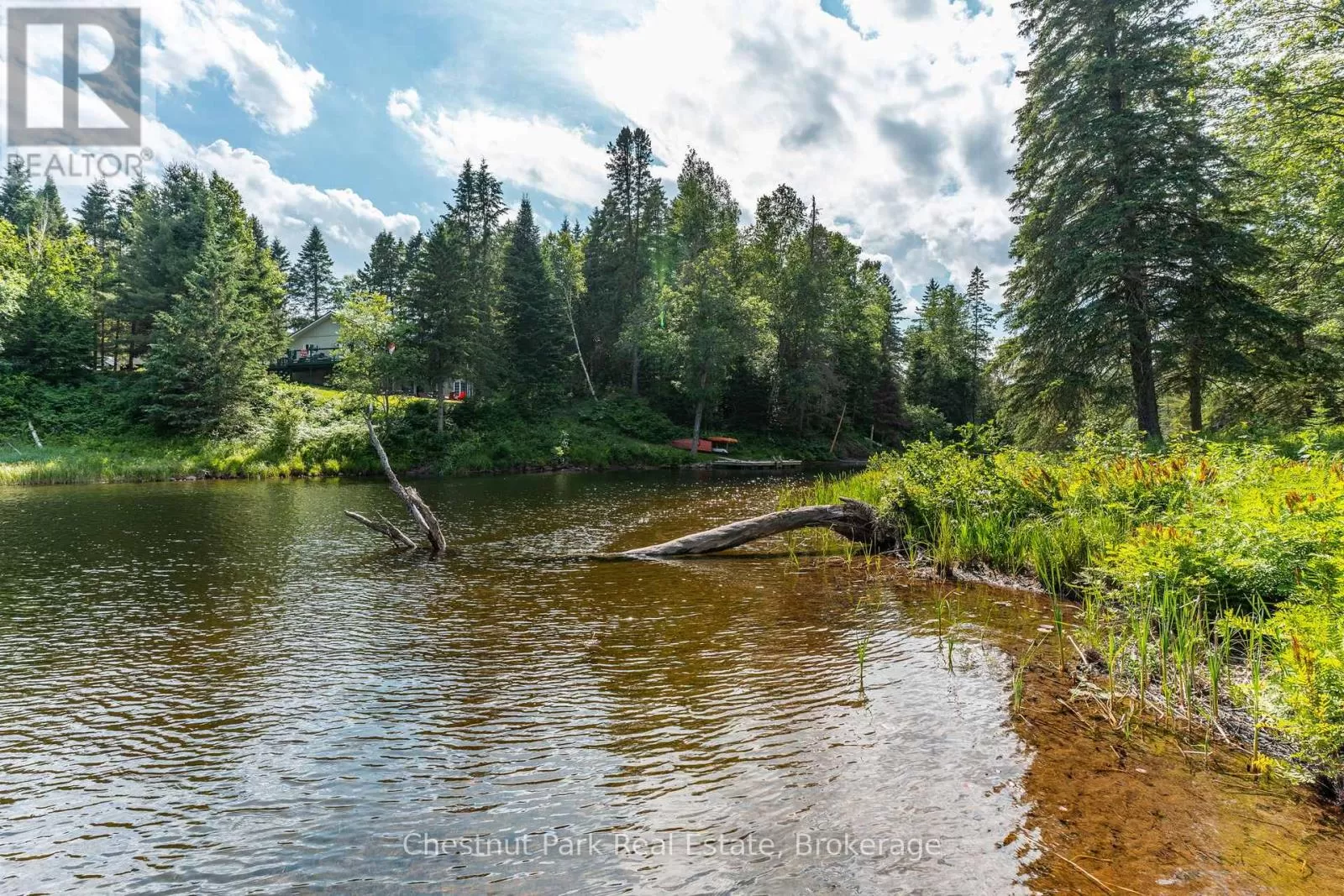 Cross Streets: Stanhope Airport Rd and Green Lk Rd. ** Directions: Hwy 118 to Stanhope Airport Road to Green Lake Road. Escape to this serene waterfront property on the Gull River, offering access to Maple, Grass, and Pine Lakes. A true haven for nature lovers and boating enthusiasts. This well-maintained total 2510 sf, 2-bedroom, 3-bathroom home is situated on a year-round municipal road and offers everything you need for comfortable four-season living. Step inside to a spacious great room featuring rich oak kitchen cabinetry, sleek black appliances, and a large central island. The open concept living and dining areas walk out to a generous deck with stunning views of the river, your private dock, and the peaceful surroundings. The main level is complete with a spacious primary bedroom, with a 2-piece ensuite and river views, a second bedroom, a modern 3-piece bath with convenient laundry facilities and a bright, welcoming foyer. Downstairs, a fully finished walk-out lower level includes a large recreation room, a 2-piece bathroom, a utility/workshop area, and a large storage room with exterior access, ideal for stowing outdoor gear or potential to be converted into extra living space! Outside, enjoy a gently sloping lot leading to the waters edge, perfect for swimming, paddling, or a leisurely boat ride to explore the interconnected lakes. Relax on the patio, soak in the tranquility, and embrace the best of country living. Additional features include forced-air propane heating (less than a year old), central air conditioning, R/O water treatment and high-speed internet. Also features a spacious 4-bay, insulated and heated garage, ideal for a year-round workshop, boat storage, and all your recreational toys. Situated in a prime location with Sir Sam's Ski & Ride & Spa, and the towns of Haliburton and Minden only a few minutes away this property is a must see! (id:27476)