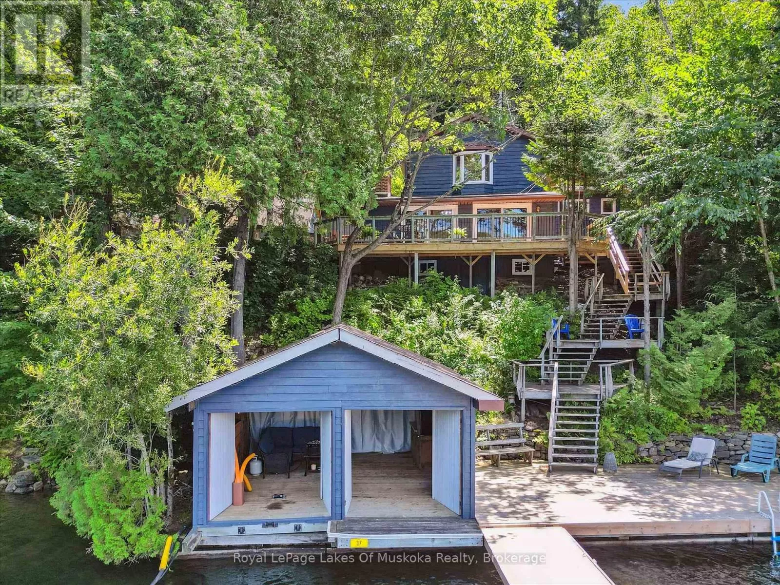 Cross Streets: Russell Landing Road and Rimrock Drive. ** Directions: Hwy 35 to Kawagama Lake Road to Russell Landing Rd to Rimrock Dr. Rimrock Drive to Sinclair Trail to #1345. Kawagama Lake is the largest lake in Haliburton, only slightly smaller in size than Lake of Bays but with far lower cottage density. It is a well-kept secret. There are large expanses of Crown land around the lake which helps retain the Algonquin feel of the setting. It is noted for excellent water quality and good fishing. It connects to two other lakes as well so the recreational possibilities are endless. Loon Bay on Kawagama is also a well-kept secret. It is tucked in at the west end of the lake and while its quiet enough to be peaceful, its the perfect size for great water skiing as well. The cottagers on this bay treasure their privacy so tackling a rocky, bumpy cottage road doesnt slow them down a bit and they wouldnt change it. Its only 1.5 km in length but you need the clearance and AWD of an SUV. Youre only 10 minutes from the Village of Dorset and because vehicles cant speed its safe for kids and pets. It is not a winter road. A good portion of the bay is Crown land, as is the property to the rear of this cottage. ATV and snowmobile trails are nearby. The cottage is an inviting space with 3 bedrooms 2 bathrooms and a beautiful fireplace. Split level design adds interest while the open concept design allows for great entertaining. The living room opens onto a large deck overlooking the lake. The dock on this property is spacious as well and enjoys sun all day!!! If you or the kids want a place to hang out thats separate from the cottage, you can just head to the boathouse. Its a great place to relax or play games and right next to the lake if you want to jump in for a swim. The waterfront has been designed to allow for kids to have fun with deep water to jump and a water slide right into the lake. A detached garage with extra sleeping and storage space above it rounds out the package. The cottage is fully winterized and is a short sled ride away from winter parking. (id:27476)