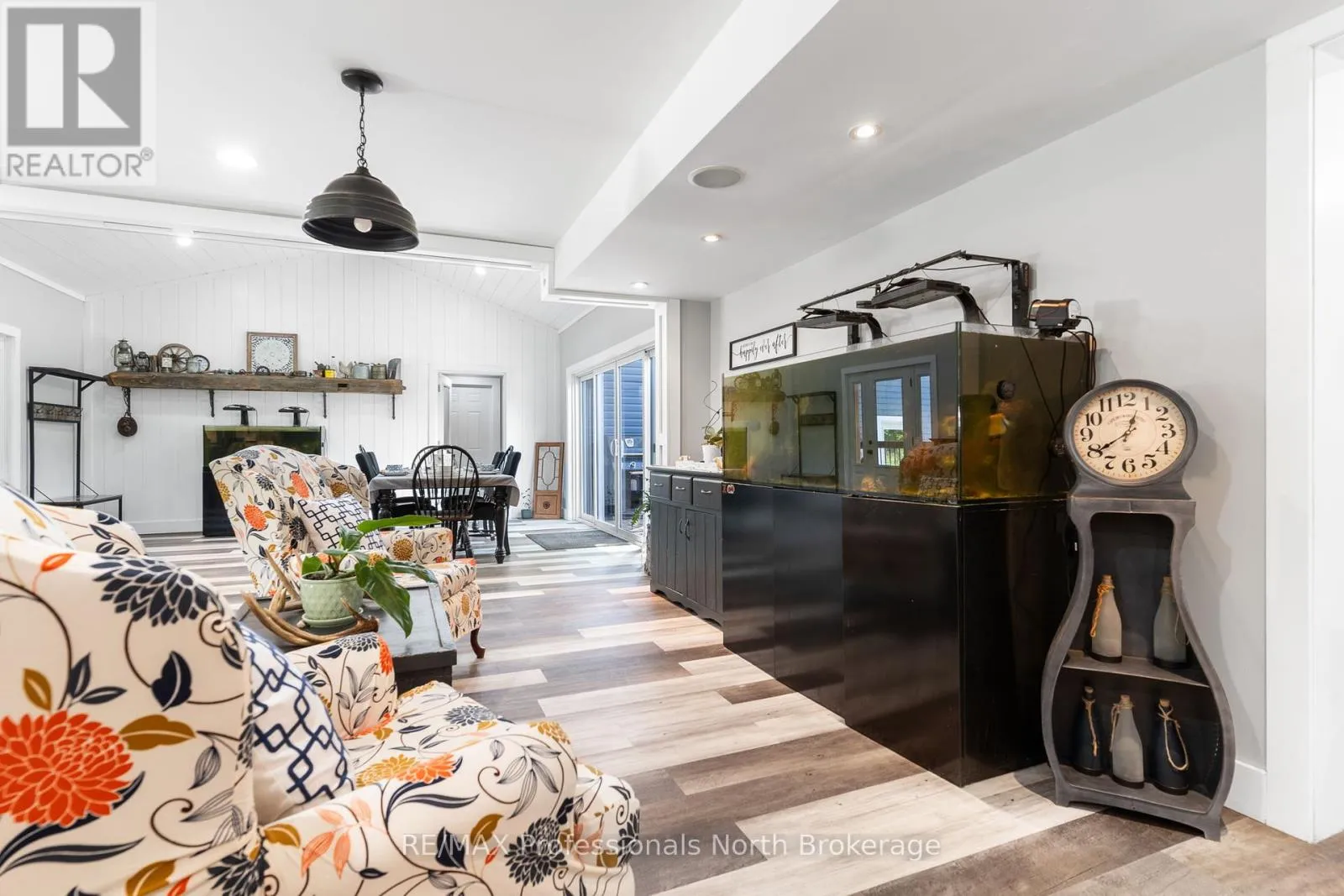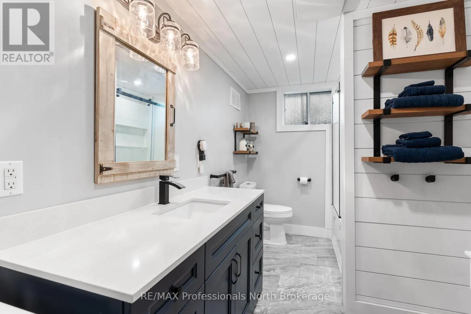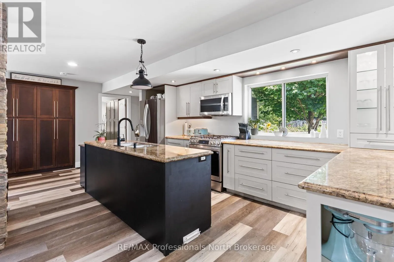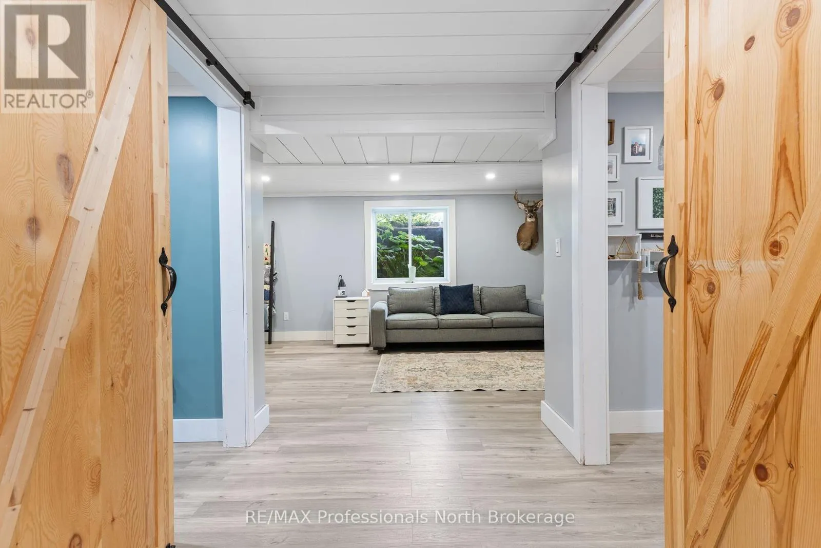 Hwy 118 to Airport Rd to All Seasons to sign Welcome to this stunning executive home located on a quiet road with shared deeded access to the Gull River! Renovated from top to bottom with a garage and loft addition, there's plenty of space for a large or extended family. The lot is beautifully landscaped with a peaceful koi pond, creating a unique park like setting. The main floor boasts an open kitchen and living space with plenty of storage cupboards, brand new 3pc bath with walk in shower, laundry room and primary bedroom. A formal dining space w/ walkout to deck creates the perfect ambience for entertaining family and friends. The upper level loft addition with two bedrooms, den, office, and family room would make the perfect living space for extended family members or a live-in caregiver. The lower level with new flooring features a rec room, guest room, office space and 4 pc bath. Enjoy fishing, swimming and kayaking from the Gull River. Easy access to West Guilford and Haliburton and all the amenities. Upgrades include full interior renovation, A/C, garage with in floor heating and full loft, siding, shingles, windows, flooring, doors, decks, landscaping, irrigation system and more! A truly exceptional offering for the whole family! (id:27476)