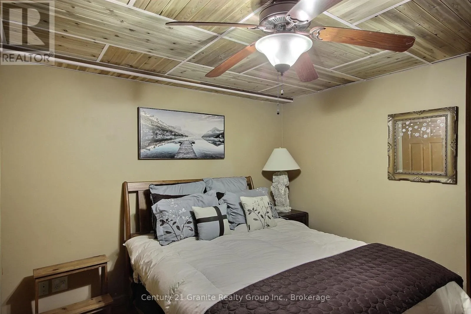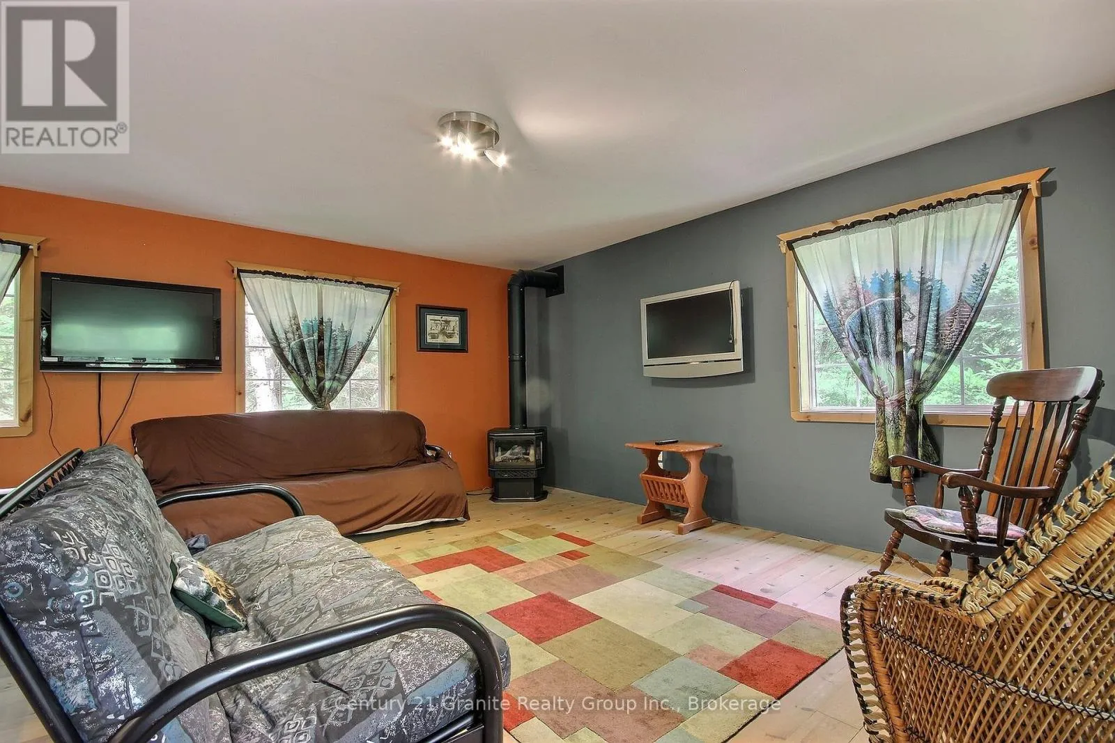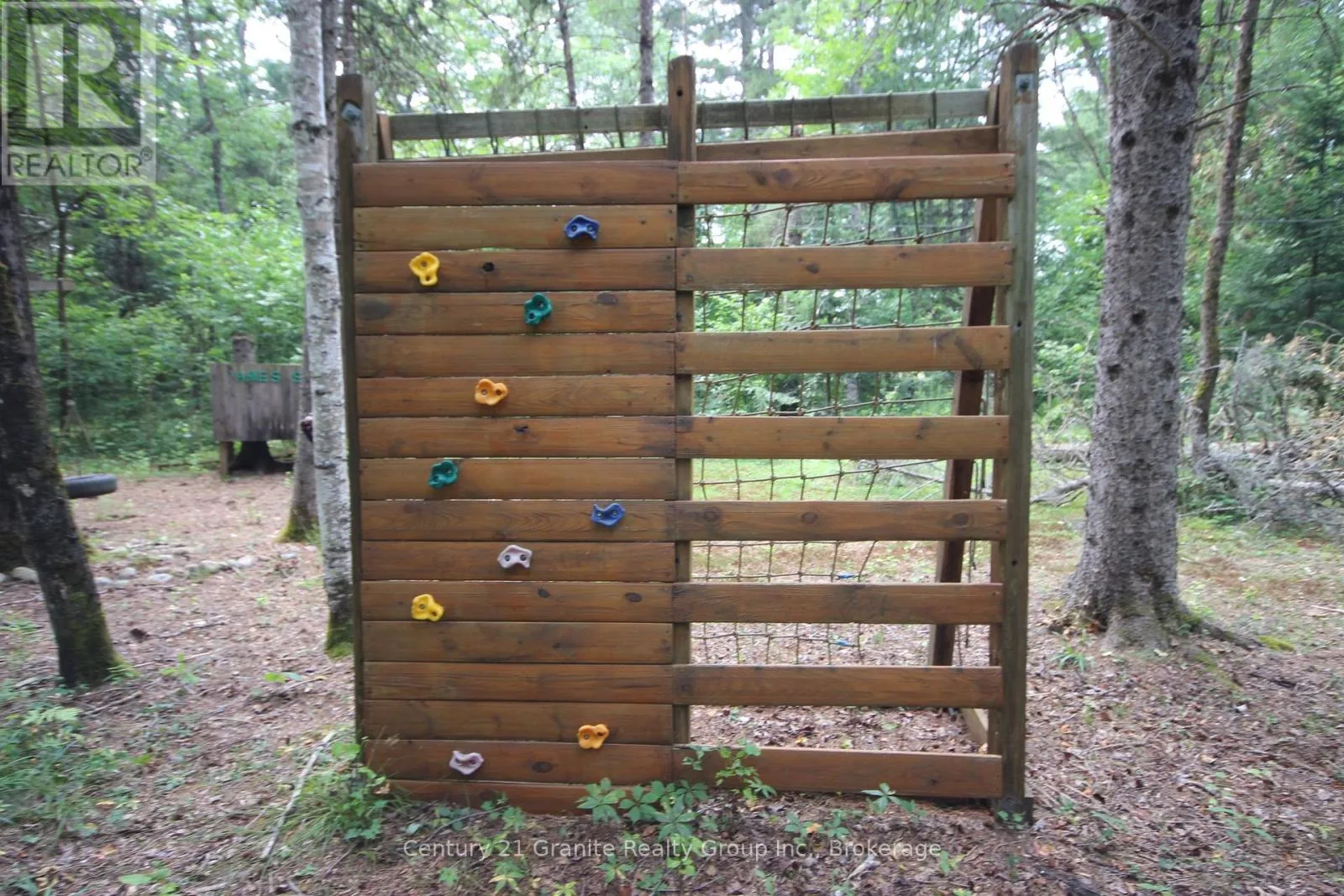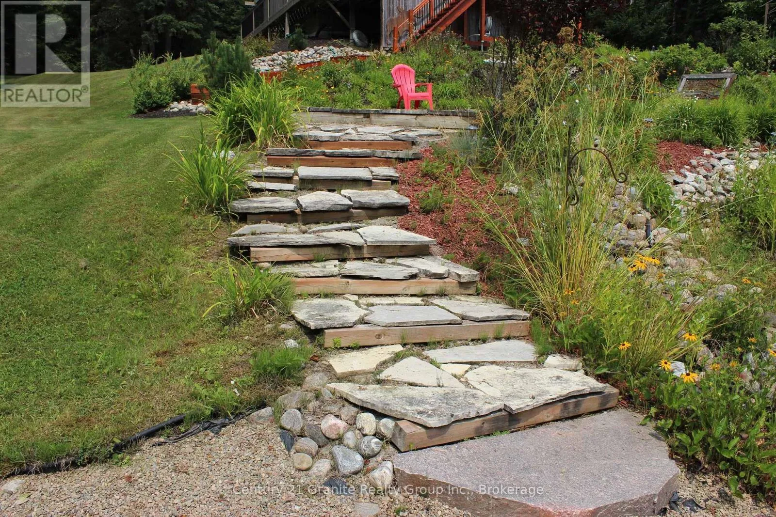Cross Streets: Hwy 118 and Stanhope Airport Rd. ** Directions: Hwy 118 wet of Carnarvon to Stanhope Airport Rd., North to Green Lake Rd. to #1082 (SOP). The best way to take everything in about this property is to see it for yourself. This 1.5 acre property has something for everyone in the family. Start with a park like setting, and place a feature packed 3 bedroom home with a waterfront that includes a beach and 6' deep water off the dock. Add gorgeous perennial gardens with a babbling brook running from the house to the river thru a small pond and put a flagstone patio with firepit in the middle of the gardens. Then add the Man Cave, the She Shed, the Kid's Shack, and even a Sled Shed! The residence includes an attached garage with auto garage door opener. No more unloading in the rain with an entrance into the kitchen. A kitchen with quartz countertops, and windows overlooking the back gardens and play areas. The propane fireplace in the dining room ensures a cozy atmosphere on cold winter nights. And a walk-out to the deck that includes a screened in area for bug free enjoyment. Large clear plastic inserts help extend this portion of the decks use into early spring and late fall. Upstairs the large master with a 4 piece ensuite plus laundry room. Then head over to the "Man Cave". A 26' x 32' garage that includes loads of storage, air compressor with 3 ceiling hoses on reels and 2 wall outlets, floor electrical outlets to accommodate tools anywhere in the garage. Heating is supplied from a propane ceiling heat unit. The in floor radiant heat is roughed in and just needs a heat source to activate. The "men's room", well you just have to see it to appreciate it. If this doesn't bring a smile to your face, nothing will. With 11' ceilings the garage will accommodate an automobile lift if desired. And, lastly, yes, the John Deere lawn tractor and snow blower are included. Heading upstairs over the garage is a 19' x 32' Great Room. Why so great? It comes just as you see it with billiard table, chairs, couch, TV's, and games table. So much more, you'll just have to come to see for your (id:27476)
