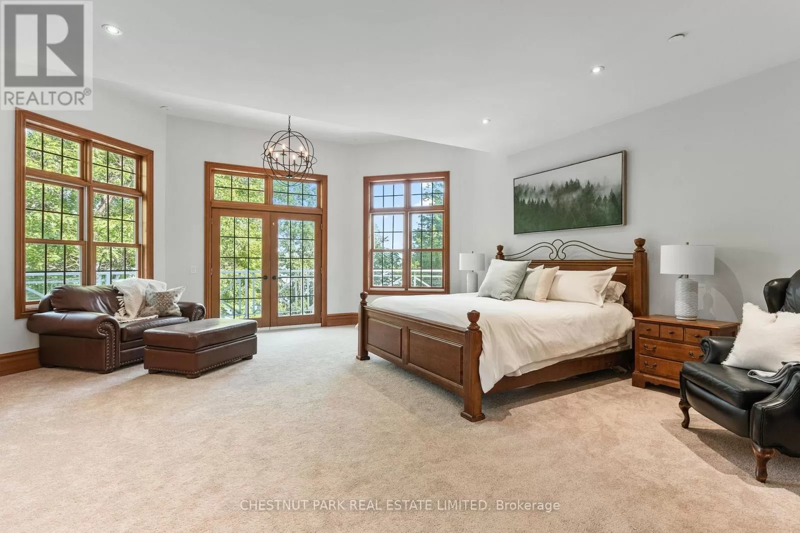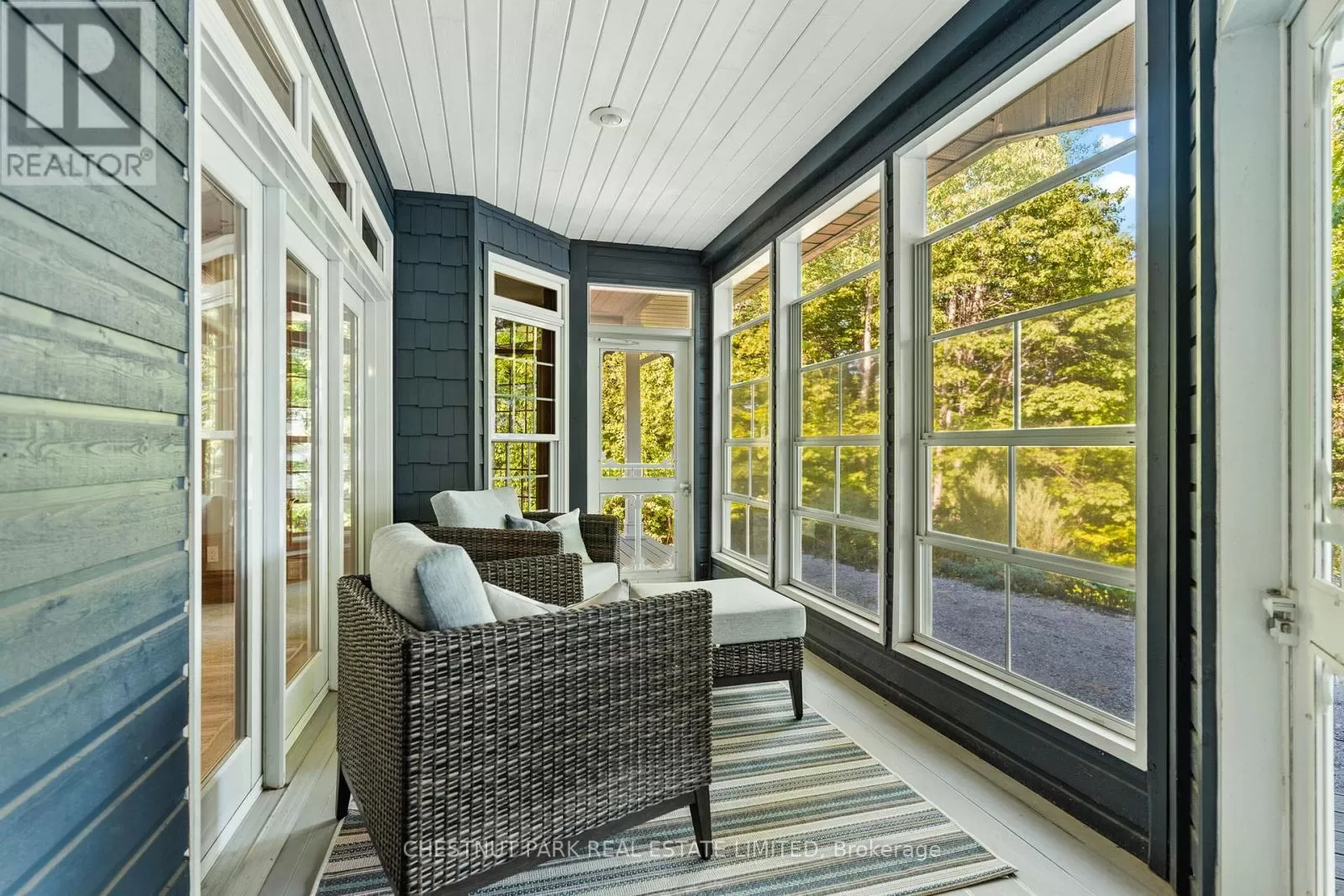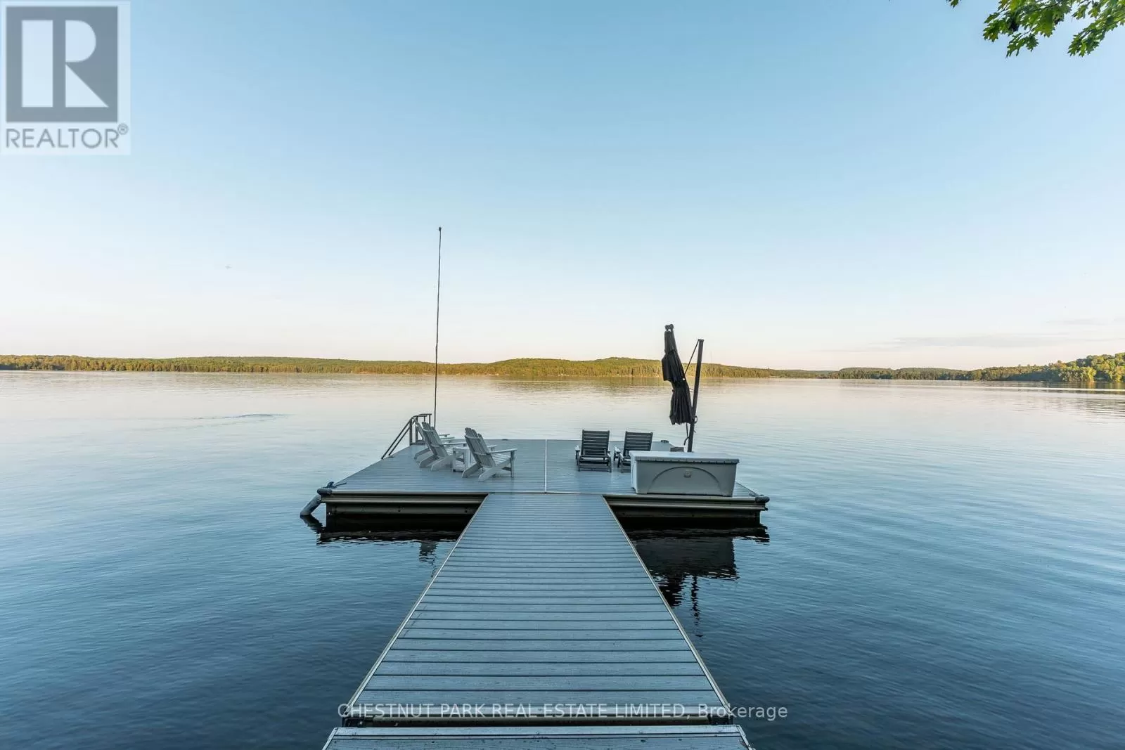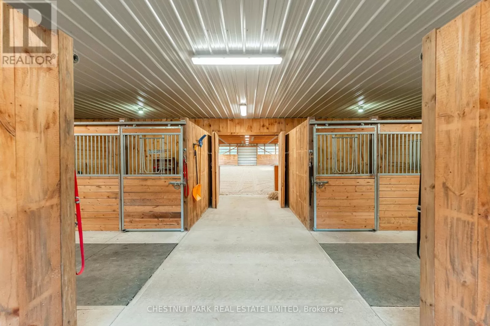 Cross Streets: Hwy 118 & Kushog Lake Road. ** Directions: Hwy 118 to Kushog Lake Road to Buckslide to Nu Ne. A once-in-a-generation offering on prestigious Boshkung Lake in the Haliburton Highlands, this private estate blends luxury waterfront living with distinguished equestrian amenities. With over 100 acres, 440 feet of deep clean shoreline, and 7000 sq ft of thoughtfully designed space, this exceptional property offers privacy, sophistication, and natural beauty. The custom home features 4 bedrooms, including a show-stopping primary suite with fireplace, soaker tub overlooking the water, an exceptional walk-in closet, and a private deck with sweeping lake views. The elegantly appointed eat-in kitchen is a true centrepiece featuring premium appliances, custom cabinetry, expansive prep surfaces, and a sunlit breakfast area perfect for casual dining. A butlers pantry adds function and flair for effortless entertaining. The kitchen opens to an expansive dining room with additional seating and a striking fireplace, ideal for memorable gatherings. Multiple living areas throughout offer spectacular water views, and walkouts lead to maintenance-free decking that extends living space outdoors. The property features several outdoor lounging, dining, recreation and entertaining areas designed to maximize lakefront serenity and privacy. A media/games room with wet bar, home gym, and generous indoor-outdoor flow enhance year-round living. For the discerning equestrian, the estate includes a 70 x 140 indoor riding arena, multiple paddocks, and well-appointed stalls, providing the infrastructure for year-round riding, training, and care. Private trails wind through the forested acreage ideal for horseback riding, hiking, or peaceful exploration. With a 4-car garage, beautifully landscaped grounds, and complete privacy, this rare waterfront estate unites refined living, outdoor recreation, and timeless elegance in one of Ontarios most coveted lakefront settings. (id:27476)