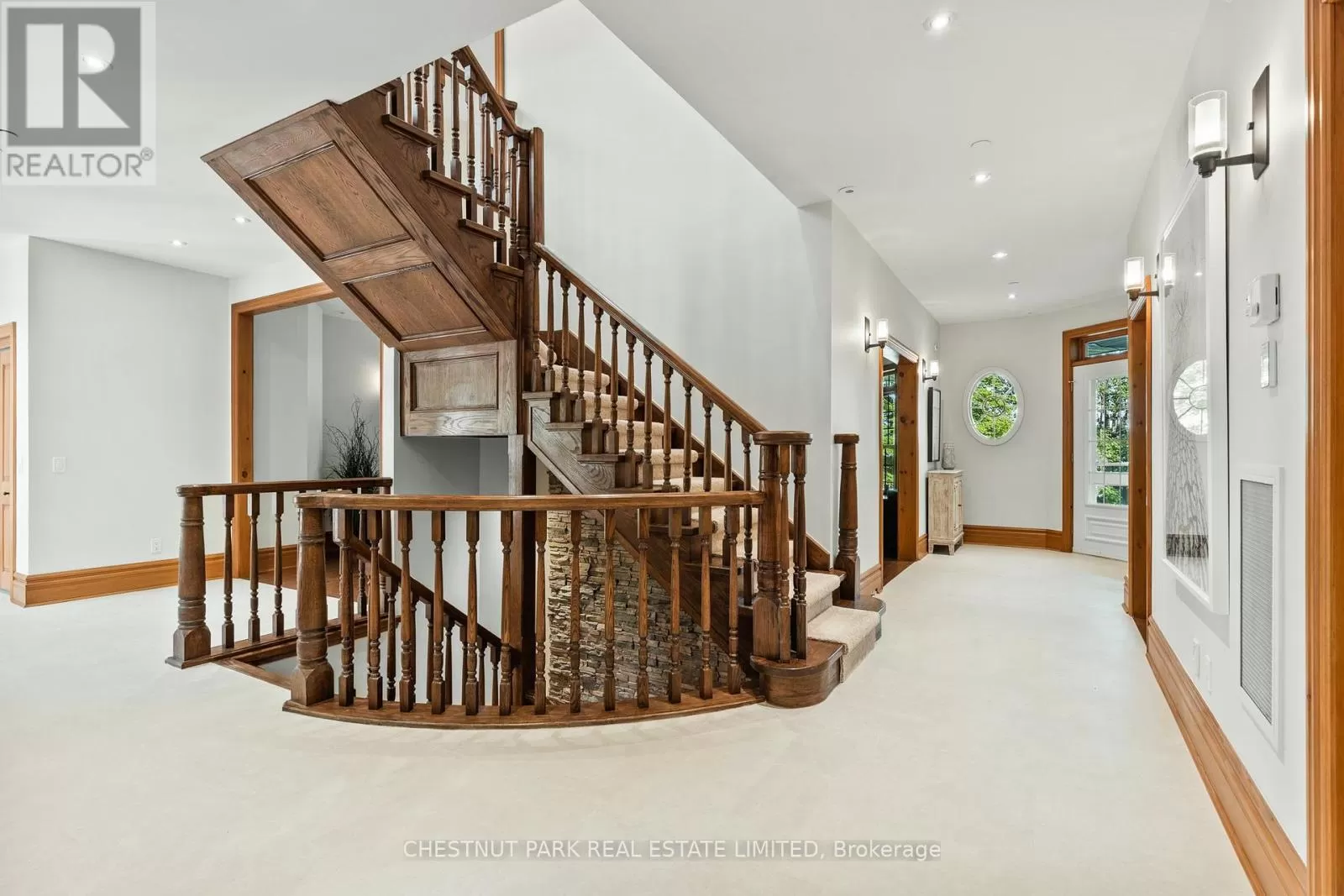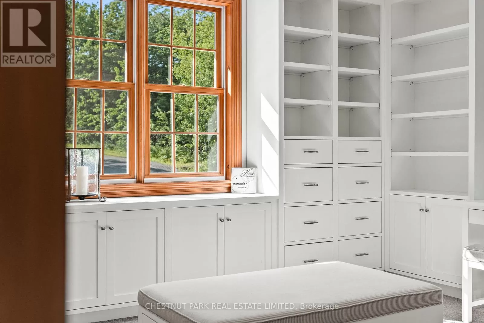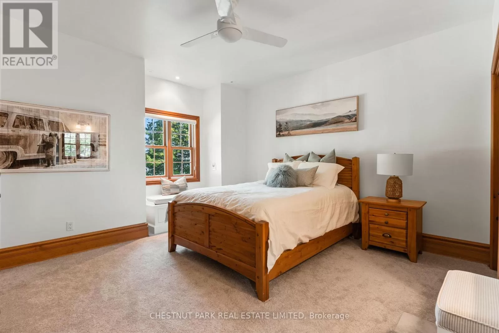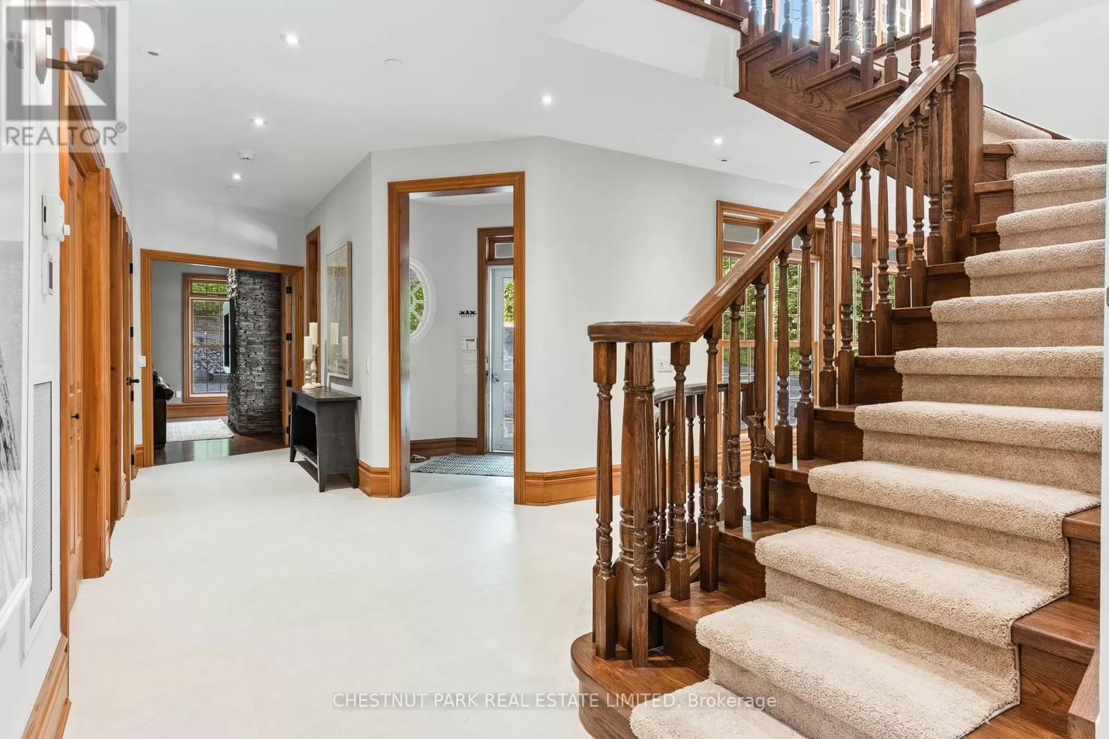 Cross Streets: Hwy 118 & Kushog Lake Road. ** Directions: Hwy 118 to Kushog Lake Road to Buckslide to Nu Ne. A once-in-a-generation offering on prestigious Boshkung Lake in the Haliburton Highlands, this private estate blends luxury waterfront living with distinguished equestrian amenities. With over 100 acres, 440 feet of deep clean shoreline, and 7000 sq ft of thoughtfully designed space, this exceptional property offers privacy, sophistication, and natural beauty. The custom home features 4 bedrooms, including a show-stopping primary suite with fireplace, soaker tub overlooking the water, an exceptional walk-in closet, and a private deck with sweeping lake views. The elegantly appointed eat-in kitchen is a true centrepiece featuring premium appliances, custom cabinetry, expansive prep surfaces, and a sunlit breakfast area perfect for casual dining. A butlers pantry adds function and flair for effortless entertaining. The kitchen opens to an expansive dining room with additional seating and a striking fireplace, ideal for memorable gatherings. Multiple living areas throughout offer spectacular water views, and walkouts lead to maintenance-free decking that extends living space outdoors. The property features several outdoor lounging, dining, recreation and entertaining areas designed to maximize lakefront serenity and privacy. A media/games room with wet bar, home gym, and generous indoor-outdoor flow enhance year-round living. For the discerning equestrian, the estate includes a 70 x 140 indoor riding arena, multiple paddocks, and well-appointed stalls, providing the infrastructure for year-round riding, training, and care. Private trails wind through the forested acreage ideal for horseback riding, hiking, or peaceful exploration. With a 4-car garage, beautifully landscaped grounds, and complete privacy, this rare waterfront estate unites refined living, outdoor recreation, and timeless elegance in one of Ontarios most coveted lakefront settings. (id:27476)