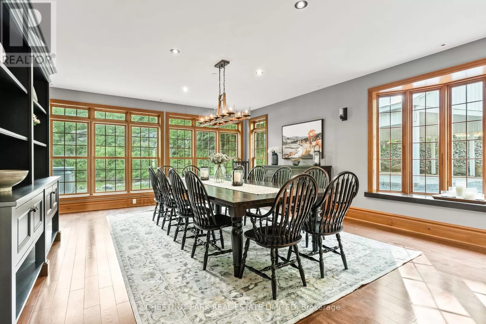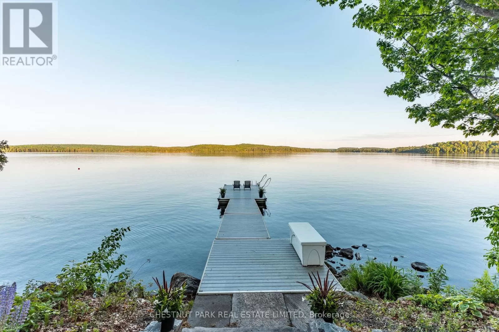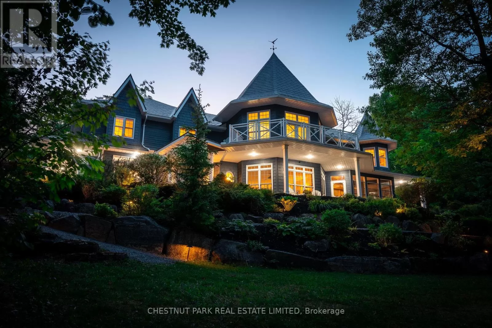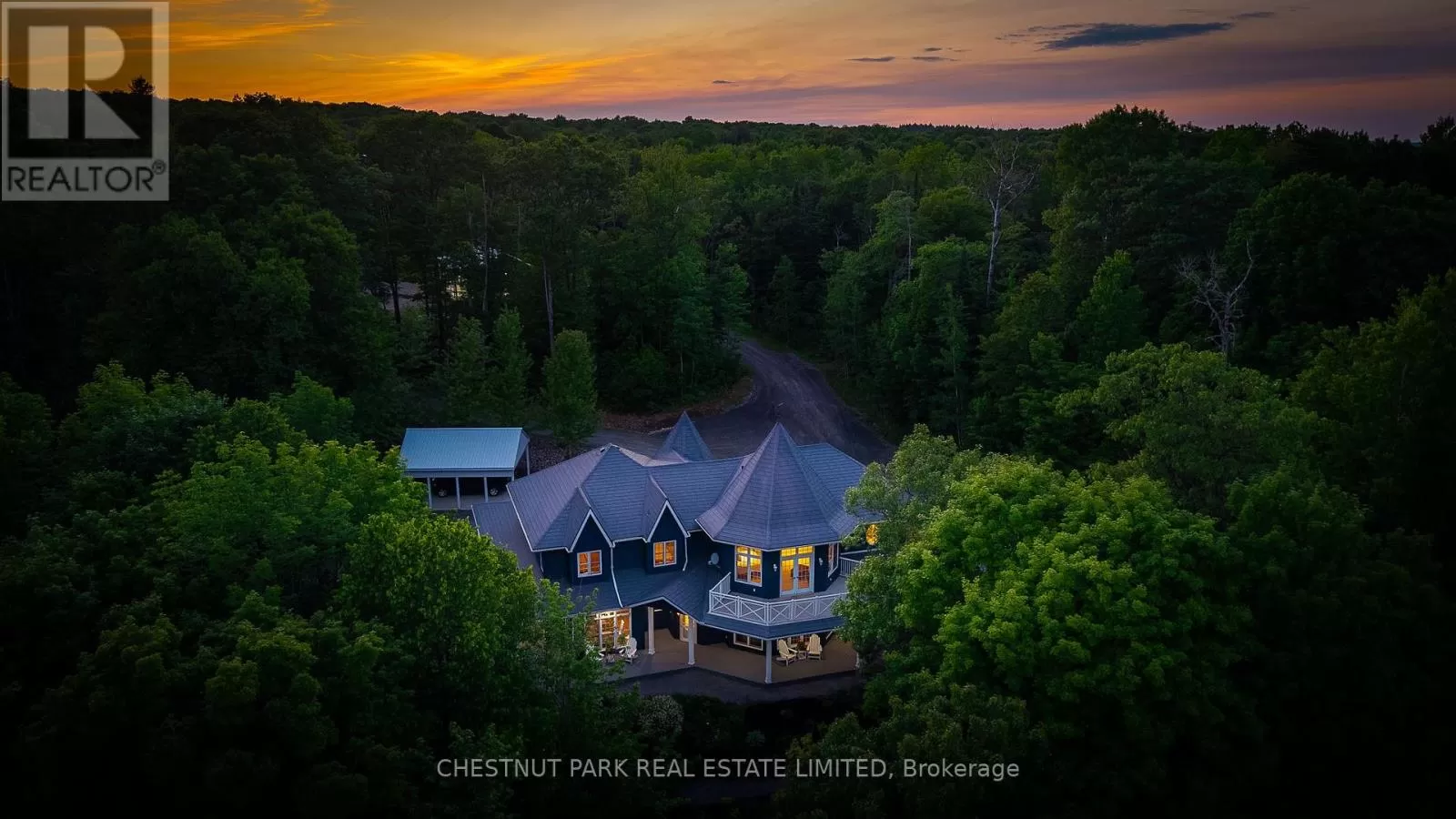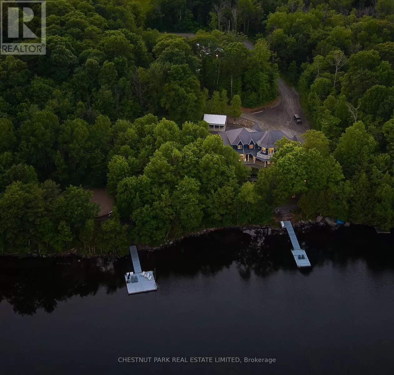 Cross Streets: Hwy 118 & Kushog Lake Road. ** Directions: Hwy 118 - Kushog Lake Road - Buckslide - Nu Ne. Set on just under six acres on Boshkung Lake in the heart of the Haliburton Highlands, this private estate blends luxury waterfront living with timeless natural beauty. With 440 feet of deep, clean shoreline and over 7,000 sq. ft. of thoughtfully designed space, the property offers privacy, sophistication, and a true four-season lifestyle. The custom home showcases 4 bedrooms, including a show-stopping primary suite with fireplace, soaker tub overlooking the water, a spacious walk-in closet, and a private deck with sweeping lake views. The elegantly appointed eat-in kitchen is a true centrepiece, featuring premium appliances, custom cabinetry, expansive prep surfaces, and a sunlit breakfast area. A butlers pantry adds both function and flair for effortless entertaining. The kitchen flows into a grand dining room with fireplace, ideal for memorable gatherings. Multiple living spaces offer spectacular water views and seamless indoor-outdoor living. The lower level is designed for year-round enjoyment, featuring a theatre room with games area, exercise room, and an additional flex room and spa like bathroom. Walkouts lead to maintenance free Trex decking, a hot tub, and beautifully landscaped grounds with a tiered garden, groomed gravel pathways along the lakeside, and an irrigation and outdoor lighting system that together create a true resort-like setting. Practical enhancements include a secondary driveway to the main house, carport, and a 4-car insulated garage. At the shoreline, two composite docking systems provide excellent access for boating, swimming, and watersports. With its rare combination of refined living, modern upgrades, and stunning natural beauty, this exceptional waterfront estate offers the ultimate Haliburton Highlands lifestyle in one of Ontarios most coveted four-season destinations. (id:27476)